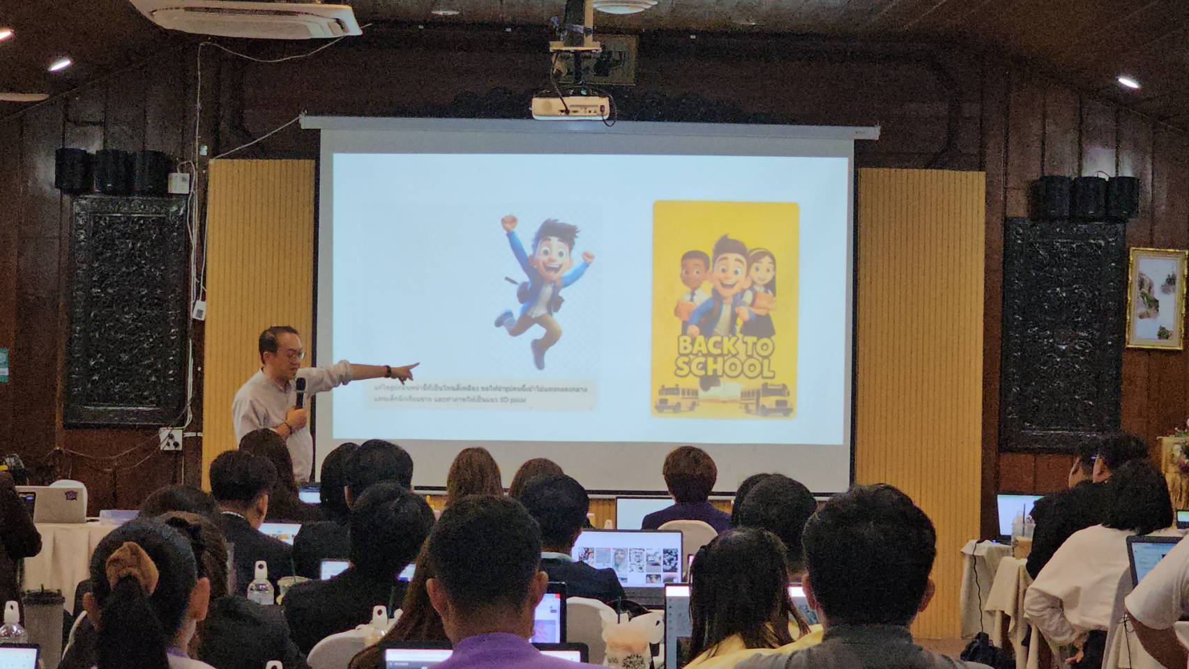 หลักสูตรการอบรมครอบคลุมทั้งภาคทฤษฎีและปฏิบัติ ตั้งแต่การทำความเข้าใจเกี่ยวกับ AI และการประชาสัมพันธ์ในยุคดิจิทัล การออกแบบกราฟิกด้วย AI การเขียนเนื้อหาและสร้าง Content การผลิตวิดีโอและสื่อมัลติมีเดีย เทคนิคการถ่ายภาพและวิดีโอเพื่อการสื่อสาร รวมถึงการสร้างเครือข่ายประชาสัมพันธ์ด้วยนวัตกรรม PR Buddy Model เพื่อพัฒนาคุณภาพการประชาสัมพันธ์ของสถานศึกษาให้มีความทันสมัย มีประสิทธิภาพและเข้าถึงกลุ่มเป้าหมายมากขึ้น
