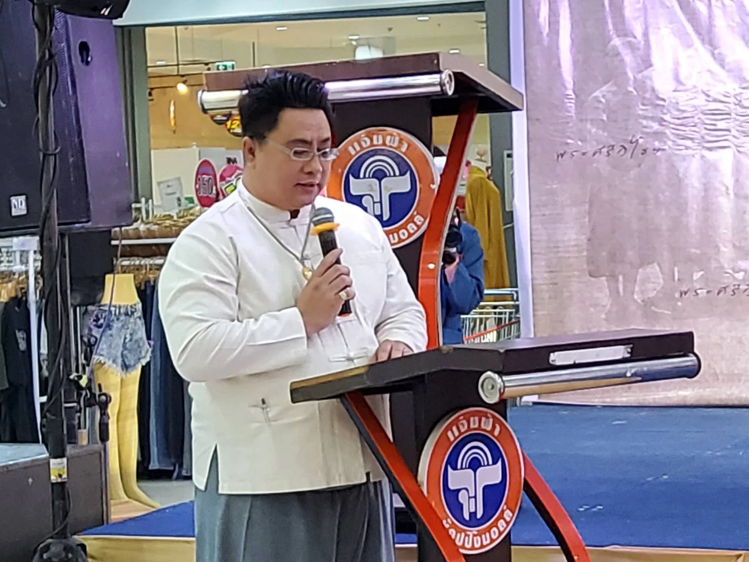 นายอุทัต สุวิทย์ ศักดานนท์ ประธานมูลนิธิสถาบันครูบาเจ้าศรีวิชัย ประธานในพิธีกล่าวเปิดงาน ได้เล่าถึงความเป็นมาของการจัดตั้งมูลนิธิ สถาบันครูบาเจ้าศรีวิชัย และวัตถุประสงค์ในการจัดสร้างซีรีย์ละคร “พระศรีวิไชย” เพื่อให้สื่อมวลชน พร้อมด้วยศรัทธาประชาชนทุกคน ได้รับรู้รับทราบเรื่องราวอันเป็นมงคลยิ่ง ในโอกาสมหากุศล