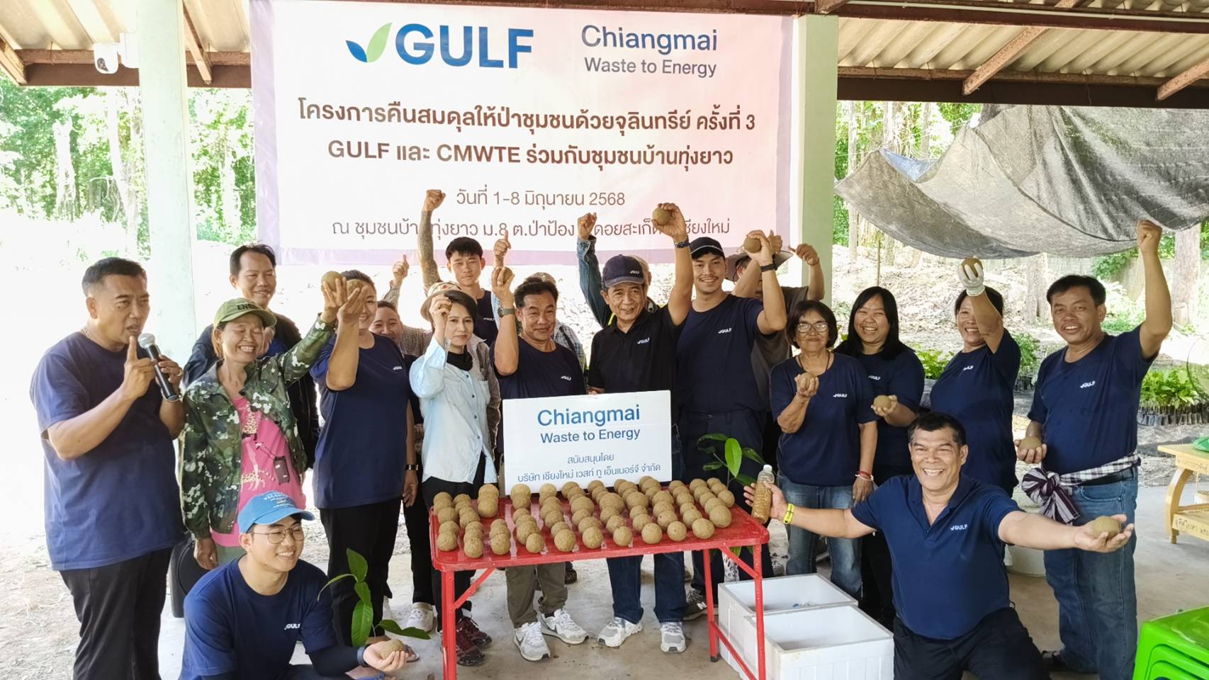 วันที่ 1-7 มิถุนายน 2568 มีการจัดโครงการ “คืนสมดุลให้ป่าชุมชนด้วยจุลินทรีย์ ครั้งที่ 3” เป็นกิจกรรมต่อเนื่องร่วมกับชุมชน เครือข่ายอนุรักษ์ป่าชุมชนตำบลป่าป้อง อำเภอดอยสะเก็ด จังหวัดเชียงใหม่ในการอนุรักษ์ฟื้นฟูป่าต้นน้ำและระบบนิเวศน์ กว่า 3,000 ไร่ ประกอบด้วย ป่าห้วยต้นยางในพื้นที่หมู่ 8 บ้านทุ่งยาว ตำบลป่าป้อง อำเภอดอยสะเก็ด จังหวัดเชียงใหม่ จำนวน 2,307 ไร่ และป่าสงวนขุนน้ำแม่กวง ประกอบด้วยพื้นที่หมู่ 1 บ้านป่าตึงน้อย หมู่ 2 บ้านป่าไม้แดง และหมู่ 7 บ้านป่ายางงาม รวมกว่า 800 ไร่ โครงการในครั้งนี้ ส่งเสริมและสนับสนุนโดย กลุ่มบริษัท กัลฟ์ (GULF) และ บริษัท เชียงใหม่เวสท์ ทู เอ็นเนอร์จี จำกัด นำโดย นายจิรศักดิ์ มีสัตย์ ผู้อำนวยการอาวุโส กลุ่มบริษัทกัลฟ์ (GULF) และ ดร.กฤษณ์ พงษ์เทพิน ผช.ผอ.ฝ่ายชุมชนสัมพันธ์ GULF วิทยากรนักส่งเสริมประจำโครงการฯ ร่วมกับกำนัน ผู้ใหญ่บ้านชุมชน ตำบลป่าป้อง อำเภอดอยสะเก็ด จังหวัดเชียงใหม่ และ คณะกรรมการอนุรักษ์ป่าชุมชนพื้นที่ฯ นำโดยนาย สมพงค์ เจริญศิริ กำนันตำบลป่าป้อง อ.ดอยสะเก็ด เชียงใหม่ และ นางสาว จันทร์จิรา จำปาอิน ผู้ใหญ่บ้านหมู่ 1 บ้านป่าตึงน้อย นายสมศักดิ์ เกอาภัย ผู้ใหญ่บ้านป่าไม้แดง หมู่ 2 นายเสน่ห์ ธรรมภักดี และผู้ใหญ่บ้านหมู่ 7 ป่ายางงาม อำเภอดอยสะเก็ด จังหวัดเชียงใหม่ และได้บูรณาการความร่วมมือจาก มหาวิทยาลัยราชมงคลล้านนา อ.ดอยสะเก็ด หน่วยป้องกันรักษาป่า ที่ 9 ดอยสะเก็ด เชียงใหม่ ศูนย์ส่งเสริมวนศาสตร์ชุมชนที่ 1 เชียงใหม่ และ มูลนิธิเห็ดไมคอร์ไรซ่า เพื่ออนุรักษ์และฟื้นฟูป่าไม้ จ.แพร่ เครือข่ายสื่อมวลชน จ.เชียงใหม่ เป็นต้น