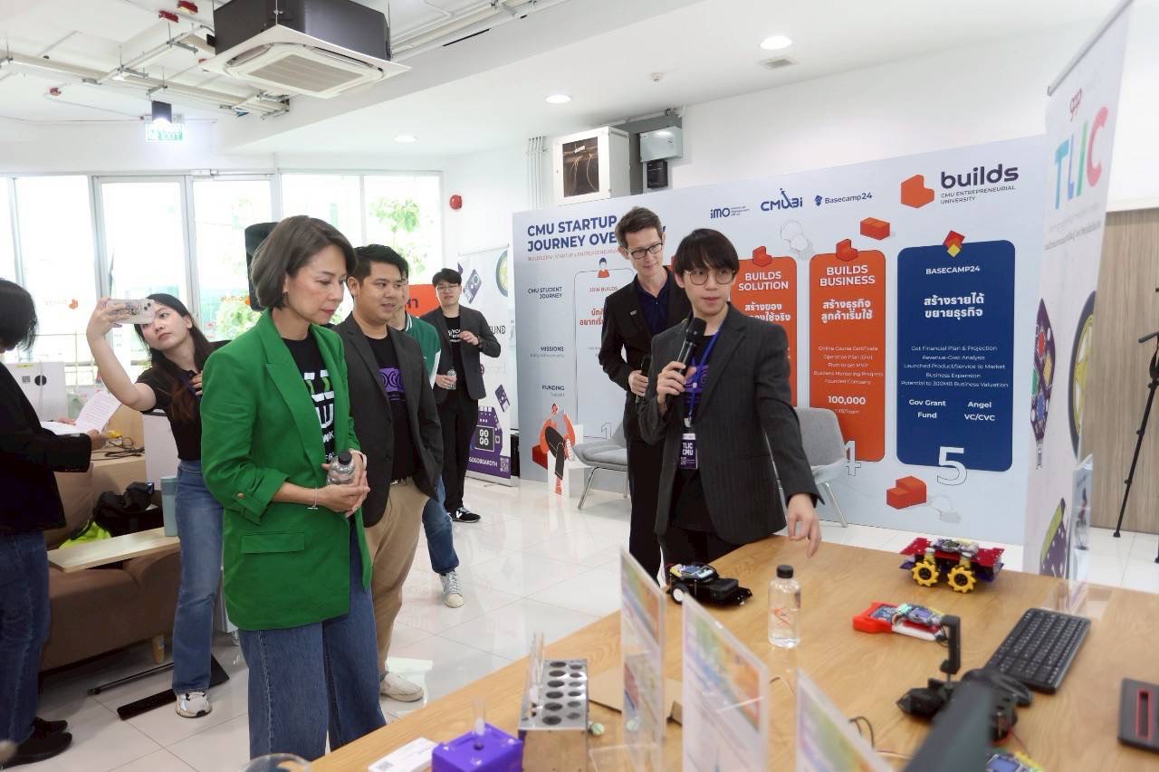 เมื่อวันที่ 9 มิ.ย. นางสาวไปยดา หาญชัยสุขสกุล ผู้จัดการกองทุนพัฒนาผู้ประกอบการเทคโนโลยีและนวัตกรรมหรือเทดฟันด์ (TED Fund) กระทรวงการอุดมศึกษา วิทยาศาสตร์ วิจัยและนวัตกรรม(อว.) ลงพื้นที่เพื่อติดตามภารกิจในการพัฒนาผู้ประกอบการเทคโนโลยีและนวัตกรรมที่ Builds CMU มหาวิทยาลัยเชียงใหม่ จ.เชียงใหม่ โดยมีโครงการ GoGo Board ของบริษัท ลอจิกซ์เอด จำกัด ผู้ประกอบการ Startup ที่ได้รับทุนสนับสนุนจากเทดฟันด์ในโปรแกรม TED Market Scaling Up นำผลิตภัณฑ์มาจัดแสดง ซึ่ง GoGo Board เป็นชุดหุ่นยนต์เพื่อการเรียนรู้ที่ออกแบบมาสำหรับเด็กและเยาวชน โดยเน้นการเรียนรู้แบบสะเต็มผ่านการประดิษฐ์และเขียนโปรแกรมอย่างง่าย ด้วยระบบบอร์ดสมองกลที่ตรวจวัดและควบคุมได้จริง รวมถึงซอฟต์แวร์ที่ใช้การเขียนโค้ดในรูปแบบกราฟิกลาก-วาง ซึ่งเหมาะสมกับผู้เริ่มต้น ช่วยส่งเสริมทั้งทักษะด้านเทคโนโลยี ความคิดสร้างสรรค์ และกระบวนการคิดอย่างเป็นระบบ