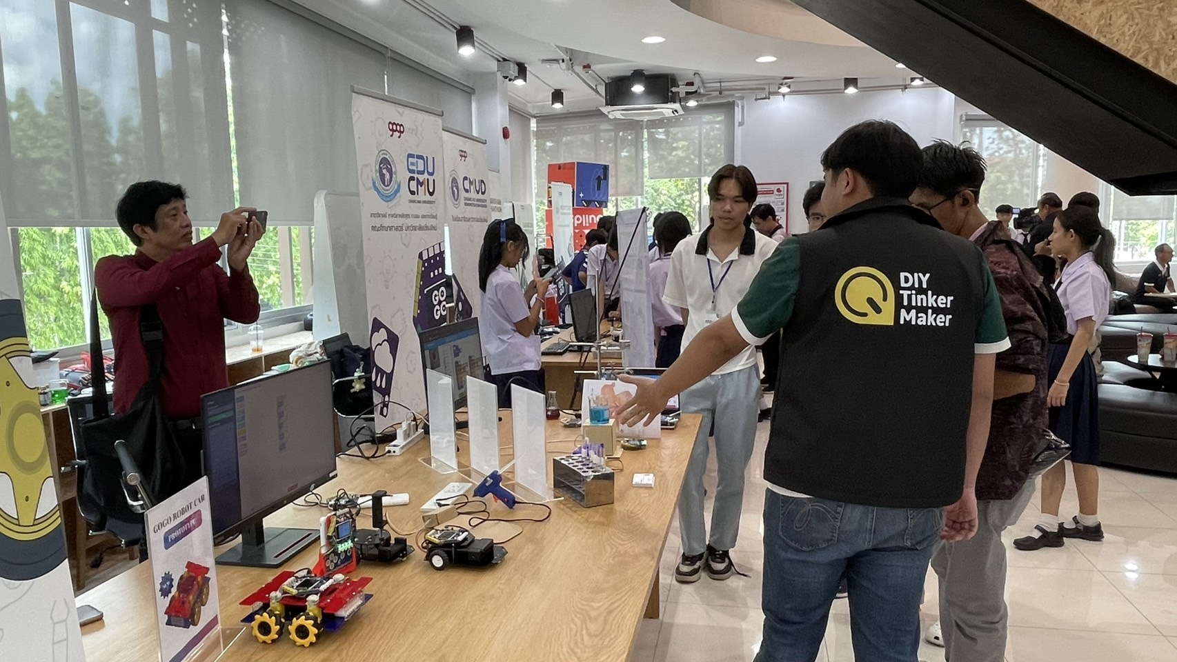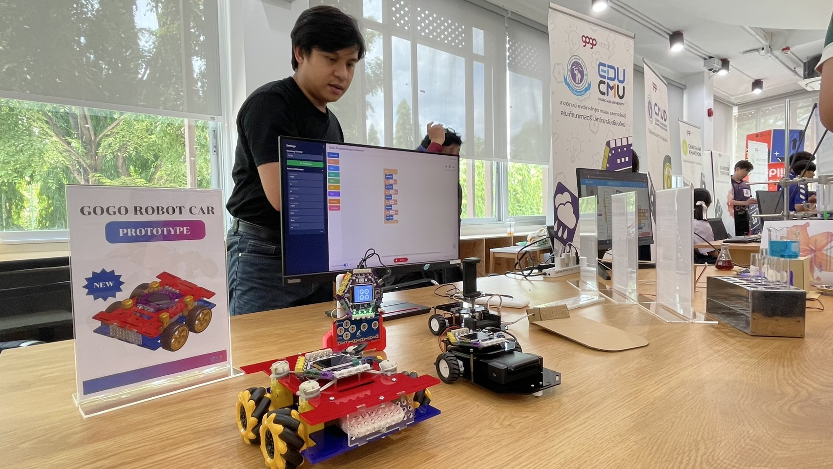ขณะเดียวกัน ได้มีการจัดแสดงผลงานจากการนำ GoGo Board ไปพัฒนาต่อยอดเป็นโครงงานวิทยาศาสตร์ของเยาวชนจากโรงเรียนต่างๆ เช่น รร.สาธิตมหาวิทยาลัยเชียงใหม่ รร.มงฟอร์ตวิทยาลัย รร.วชิราลัย รร.ส่วนบุญโญปถัมภ์ รร.จักรคำคณาทร และคณะศึกษาศาสตร์ มหาวิทยาเชียงใหม่ เป็นต้น โดยบรรยากาศเป็นไปอย่างคึกคัก