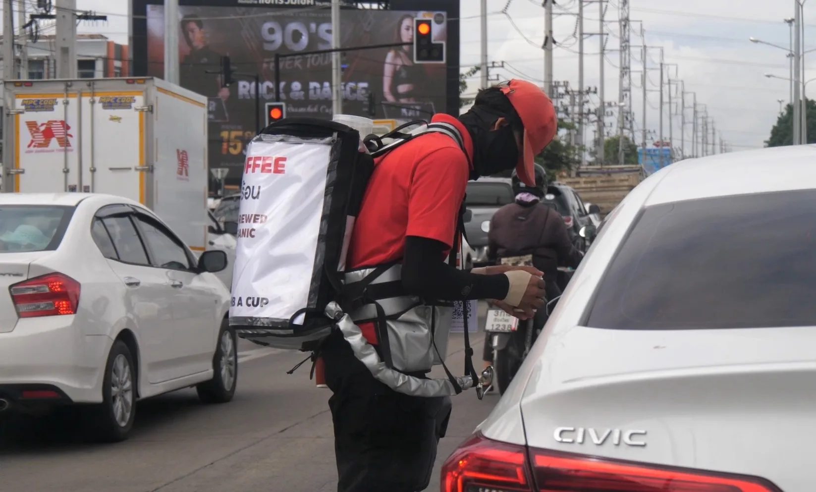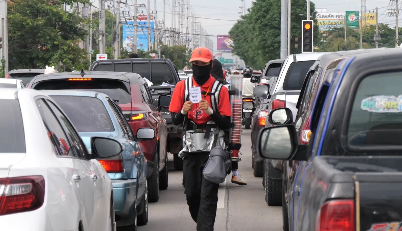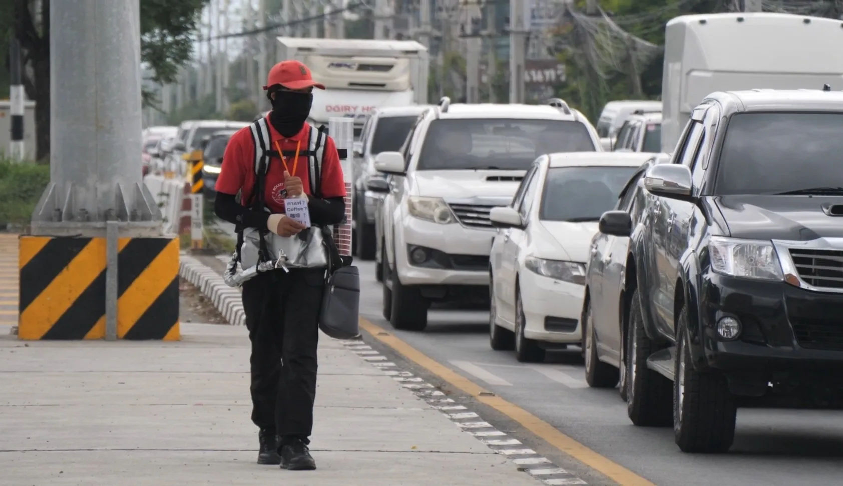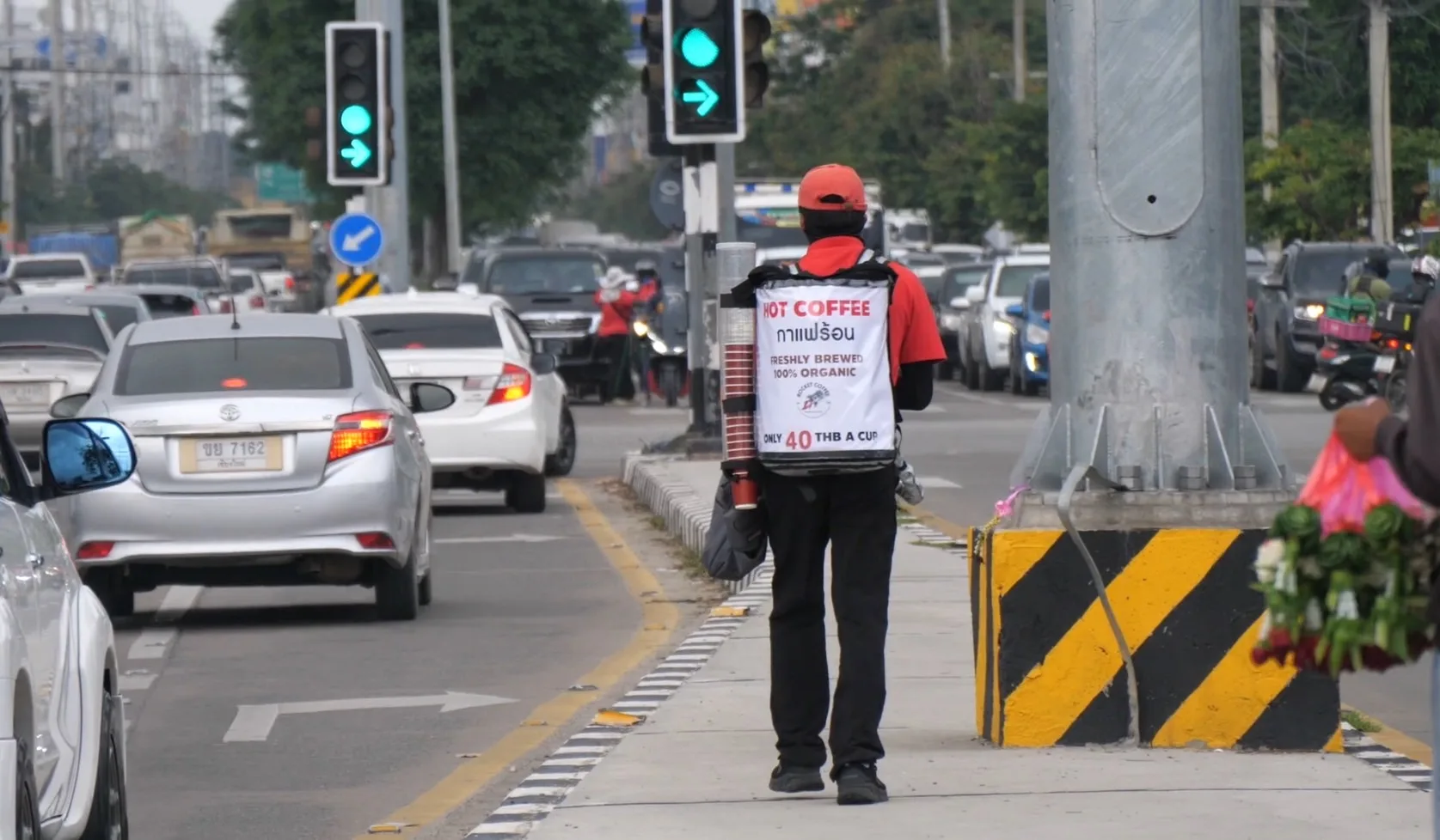 เงินอยู่ในอากาศ ร็อคเกตแมนโผล่ขายกาแฟกลางแยกเสิร์ฟถึงรถ ตอบโจทย์คอกาแฟชั่วโมงเร่งด่วน
