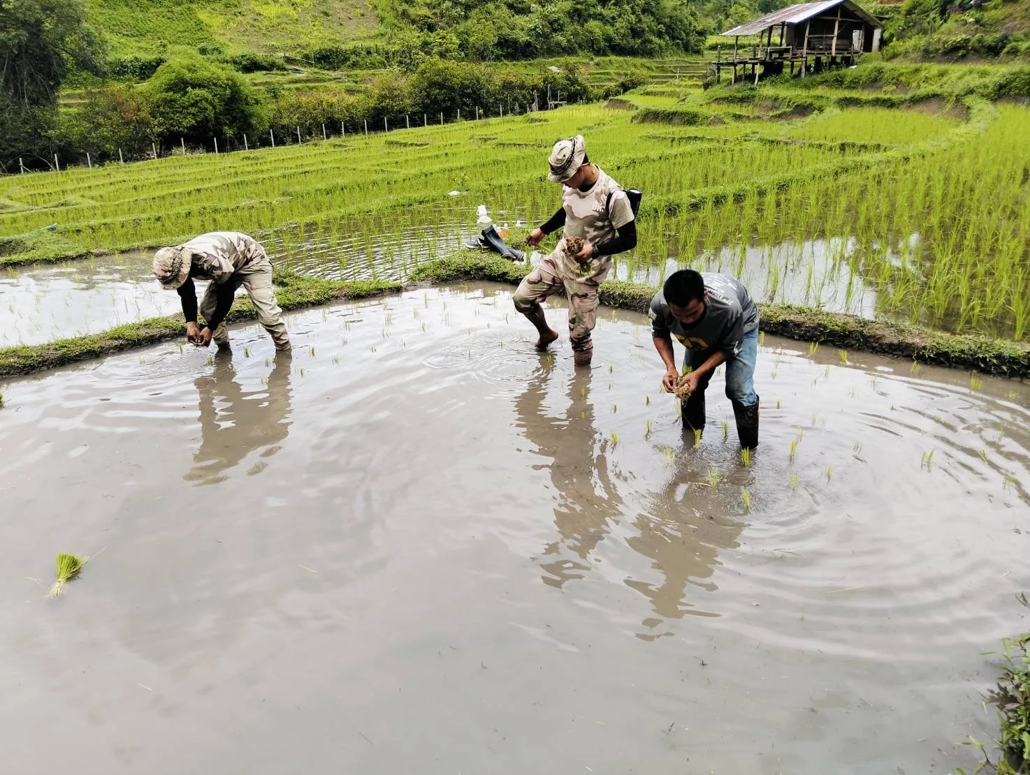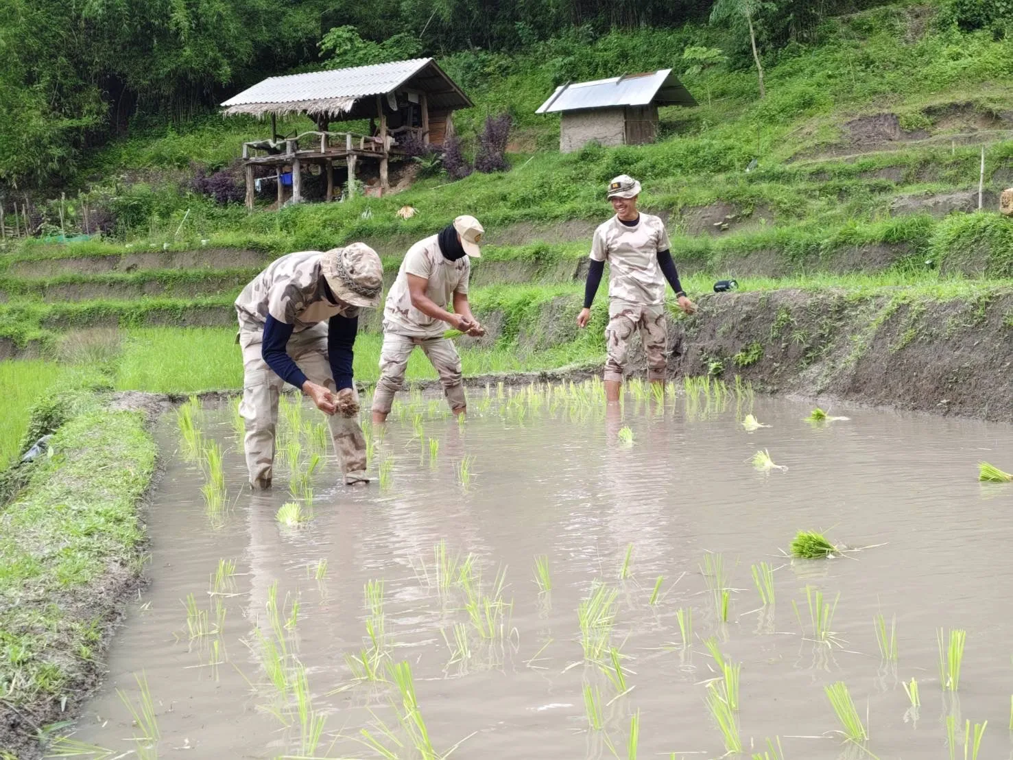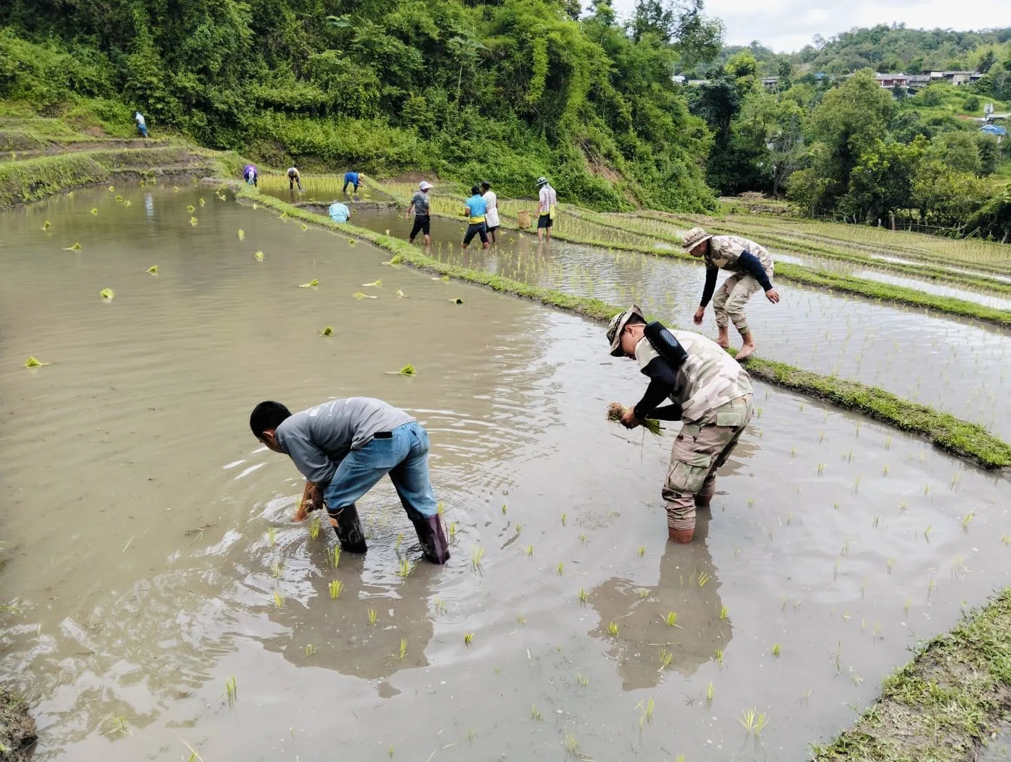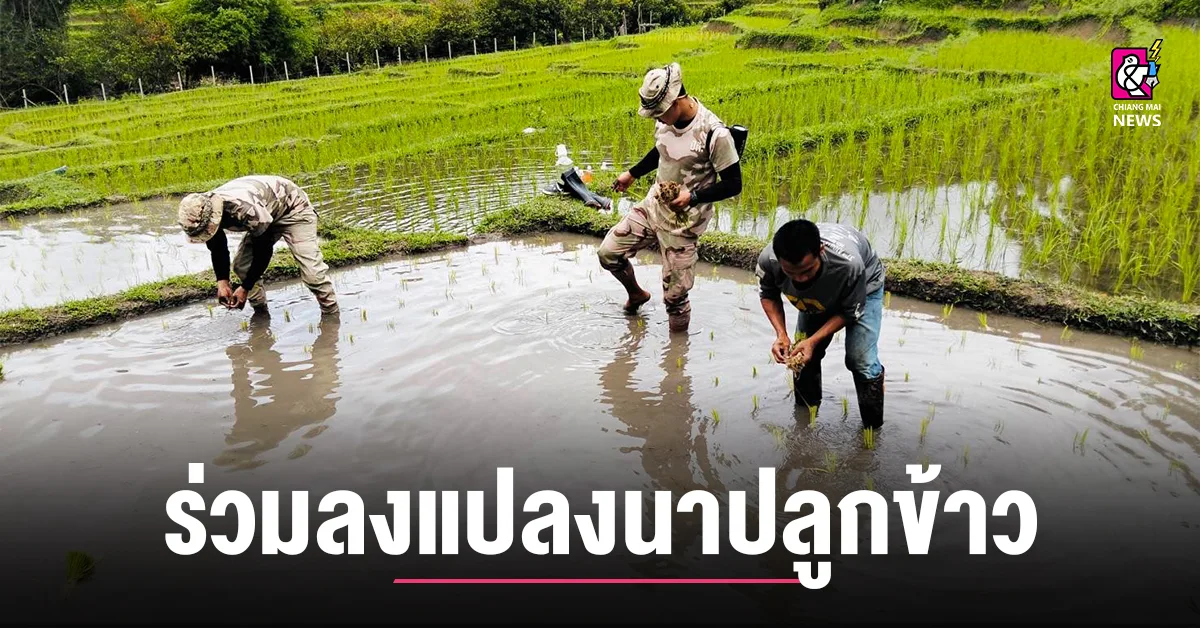 สานสัมพันธ์ที่ดีกับประชาชนในพื้นที่ สมาชิก อส.แม่แตงที่ 10 ลงแปลงนาปลูกข้าวพันธุ์พื้นเมือง ร่วมกับพี่น้องชนเผ่าปกาเกอะญอ บ้านหัวเลา