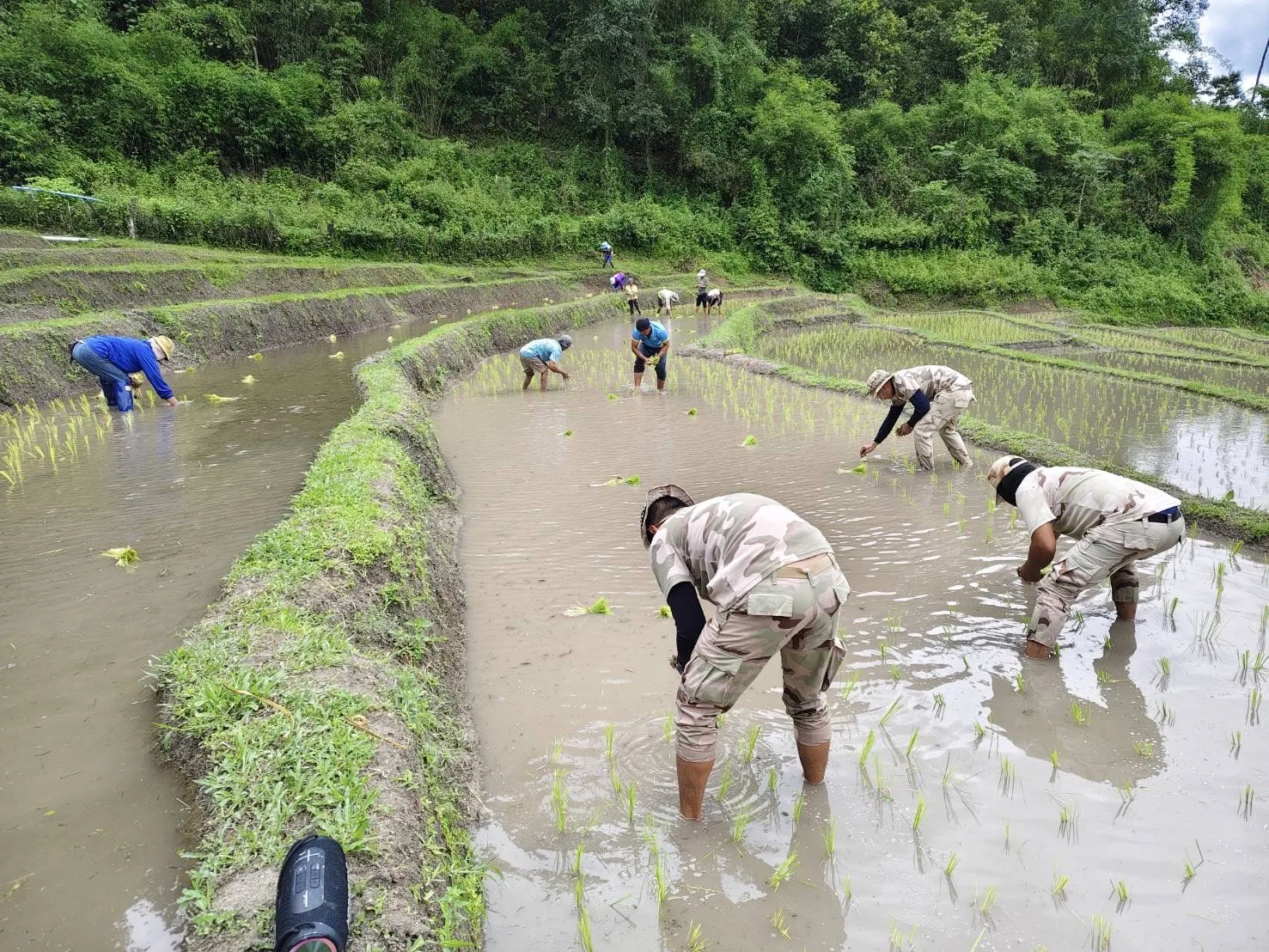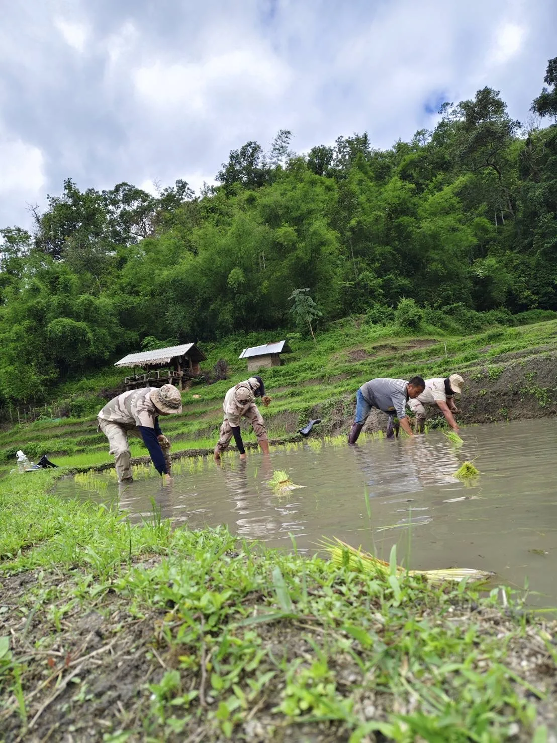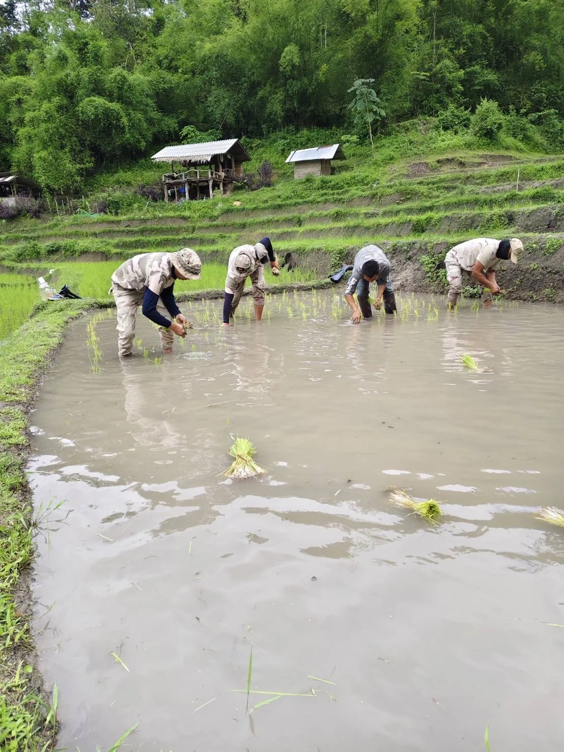 สานสัมพันธ์ที่ดีกับประชาชนในพื้นที่ สมาชิก อส.แม่แตงที่ 10 ลงแปลงนาปลูกข้าวพันธุ์พื้นเมือง ร่วมกับพี่น้องชนเผ่าปกาเกอะญอ บ้านหัวเลา