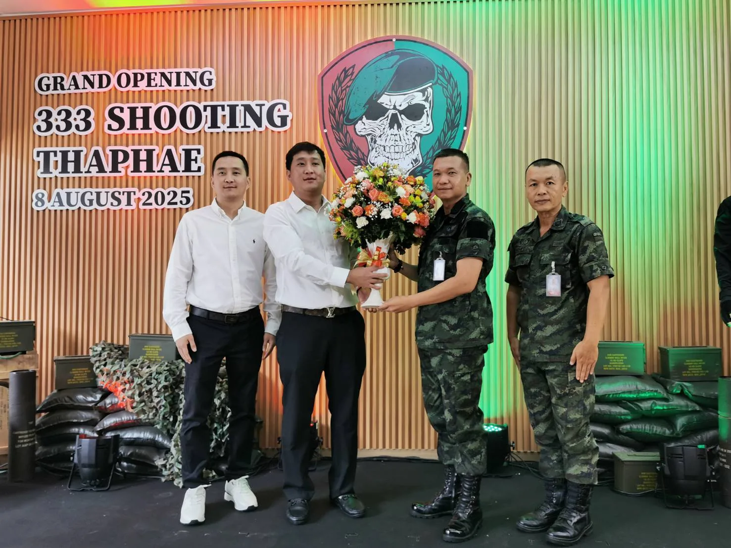 รองผู้บังคับการภูธร จังหวัดแม่ฮ่องสอน ให้เกียรติเป็นประธาน โดยมี พ.ต.อ.พลจักร บุนนาค ผู้กำกับการ สภ.แม่โจ้, พ.ต.อ.ปรัชญา ทิศลา ผู้กำกับการตำรวจภูธรเมืองเชียงใหม่, พันเอกภาคภูมิ อินดี, คุณเอกชัย พุ่มพวง, คุณศักดิ์ชัย ยี่ปา และคุณทวีชัย ยี่ปา ผู้บริหารของ 333 Shooting Thaphae ร่วมไปถึงแขกผู้มีเกียรติ และสื่อมวลชนร่วมเป็นสักขีพยานในการเปิดสนามยิงปืน อย่างเป็นทางการ เมื่อวันที่ 8 สิงหาคม 2568 ที่ผ่านมา