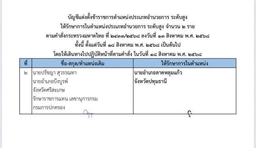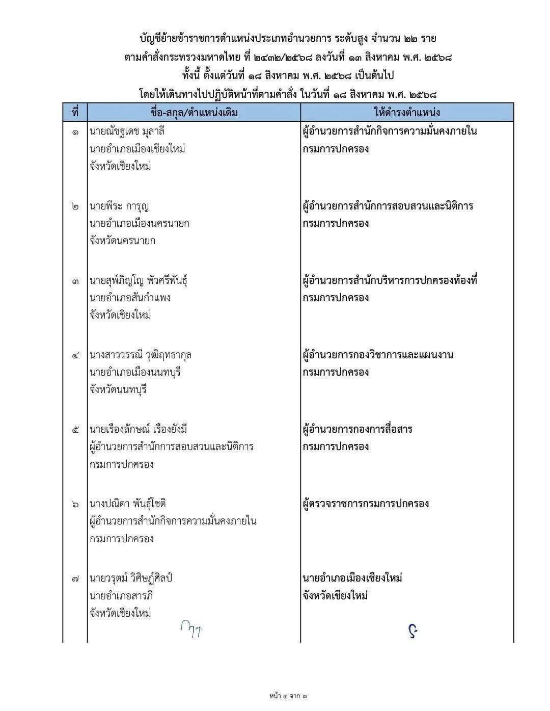 มหาดไทยจัดทัพใหญ่กรมการปกครอง! สั่งย้าย 22 นายอำเภอ-ผู้บริหารระดับสูง นายอำเภอเมืองเชียงใหม่ ขึ้น ผอ.กองฯ กิจการความมั่นคงภายใน