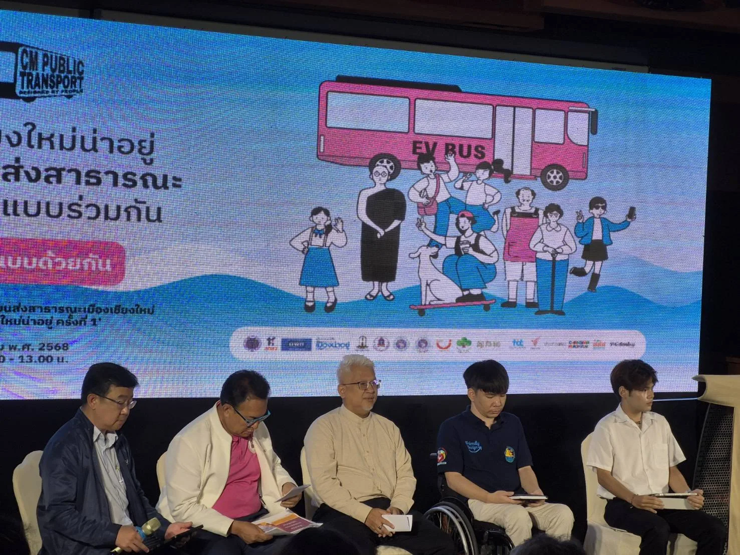 วันที่ 14 สิงหาคม พ.ศ. 2568 เครือข่ายความร่วมมือเพื่อพัฒนาขนส่งสาธารณะเมืองเชียงใหม่เพื่อเมืองเชียงใหม่น่าอยู่ และ โครงการพัฒนานโยบายสาธารณะ เพื่อส่งเสริมการมีขนส่งสาธารณะเมืองเชียงใหม่ จัดเวทีสาธารณะออกแบบขนส่งสาธารณะเมืองเชียงใหม่ เพื่อเมืองเชียงใหม่น่าอยู่ ครั้งที่ 1 ณ ห้องประชุมนวรัฐ 3 ชั้น 3 โรงแรมเมอเวนพิค สุริวงศ์ อ.เมือง จ.เชียงใหม่