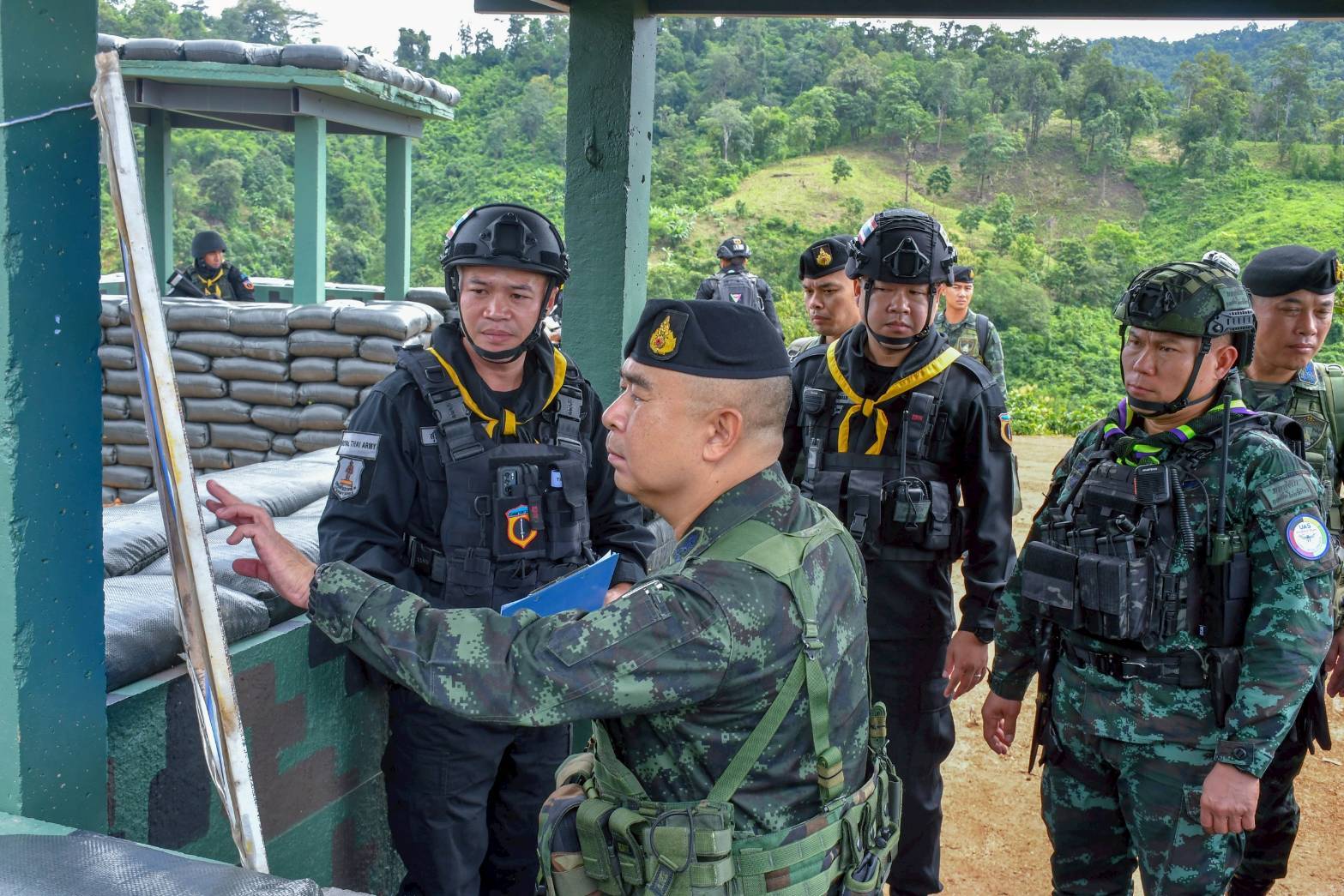 14 ส.ค. 68 กองกำลังนเรศวร โดย พันเอก ณรงค์ชัย เจริญชัย รองผู้บัญชาการกองกำลังนเรศวร พร้อมด้วย พันเอก ณัฐกร เรือนติ๊บ ผู้บังคับหน่วยเฉพาะกิจราชมนู และ พันเอก องอาจ สัมพันธ์ ผู้บังคับหน่วยเฉพาะกิจกรมทหารพรานที่ 35 เดินทางติดตามสถานการณ์ชายแดนและผลกระทบ ณ จุดตรวจการณ์ ฐานปฏิบัติการกันทะปา และได้เน้นย้ำให้หน่วยเฉพาะกิจราชมนู และ หน่วยเฉาะกิจกรมทหารพรานที่ 35 เพิ่มความเข้มข้นมาตรการเฝ้าตรวจและป้องกัน เพื่อดูแลความปลอดภัยในชีวิตและทรัพย์สินให้กับพี่น้องประชาชนตามแนวชายแดน อย่างเต็มขีดความสามารถ ตลอด 24 ชั่วโมง