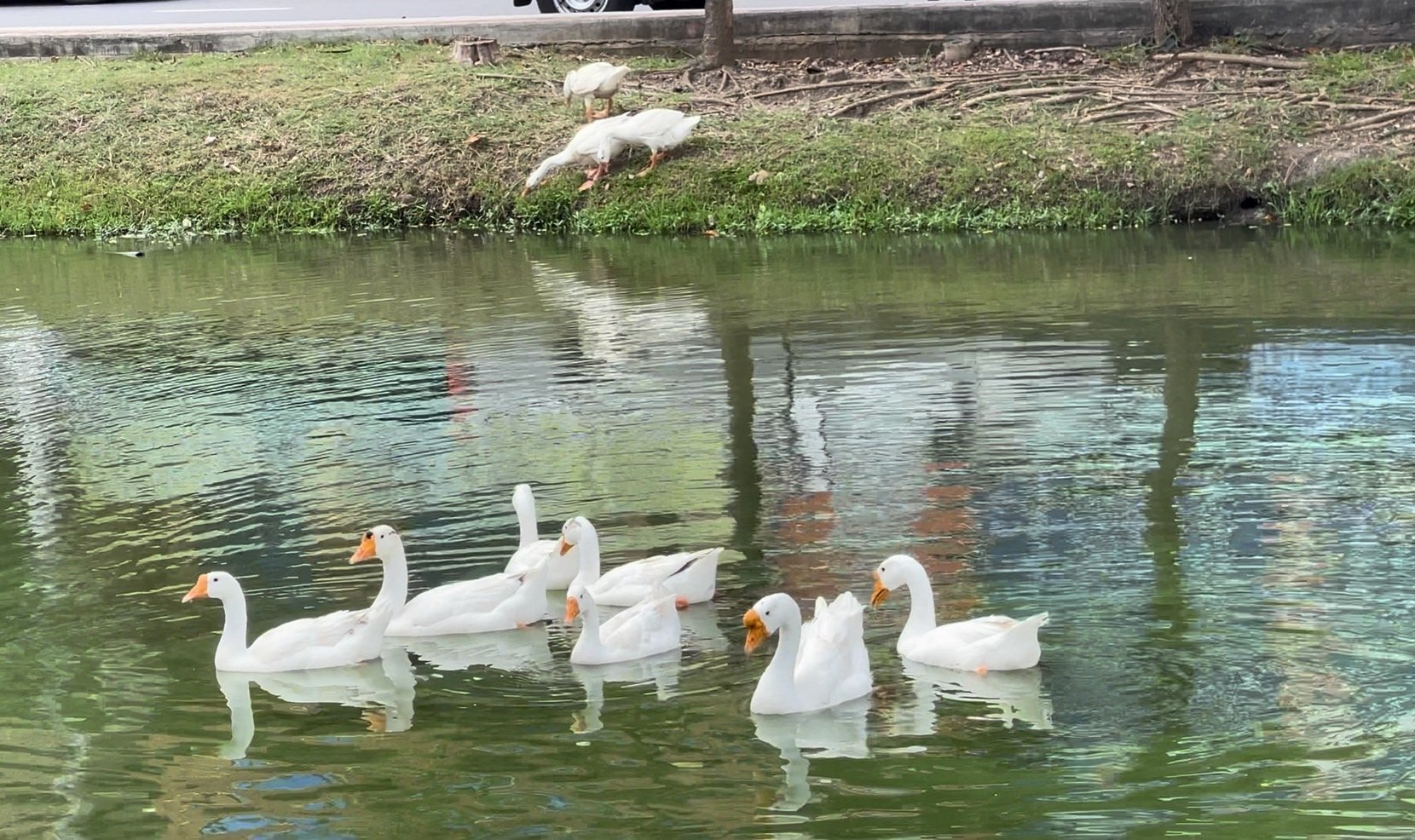 ชาวบ้านฮือฮาพบฝูงห่านเริงร่าในคูเมือง ชื่นชอบน้องๆ มาสร้างสีสันได้ฟีลเหมือนสวนสาธารณะ แนะดูแลให้ดีห่วงคนแอบมาขโมย ทน.เชียงใหม่ เผยไอเดียทดลองส่งฝูงห่านปราบจอกแหนวัชพืช