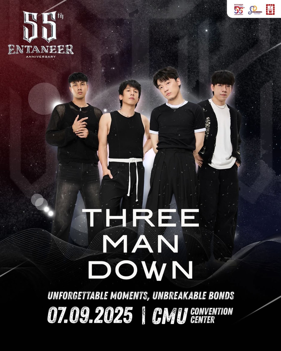 และนี่คือศิลปินสุดพิเศษ วงสุดท้าย ของคอนเสิร์ตครบรอบ 55 ปี วิศวะ มช. 🎶 มาร่วมอินและร้องไปพร้อมกันกับ Three Man Down บนเวทีครั้งนี้