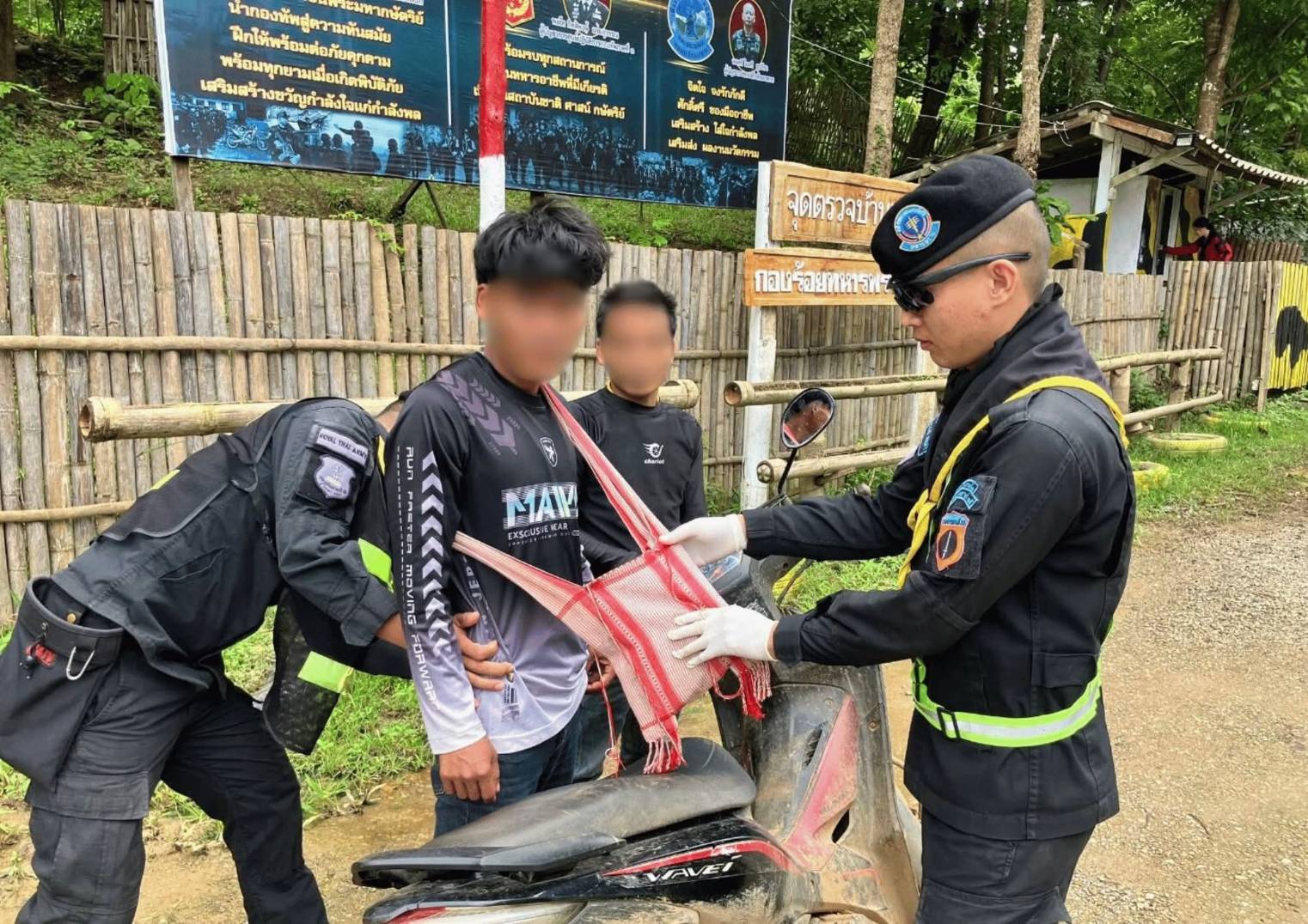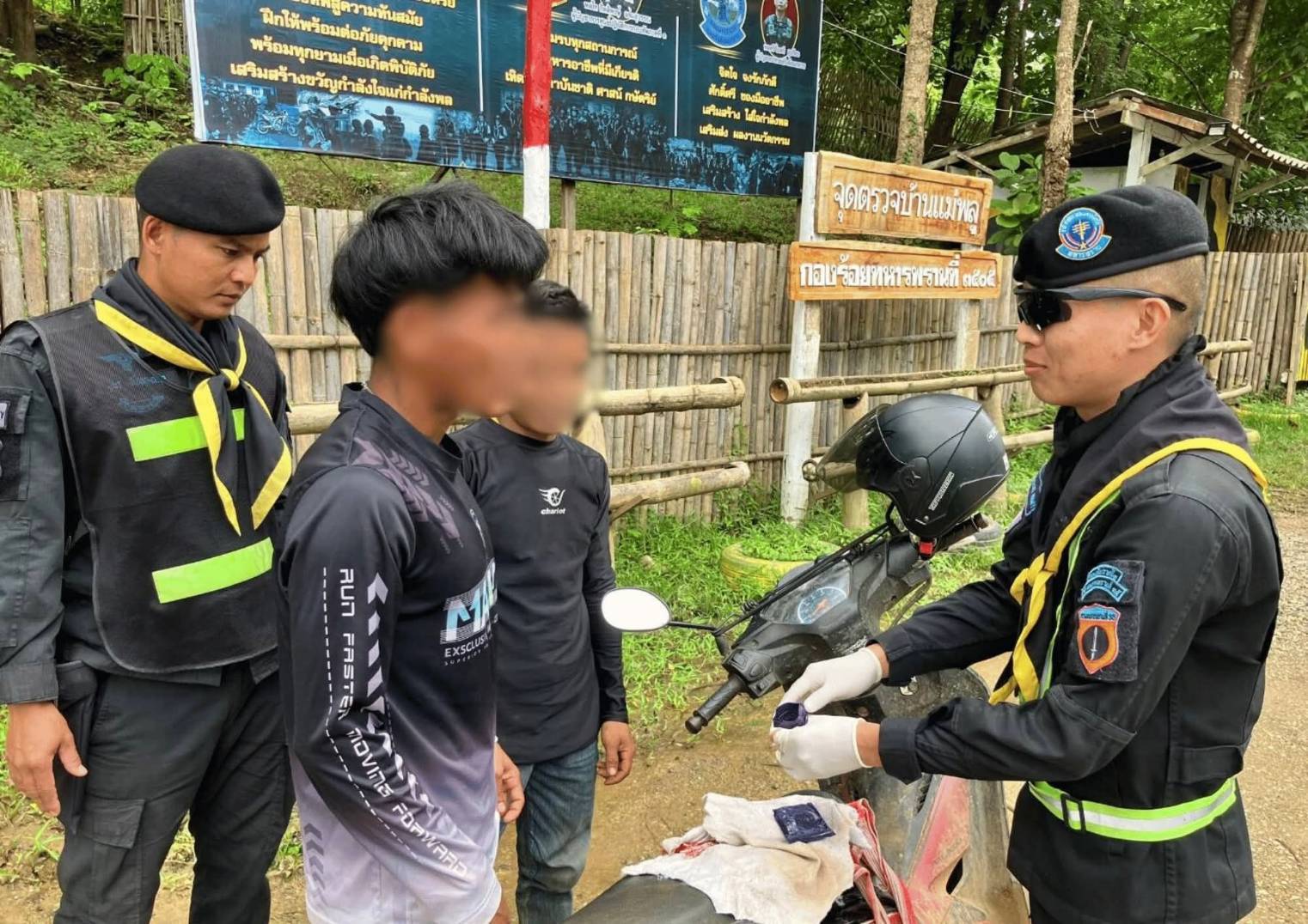 หน่วยเฉพาะกิจกรมทหารพรานที่ 35 ปฏิบัติหน้าที่ ณ จุดตรวจเพื่อความมั่นคงบ้านแม่พลู อ.ท่าสองยาง จ.ตาก ตรวจรถจักรยานยนต์ฮอนด้า เวฟไอ สีดำ–แดง ผู้ขับขี่คือชาย วัย 25 ปี และผู้ซ้อนท้ายคือชาย วัย 35 ปี ทั้งสองมีท่าทางพิรุธ จึงเข้าตรวจค้นพบยาบ้า 404 เม็ด (สีส้ม 400 เม็ด, สีเขียว 4 เม็ด) บรรจุถุงพลาสติก 2 ถุง พร้อมเงินสด 940 บาท ซุกซ่อนในย่ามสะพายสีแดงของผู้ขับขี่ ผู้ต้องหาให้การยอมรับสารภาพว่า ได้ยาเสพติดมาจากชายไม่ทราบชื่อ บริเวณบ้านแม่ระเมิง เพื่อนำไปส่งบ้านแม่อุสุ อ.ท่าสองยาง ผลตรวจปัสสาวะทั้งสองพบสารเสพติด