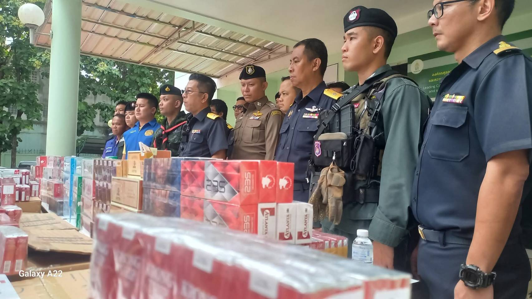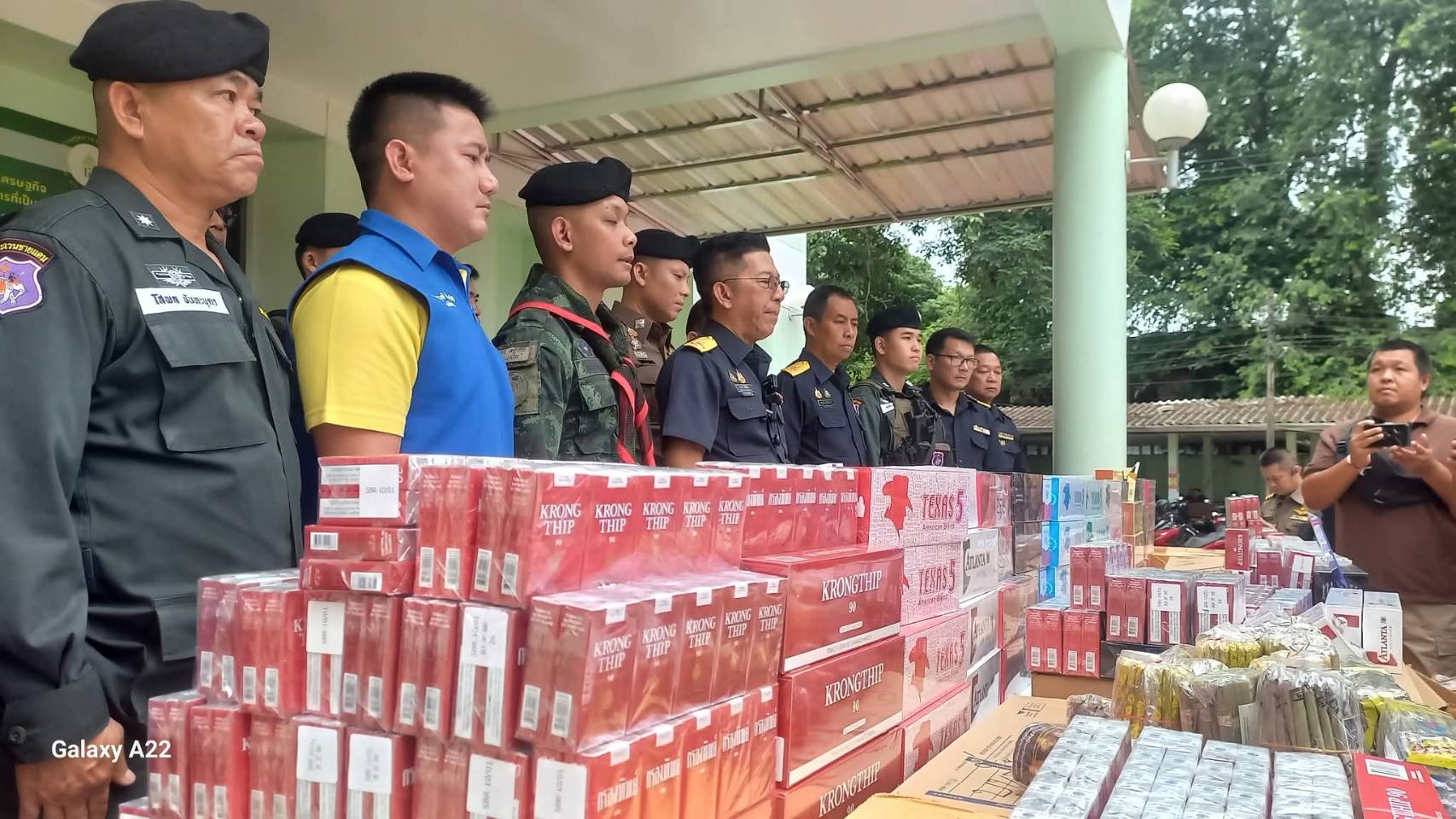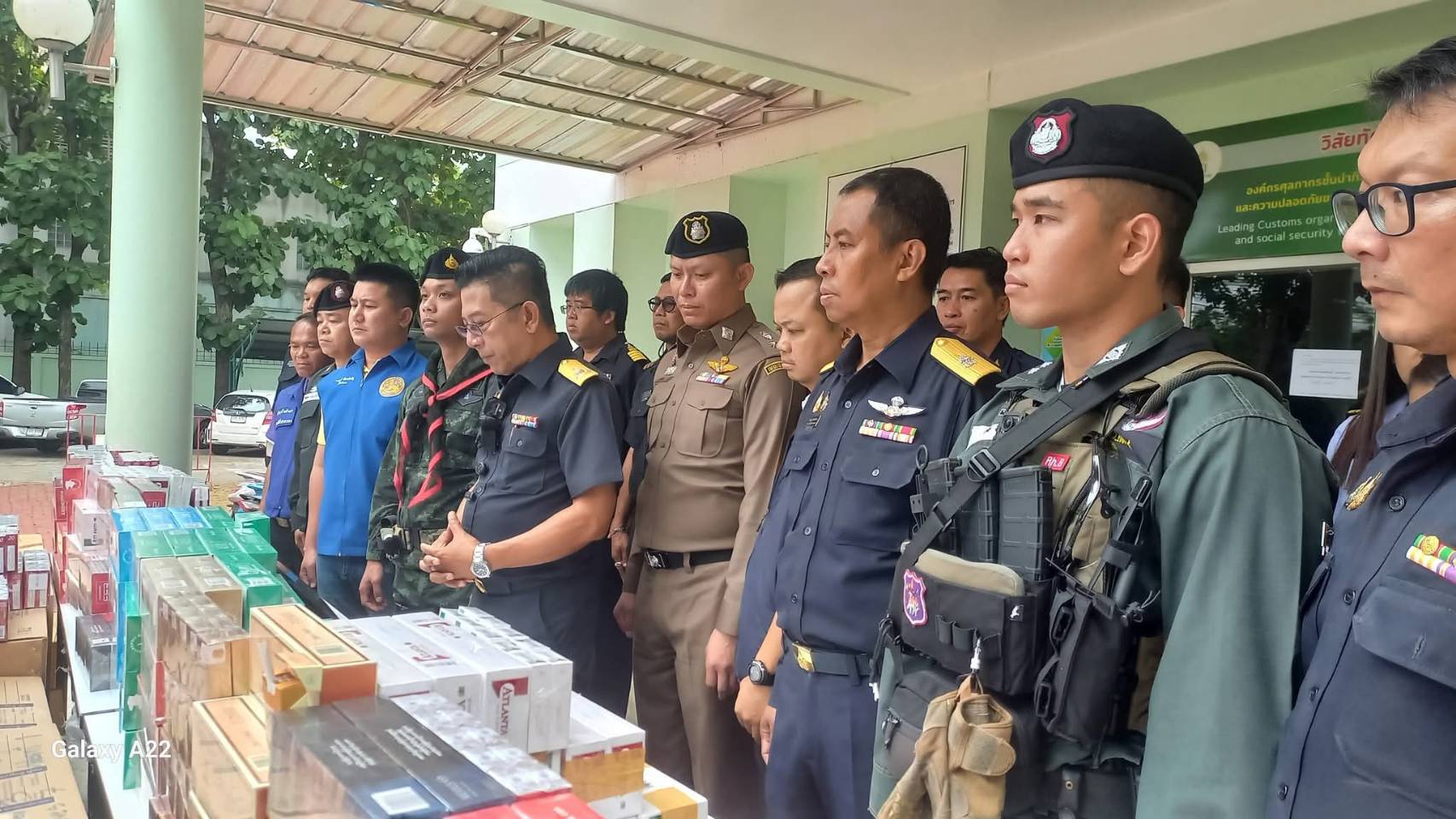 ด่านศุลกากรแม่สอด ร่วมหน่วยงาน ทหาร-ตำรวจ-ปกครอง แถลงข่าวจับบุหรี่เถื่อนและสินค้าหนีภาษี มูลค่ากว่า 63 ล้านบาท