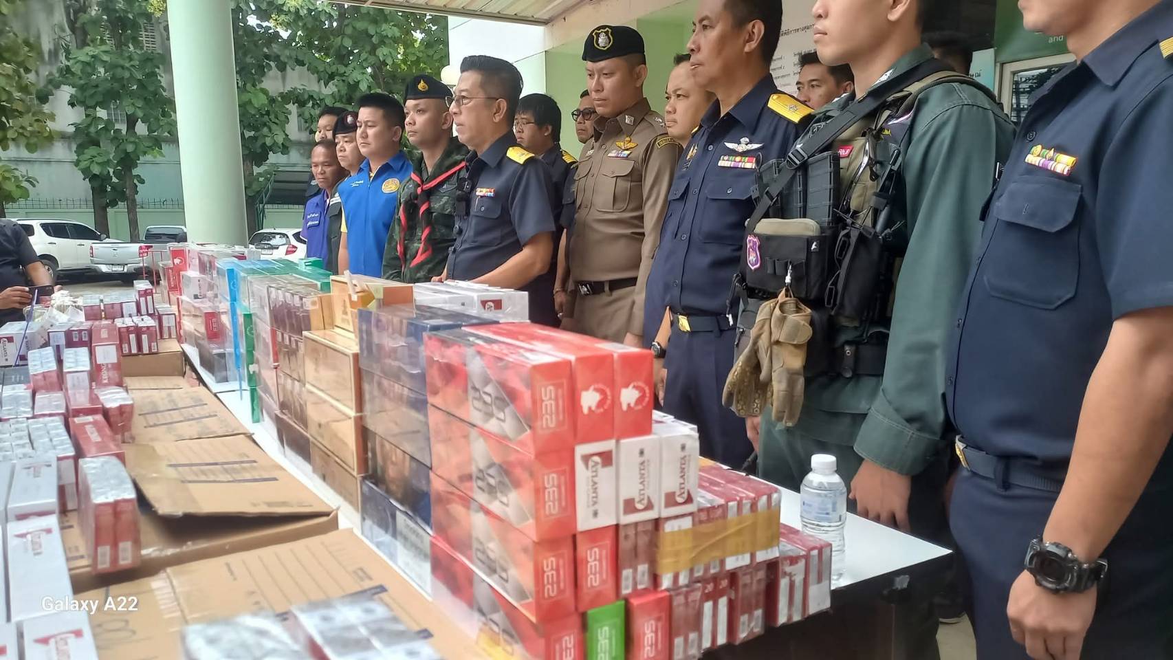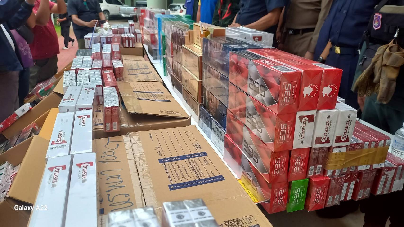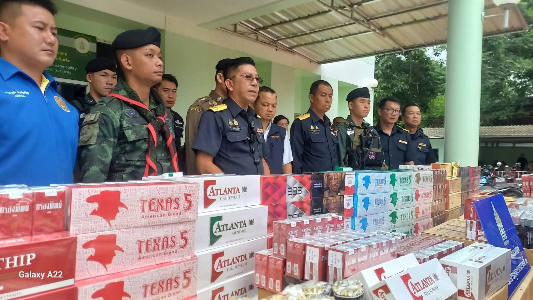 ด่านศุลกากรแม่สอด ร่วมหน่วยงาน ทหาร-ตำรวจ-ปกครอง แถลงข่าวจับบุหรี่เถื่อนและสินค้าหนีภาษี มูลค่ากว่า 63 ล้านบาท