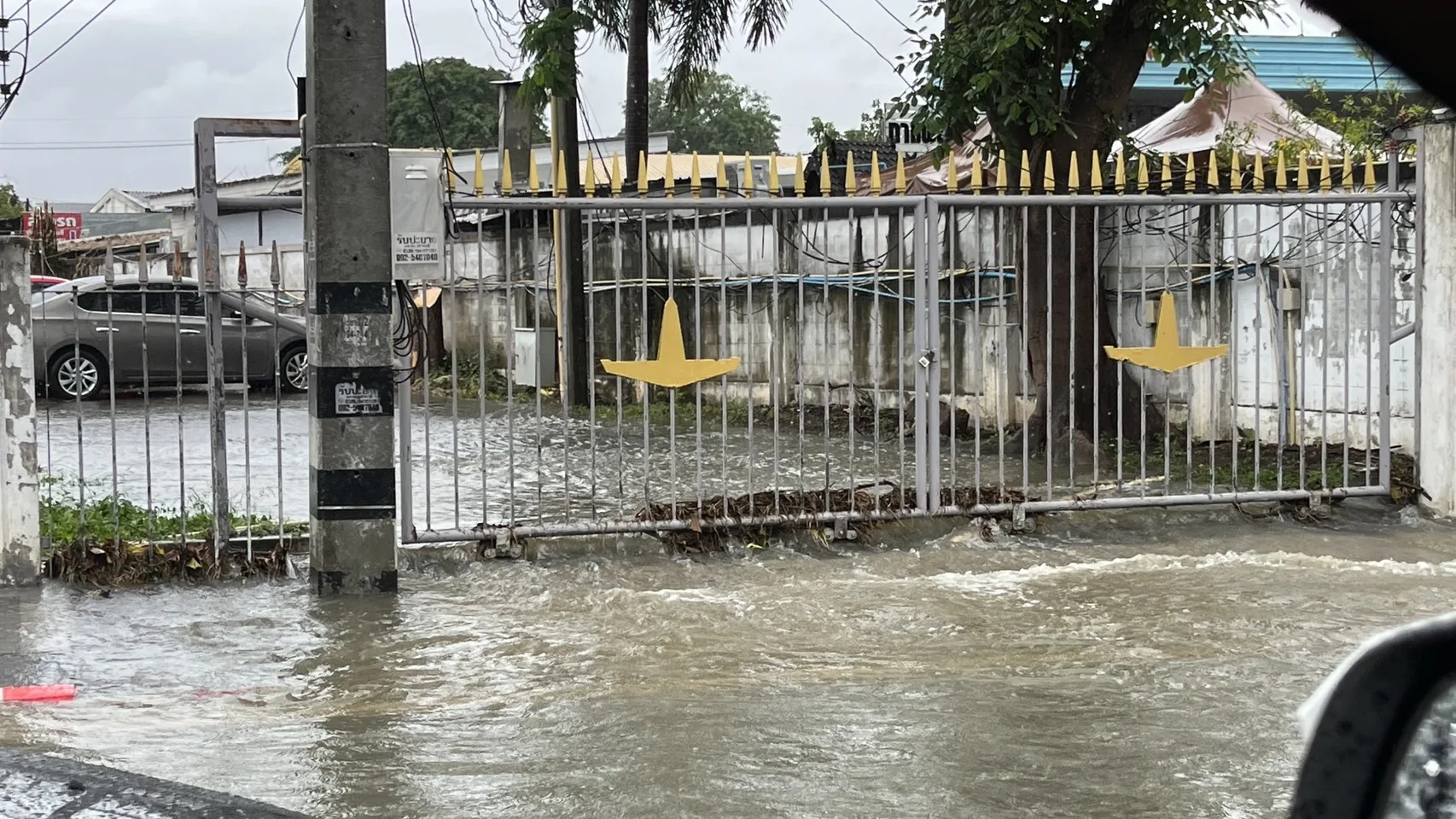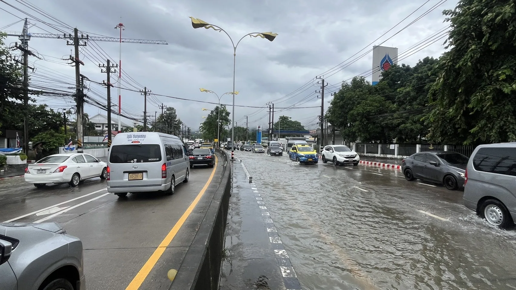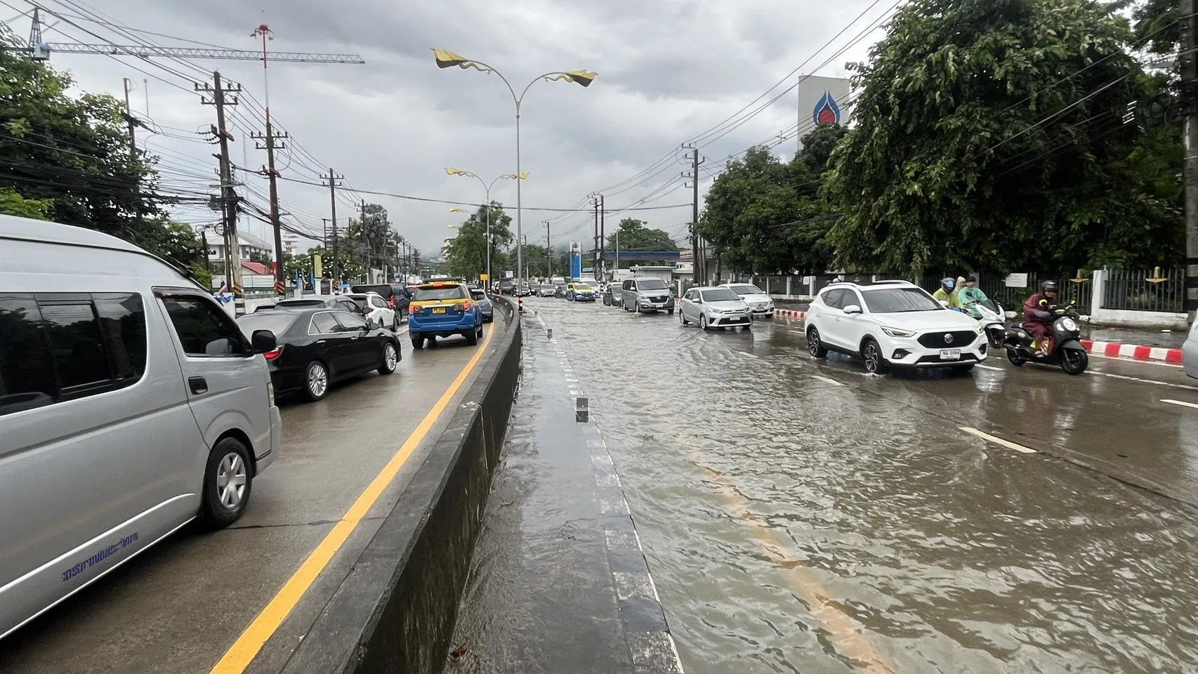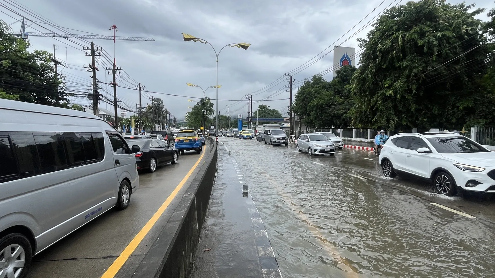 รถยนต์ขนาดเล็ก ต้องขับเลนซ้ายสุดเพื่อหนีน้ำท่วม โดยน้ำไหลออกมาจากกองบิน 41 ซึ่งสายน้ำดังกล่าวได้ไหลลงมาจากยอดดอยสุเทพ ไหลมาตามถนน จากนั้นน้ำก็จะไหลลงท่อส่งน้ำไหลทางต่อไป