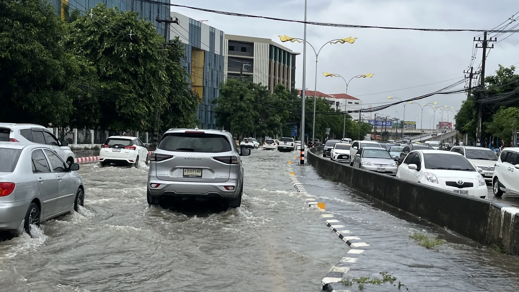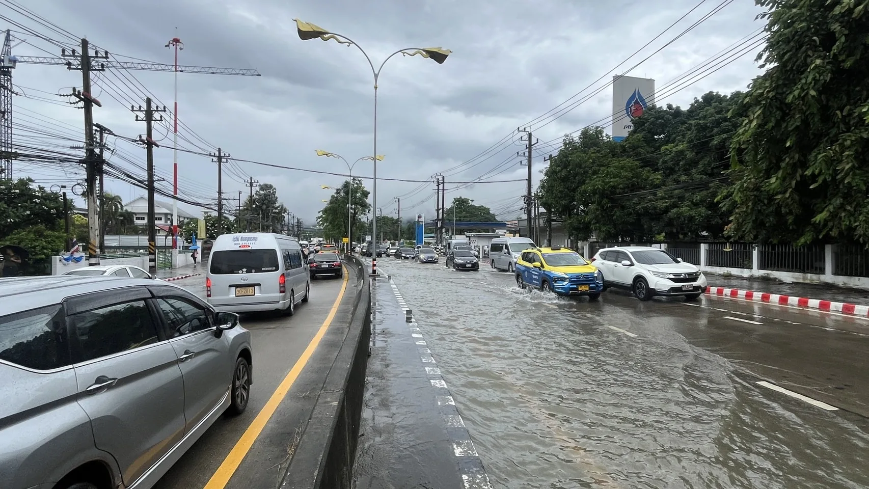 ซึ่งล่าสุดน้ำยังท่วมขังอยู่ เตือนผู้ขับขี่รถจักรยานยนต์ หรือยนต์ขนาดเล็ก หากใช้เส้นทางถนนขาออกจากสนมบิน ก็ขอให้ใช้ความระมัดระวังเป็นพิเศษด้วย.
