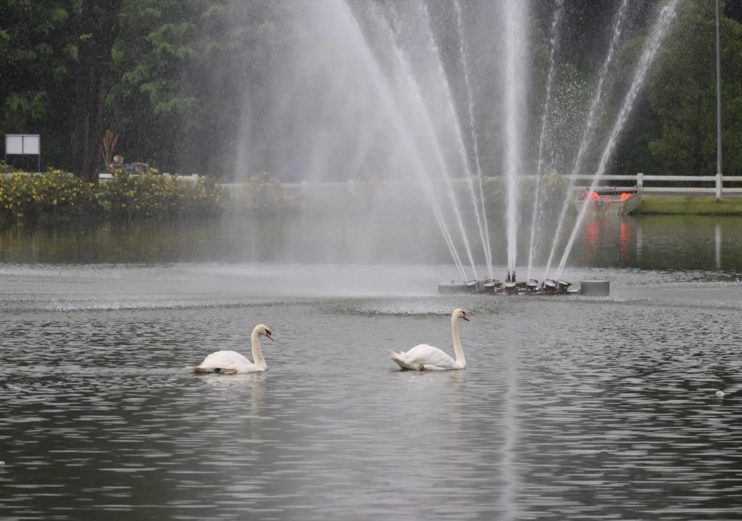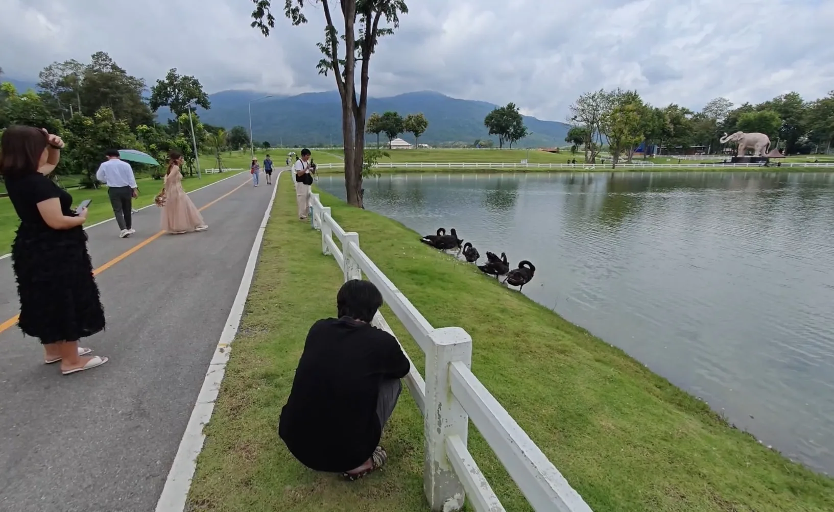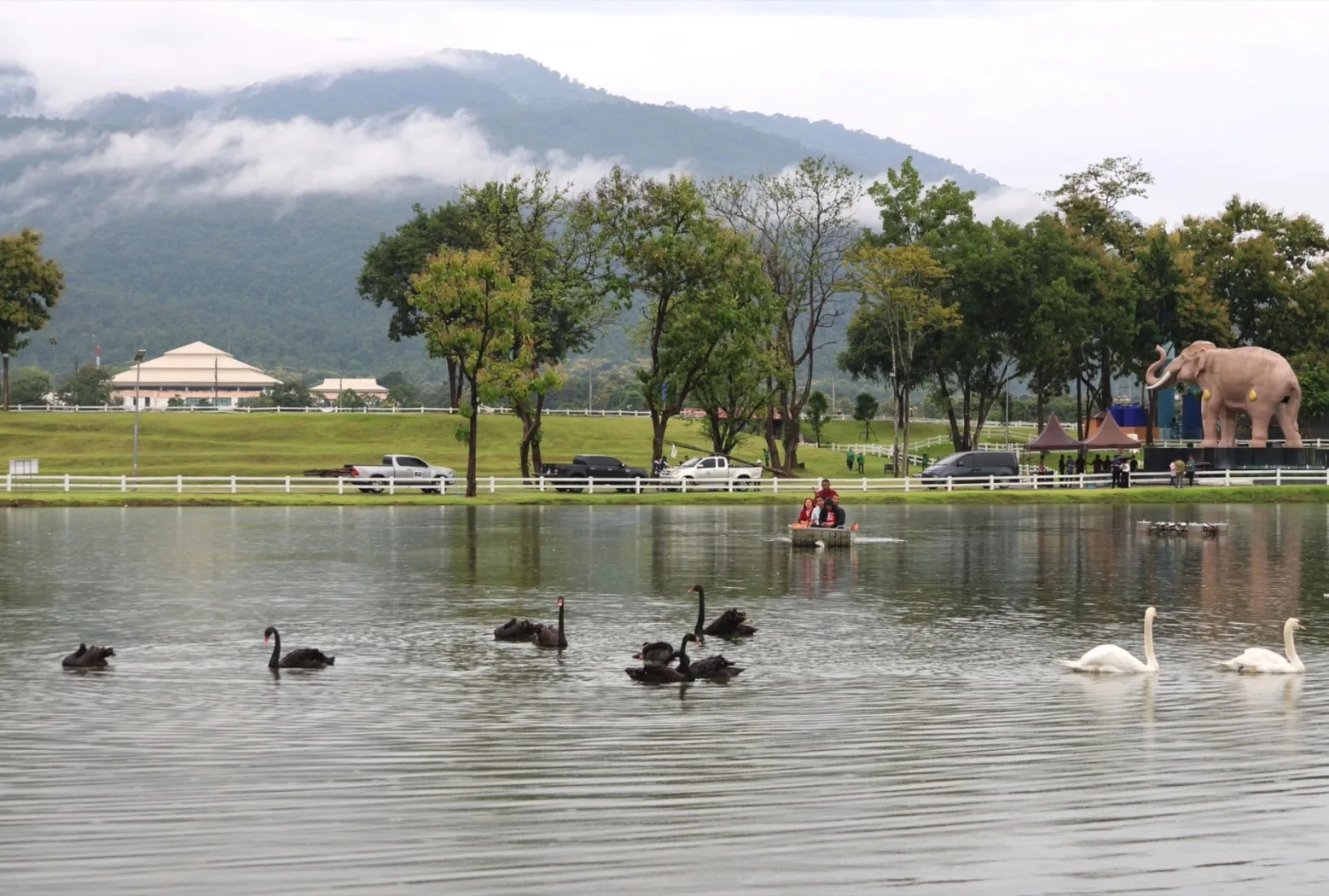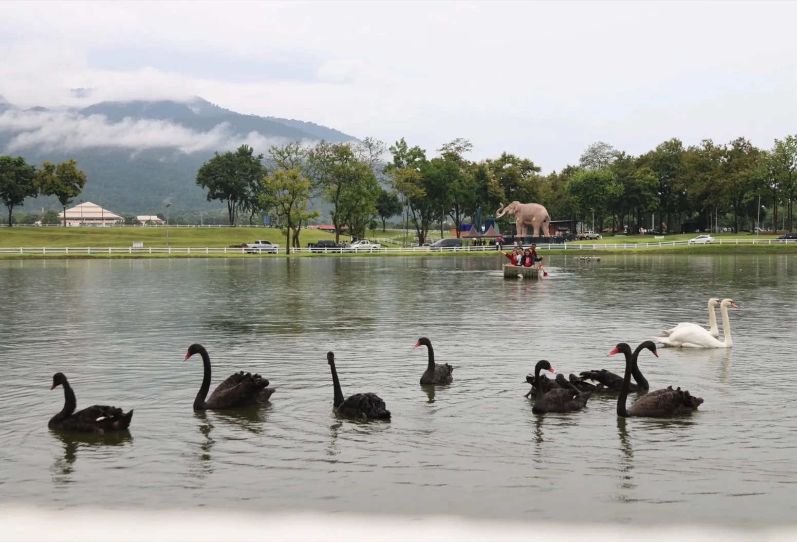 แม้บรรยากาศที่คูเมืองจะเงียบเหงา แต่ที่สวนสาธารณะเฉลิมพระเกียรติ อบจ.เชียงใหม่ กลับคึกคักขึ้นมาทันที หลังจากเช้านี้นายพิชัย เลิศพงศ์อดิศร นายก อบจ.เชียงใหม่ ปล่อยหงส์จำนวน 10 ตัว ถูกปล่อยลงในสระภายในสวน เป็นหงส์ดำ 8 ตัว และ หงส์ขาว อีก 2 ตัว ให้นักท่องเที่ยวได้มาเที่ยวชมและถ่ายภาพ ซึ่งบรรยากาศฝูงหงส์ที่แหวกหว่ายในสระท่ามกลางสวนสาธารณะที่มีฉากหลังเป็นดอยสูงของ อช.ดอยสุเทพ-ปุย ทำให้ได้ฟีลเหมือนกับประเทศในแถบยุโรปเลยทีเดียว ขณะที่ประชาชนและนักท่องเที่ยวที่ทราบข่าวเริ่มทยอยไปเที่ยวชมและถ่ายภาพความน่ารักของน้องหงส์กันตลอดทั้งวัน