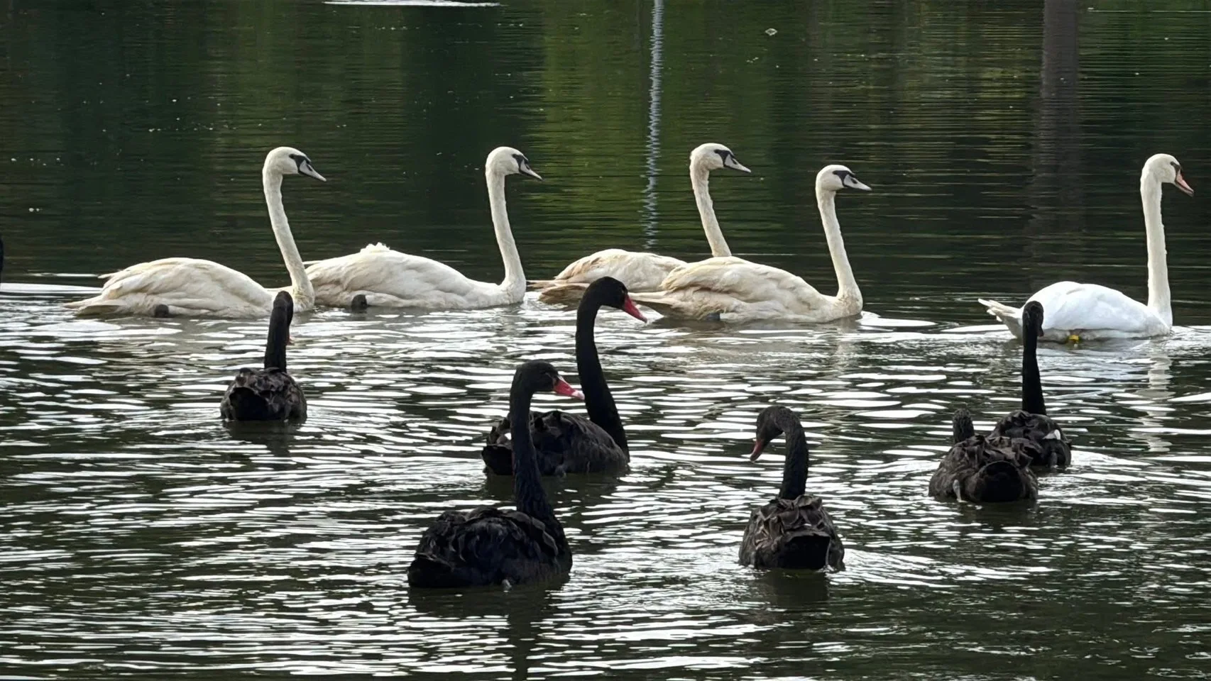 สรุปตอนนี้ มีหงส์ขาว 6 ตัว หงส์ดำ 8 ตัว รวม 14 ตัว ว่ายน้ำเล่นเต็มบึงฯ ได้รับความสนใจจากนักท่องเที่ยวเช่นกัน