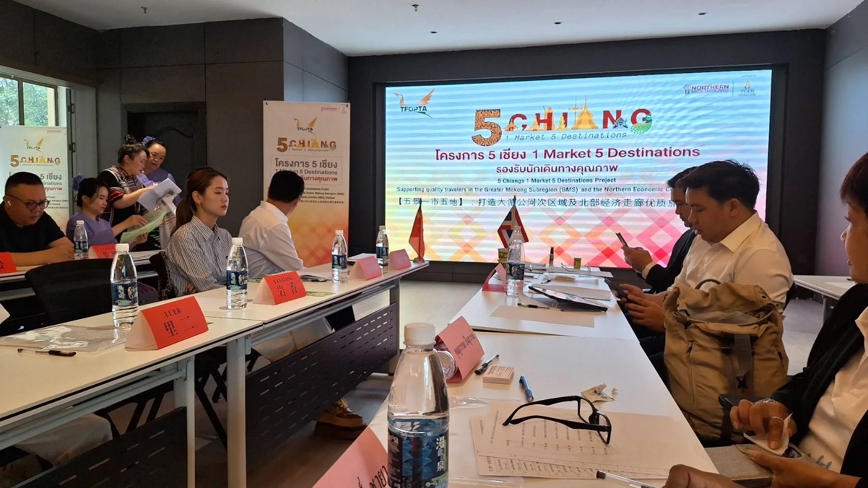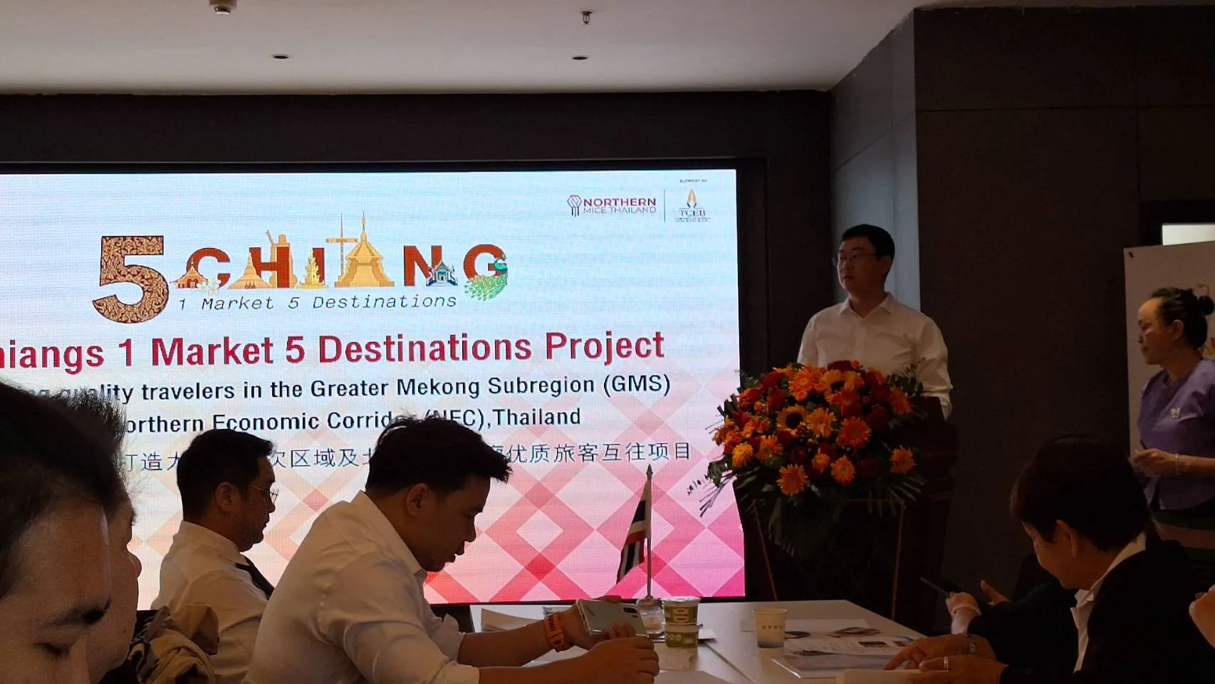 ประธานสมาคมสมาพันธ์ธุรกิจการท่องเที่ยวส่วนภูมิภาคแห่งประเทศไทย เปิดเผยว่า สมาคมสมาพันธ์ธุรกิจการท่องเที่ยวส่วนภูมิภาคแห่งประเทศไทย โดยการสนับสนุนของสำนักงานส่งเสริมการจัดประชุมและนิทรรศการ (องค์การมหาชน) คณะจากประเทศไทยมีความประทับใจที่ได้พบปะ แลกเปลี่ยน และสร้างความร่วมมือระหว่างภาครัฐและเอกชนโดยเฉพาะด้านการท่องเที่ยวระหว่างกันในอนาคต การเดินทางของคณะจากประเทศไทยครั้งนี้ อยู่ภายใต้โครงการ 5 เชียง 1 ตลาด เพื่อรองรับนักเดินทางคุณภาพ และผลักดันให้ผู้ประกอบการที่เกี่ยวเนื่องกับธุรกิจการจัดประชุม การเดินทางเพื่อเป็นรางวัล และการจัดแสดงสินค้าและนิทรรศการ ในพื้นที่ภาคเหนือ ของประเทศไทย ได้เชื่อมโยงกับเครือข่ายภาคธุรกิจ ในพื้นที่ 5 เชียง ได้แก่ เมืองเชียงรุ่ง สิบสองปันนา มณฑลยูนานาน ประเทศจีน, เชียงตุง สหภาพเมียนมาร์ , เชียงทอง หรือหลวงพระบาง สปป.ลาว เพื่อประชาสัมพันธ์เส้นทาง “5 เชียง” ให้เป็นที่รู้จักในกลุ่มนักเดินทางคุณภาพและตลาดไมซ์ระดับบนสร้างการรับรู้ภาพลักษณ์ในระดับภูมิภาคอนุภูมิภาคลุ่มแม่น้ำโขง ที่จะครอบคลุม กลุ่มสุขภาพ วัฒนธรรม และตลาดใหม่ การมาเยี่ยมเยียน พบปะกันในวันนี้ จะสร้างโอกาสความร่วมมือระหว่างผู้ประกอบการของทั้งสองประเทศที่จะเชื่อมโยงการเดินทางผ่านทางสายการบิน เส้นทาง R3A รวมถึงเส้นทางแม่น้ำโขงสู่ภาคเหนือของไทยที่มีทรัพยากรการท่องเที่ยวที่โดดเด่น ทั้งด้าน วัฒนธรรม ประวัติศาสตร์ ธรรมชาติ และวิถีชีวิตชุมชน ซึ่งยังคงความงดงามและมีอัตลักษณ์ที่สามารถ ต่อยอดสู่การพัฒนาเป็นจุดหมายปลายทางของ “นักเดินทางคุณภาพ” โดยเฉพาะจากประเทศจีนต่อไป