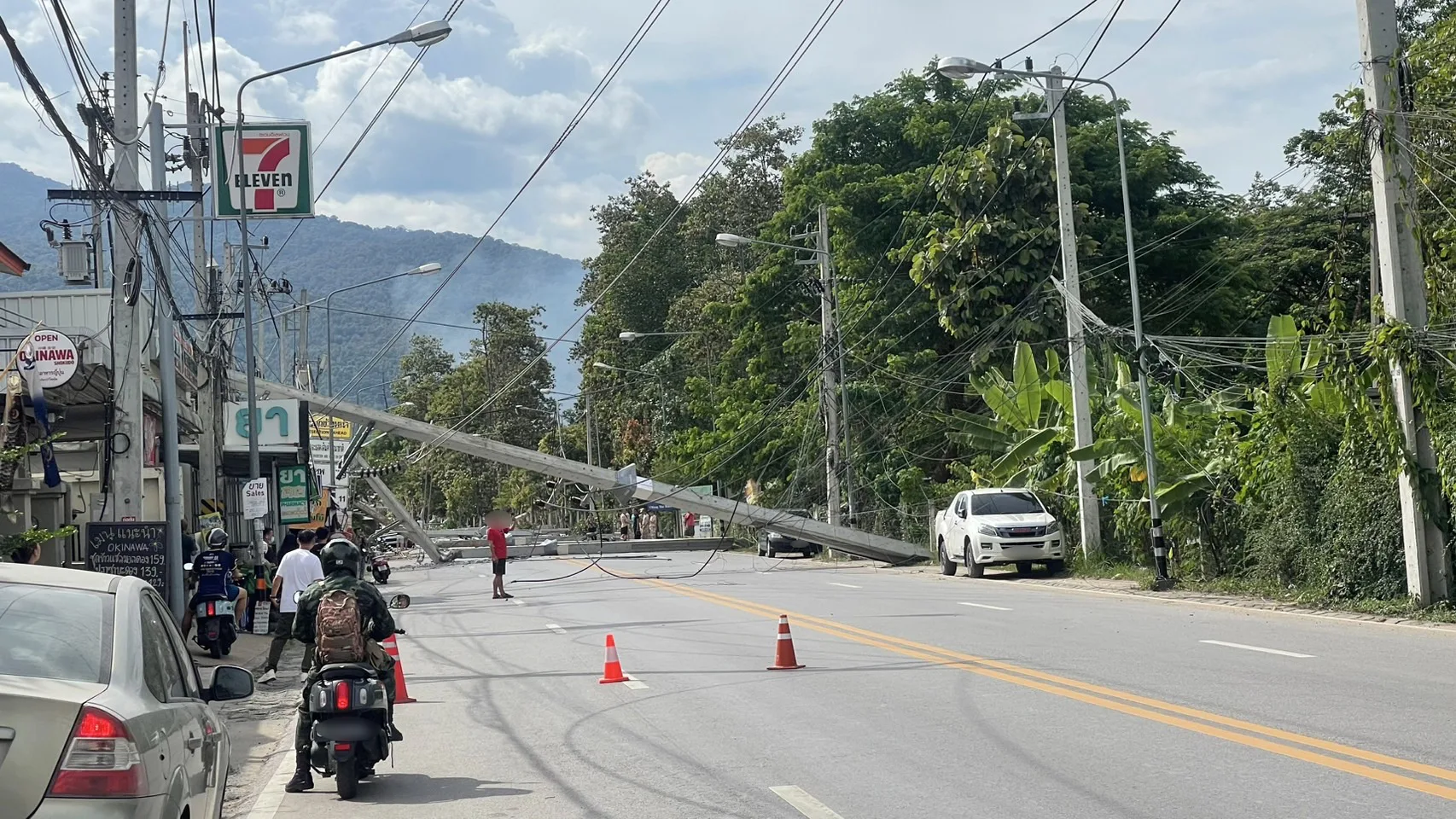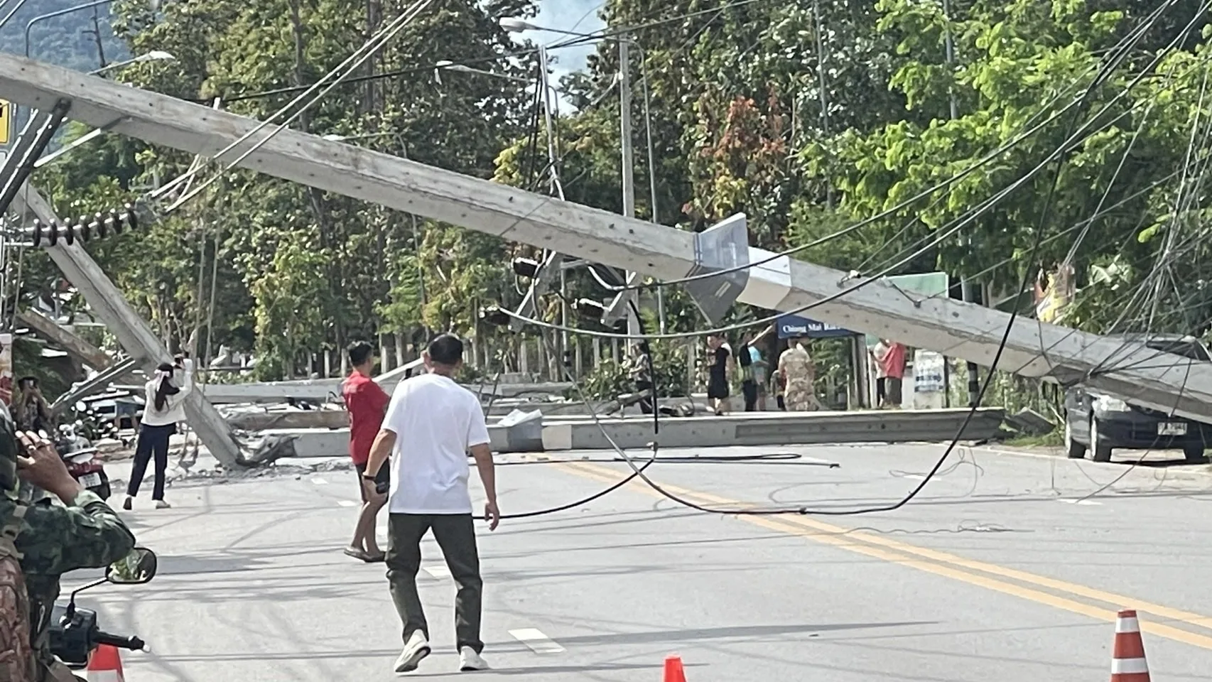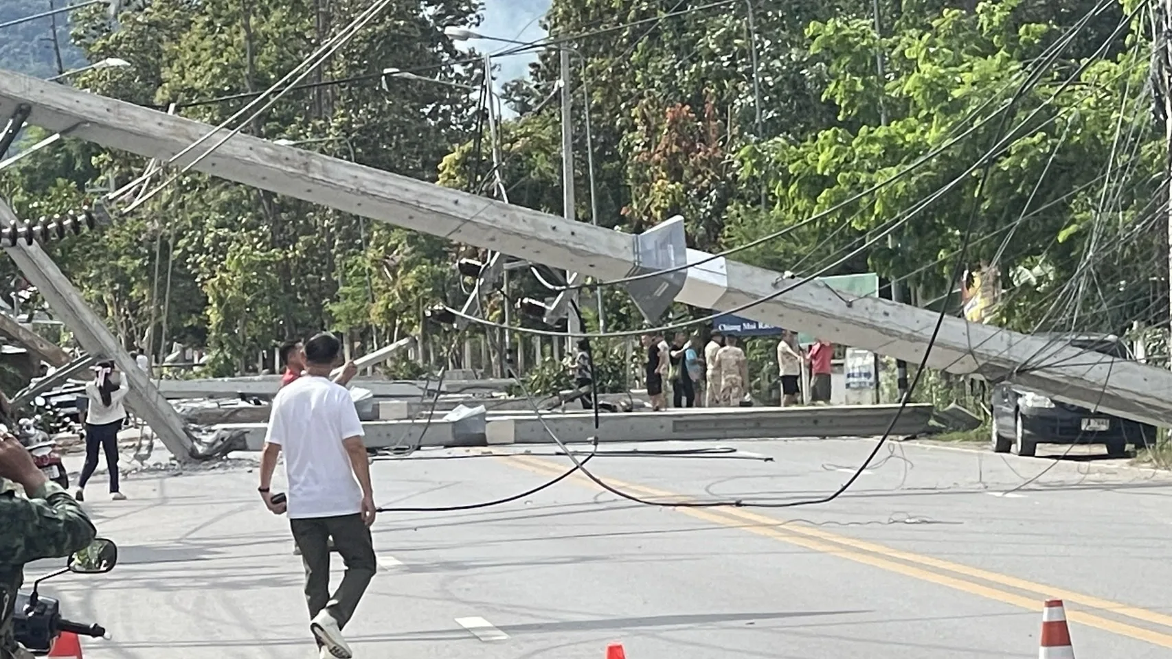 เมื่อช่วงเวลาประมาณ 15.10 น. วันนี้ (9 ก.ย.68) เกิดเหตุรถยนต์พุ่งชนเสาไฟฟ่าริมทาง บริเวณด้านหน้าร้านฮิมโก้ง ถนนสายหนองฮ่อ ต.ช้างเผือก อ.เมืองเชียงใหม่ ทำให้เสาไฟฟ้าแรงสูงขนาดใหญ่หักโค่นลงมามากกว่า 20 ต้น และเป็นทางยาวเกือบ 1 กิโลเมตร ทับบ้านเรือน ร้านค้าประชาชน รวมไปถึงล้มปิดกั้นเส้นทางจราจร ได้รับความเสียหายอย่างหนัก นอกจากเสาไฟฟ้าแรงสูงที่ล้มลงมายังทำให้เกิดเพลิงไหม้บริเวณร้านฮิมโก้ง ที่อยู่ใกล้จุดเกิด