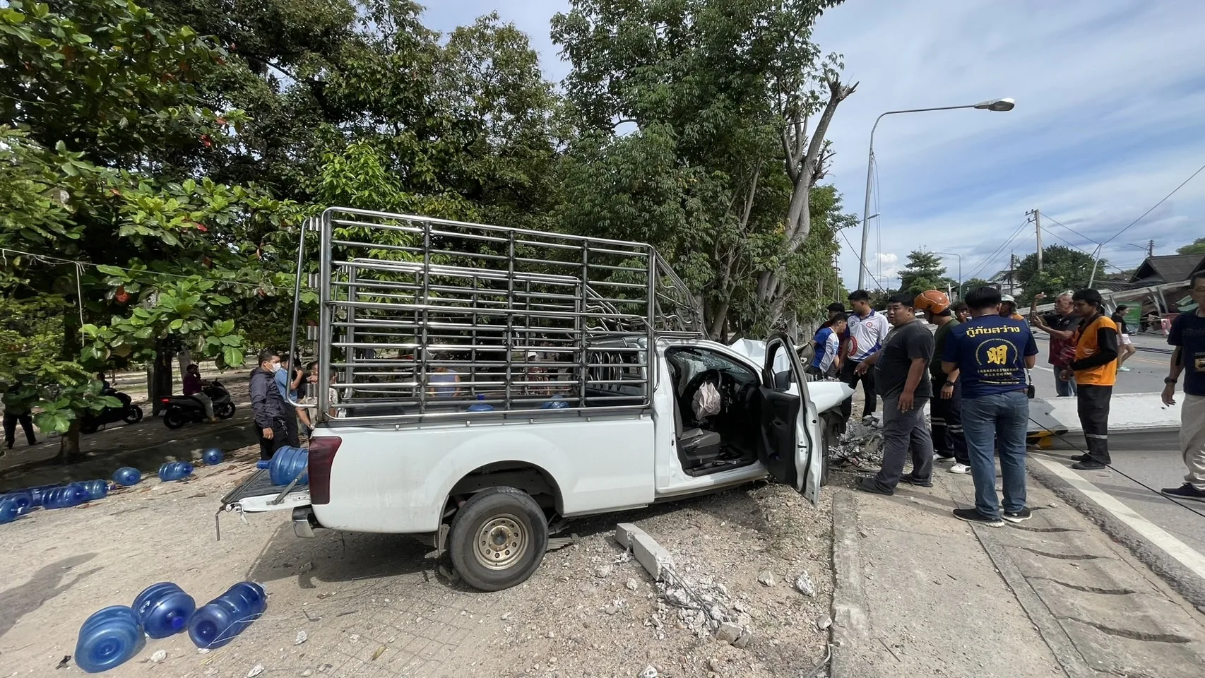 รถยนต์กระบะส่งน้ำดื่มเสียหลักพุ่งชนเสาไฟฟ้า ถนนสายหนองฮ่อ ทำเสาไฟล้มระเนระนาด เสียหายหนักไฟดับทั้งเมือง เจ้าหน้าที่เร่งเข้าเคลียร์พื้นที่ล่าสุดควบคุมสถานการณ์เบื้องต้นไว้ได้ แต่เส้นทางยังปิดชั่วคราว