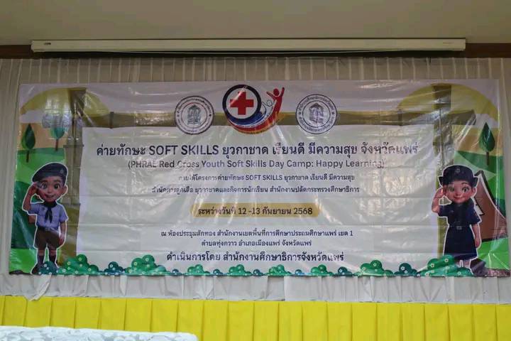 เมื่อวันที่ 12 กันยายน 2568 เวลา 09.00 น. นายสมชัย เลิศประสิทธิพันธ์ ผู้ว่าราชการจังหวัดแพร่ นายกยุวกาชาดจังหวัดแพร่ มอบหมายให้ นายคุณากร คชหิรัญ รองผู้ว่าราชการจังหวัดแพร่ รองนายกยุวกาชาดจังหวัดแพร่ เป็นประธานในพิธีเปิดค่ายทักษะ SOFT SKILLS ยุวกาชาด เรียนดี มีความสุข จังหวัดแพร่ (PHARE Red Cross Youth SOFT SKILLS Day Camp : Happy Learning) ระหว่างวันที่ 12 – 13 กันยายน 2568 จัดโดย สำนักงานศึกษาธิการจังหวัดแพร่ ร่วมกับหน่วยงาน/สถานศึกษาในจังหวัดแพร่ เพื่อส่งเสริมและพัฒนาทักษะ Soft Skills ที่จำเป็นสำหรับสมาชิกยุวกาชาด ให้มีคุณธรรม จริยธรรม พัฒนากระบวนการเรียนรู้ของกิจกรรมยุวกาชาด ให้ทันต่อการเปลี่ยนแปลงของโลก สร้างความร่วมมือและส่งเสริมการมีส่วนร่วมของนักเรียน ผู้บริหาร ครูผู้สอน และบุคลากรทางการศึกษา รวมถึงเหล่ากาชาดจังหวัดแพร่ ในการขับเคลื่อนและพัฒนากิจกรรมยุวกาชาดในสถานศึกษาให้ก้าวหน้า และเพื่อสนองพระราชดำรัสของสมเด็จพระกนิษฐาธิราชเจ้า กรมสมเด็จพระเทพรัตนราชสุดาฯ สยามบรมราชกุมารี อุปนายิกาผู้อำนวยการสภากาชาดไทย ที่ต้องการจะพัฒนากิจกรรมยุวกาชาดให้ทันสมัย สอดคล้องกับการเปลี่ยนแปลงของสังคมโลก ใน 8 เรื่อง คือ 1) เรื่องของสุขภาพ 2) เรื่องของสิ่งแวดล้อม 3) ยุวกาชาดเกษตร 4) เพศศึกษา 5) พี่เลี้ยงเด็ก 6) ยุวกาชาดชาย 7) โภชนาการ และ 😎 หลักสูตรยุวกาชาด รวมถึงให้สมาชิกยุวกาชาดได้เรียนรู้และพัฒนาทักษะ Soft Skills ที่เป็นการเรียนผ่านประสบการณ์และการลงมือทำ ทำให้สมาชิกยุวกาชาดได้เรียนรู้การวางแผน แก้ปัญหา ความคิดริเริ่มสร้างสรรค์ การมีปฏิสัมพันธ์และการทำงานร่วมกับผู้อื่น ฯลฯ ซึ่งจะเกิดการพัฒนาศักยภาพแบบองค์รวมในทุก ๆ ด้าน โดยมี นายสุวิณ เทพสาธร รองศึกษาธิการจังหวัดแพร่ เป็นผู้กล่าวรายงาน และมีรองนายกเหล่ากาชาดจังหวัดแพร่ ผู้ทรงคุณธรรมยุวกาชาด สมาชิกยุวกาชาดและครูจากสถานศึกษา 11 แห่ง ได้แก่ โรงเรียนพิริยาลัยจังหวัดแพร่ โรงเรียนนารีรัตน์จังหวัดแพร่ โรงเรียนสูงเม่นชนูปถัมภ์ โรงเรียนร้องกวางอนุสรณ์ โรงเรียนลองวิทยา โรงเรียนถิ่นโอภาสวิทยา โรงเรียนบ้านกาศประชานุเคราะห์ โรงเรียนเจริญราษฎร์ โรงเรียน อบจ.แพร่ บ้านไผ่ย้อย โรงเรียนกีฬา อบจ.แพร่ (พัฒนาประชาอุปถัมภ์) และโรงเรียน อบจ.แพร่ เด่นไชยวิทยา รวมสมาชิกยุวกาชาด จำนวน 100 คน ครูผู้สอน 22 คน เข้าร่วมพิธีเปิดฯ ณ ห้องประชุมสักทอง สำนักงานเขตพื้นที่การศึกษาประถมศึกษาแพร่ เขต 1 อำเภอเมืองแพร่ จังหวัดแพร่