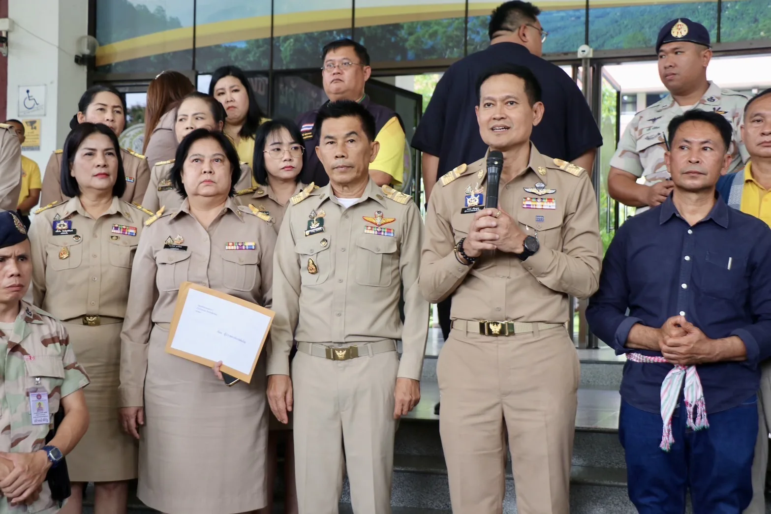 วันที่ 15 ก.ย. 68 บริเวณหน้ามุขอาคารอำนวยการ ศาลากลางจังหวัดเชียงใหม่ นายอุทัย บุญเทียม ประธานเครือข่ายเกษตรกรอำเภอแม่แจ่ม นำกลุ่มเกษตรกรผู้ปลูกข้าวโพดเลี้ยงสัตว์ในอำเภอแม่แจ่ม จังหวัดเชียงใหม่ รวมตัวมายื่นหนังสือถึงผู้ว่าราชการจังหวัดเชียงใหม่ เพื่อขอให้ช่วยเร่งติดตามแนวทางการแก้ไขราคาข้าวโพดเลี้ยงสัตว์ที่ปัจจุบันมีราคาตกต่ำ