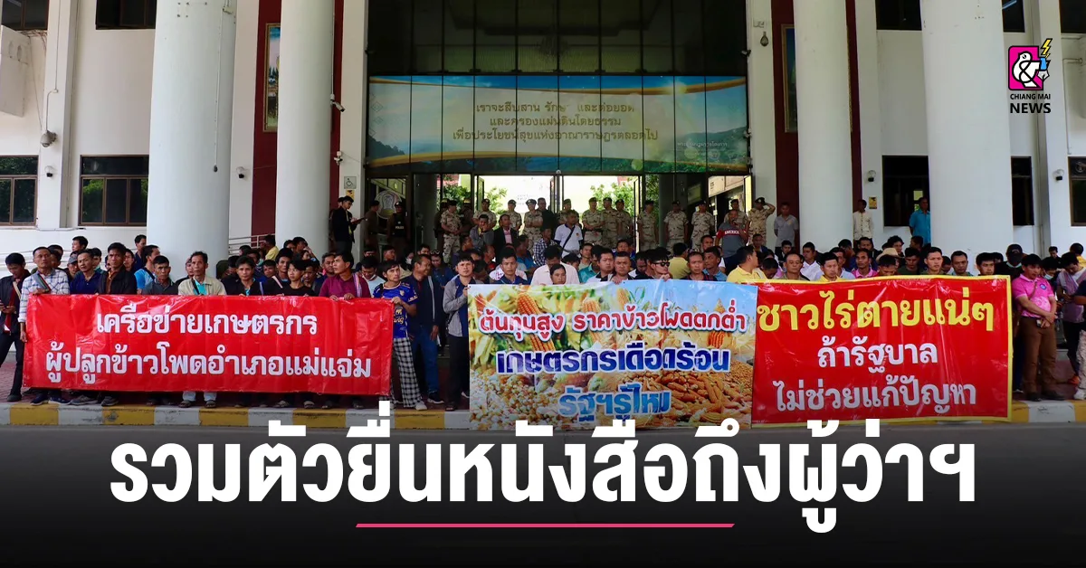 เกษตรกรผู้ปลูกข้าวโพดเลี้ยงสัตว์ อำเภอแม่แจ่ม รวมตัวยื่นหนังสือถึงผู้ว่าราชการจังหวัดเชียงใหม่ ให้ช่วยเร่งติดตามแนวทางการแก้ไขปัญหาราคาข้าวโพดตกต่ำ