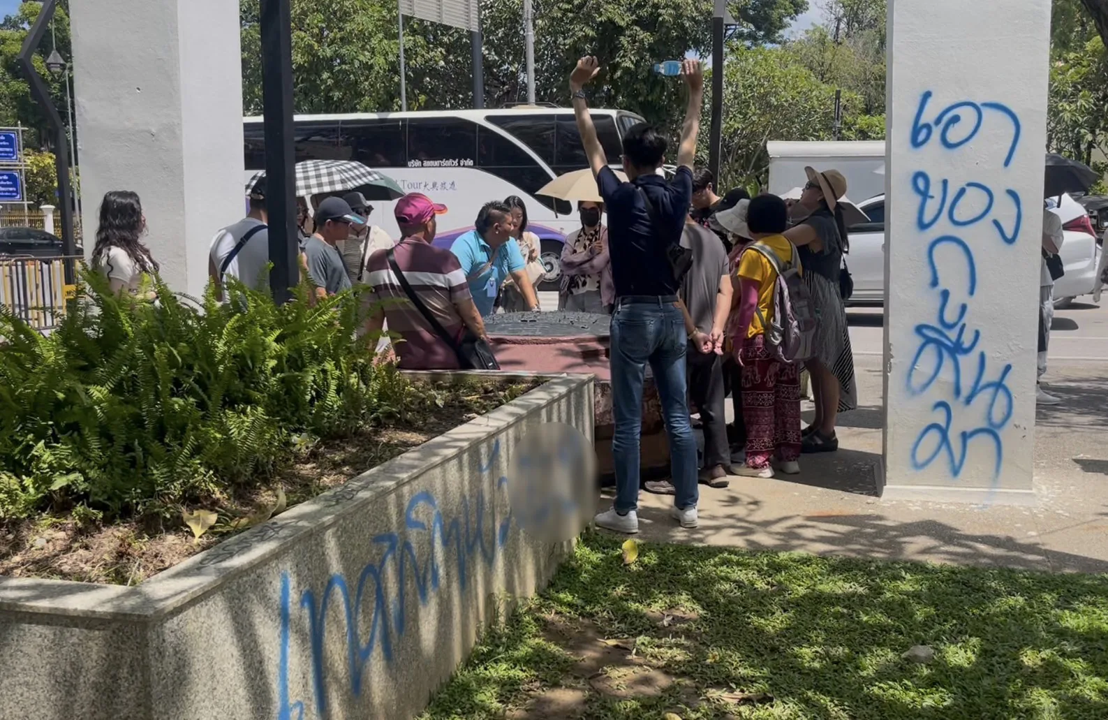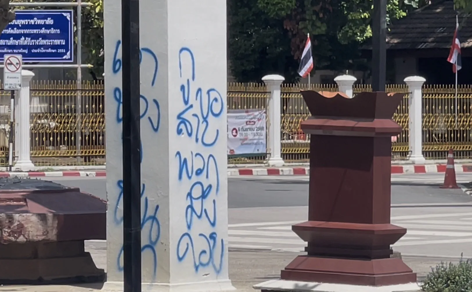 วันที่ 21 ก.ย. 68 ผู้สื่อข่าวได้รับการร้องเรียนจากชาวบ้านและพลเมืองดีในบริเวณพื้นที่ลานอนุสาวรีย์สามกษัตริย์ อำเภอเมืองเชียงใหม่ จากกรณีที่มีบุคคลนำสีสเปรย์มาพ่นเป็นตัวอักษรลักษณะต่อว่าและด่าด้วยคำพูดหยาบคายพาดพิงถึงเจ้าหน้าทีเทศกิจเทศบาลนครเชียงใหม่ ตามบริเวณพื้นลานอนุสาวรีย์และม้านั่งรวมถึงเสาที่อยู่ในบริเวณจุดดังกล่าว จนทำให้เกิดความสกปรกและสร้างความเดือดร้อนรำคาญให้กับประชาชนชาวบ้านตรงจุดนี้ อีกทั้งยังส่งผลต่อภาพลักษณ์การท่องเที่ยวของจังหวัดเชียงใหม่เนื่องจากจุดดังกล่าวเป็นจุดที่มีนักท่องเที่ยวต่างชาติแวะเวียนเข้ามาท่องเที่ยวเป็นจำนวนมาก
