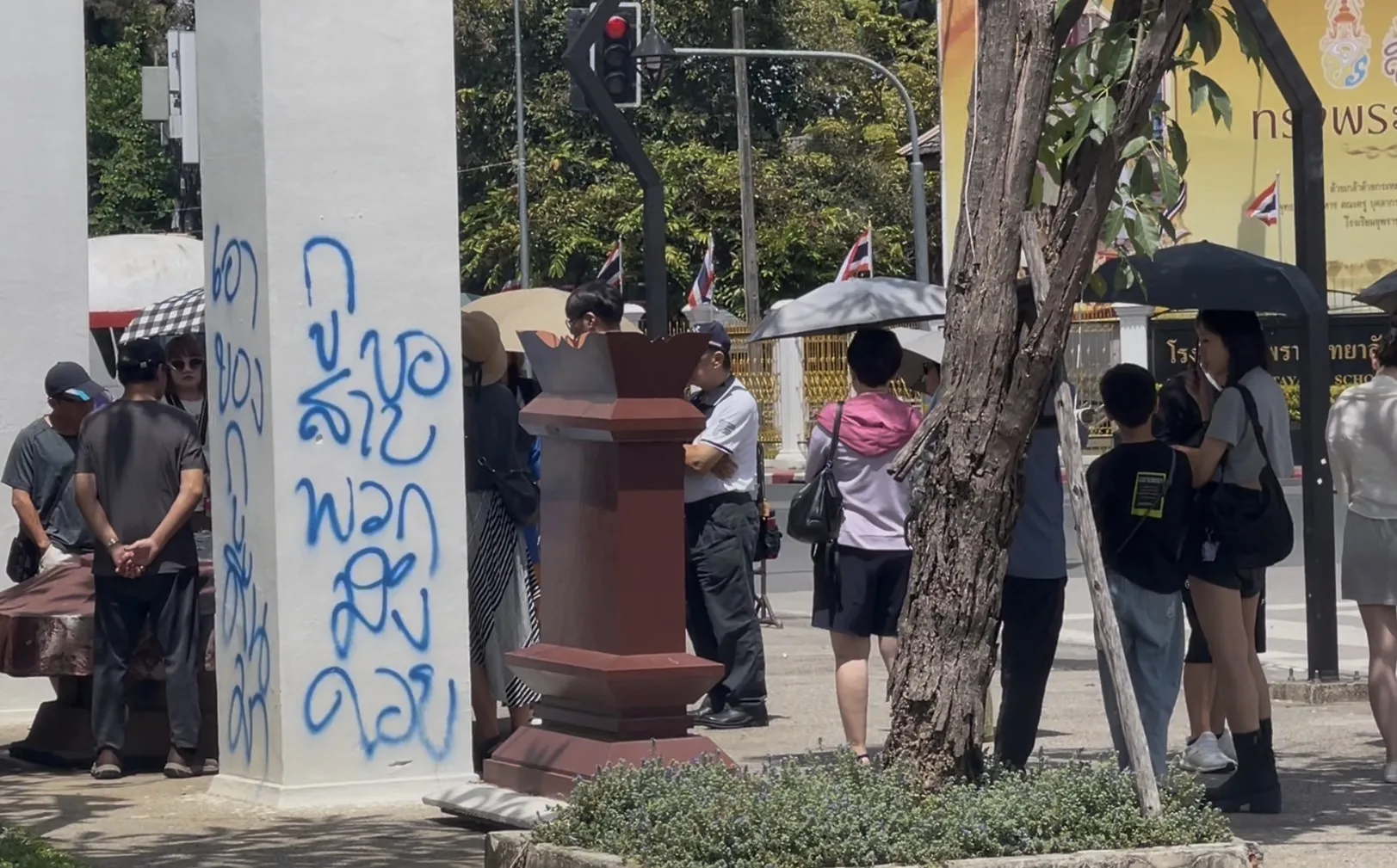 จากการสอบถามทางด้านชาวบ้านในละแวกดังกล่าวเบื้องต้น บอกว่า ตัวหนังสือและตัวอักษรที่ถูกพ่นบริเวณจุดนี้เพิ่งปรากฏได้ไม่นานและพบเห็นวันแรกเมื่อวานนี้ (20 ก.ย.68) โดยชาวบ้านบอกว่า การกระทำดังกล่าวเป็นการกระทำที่ไม่เหมาะสมเพราะเป็นการสร้างความเดือดร้อนให้กับชาวบ้านและผู้พบเห็นอีกทั้งยังส่งผลกระทบต่อภาพลักษณ์การท่องเที่ยวเพราะมันทำให้พื้นที่ดังกล่าวเกิดความสกปรกและไม่สวยงาม เนื่องจากจุดนี้เป็นจุดที่มีประชาชนและนักท่องเที่ยวแวะเวียนเดินผ่านเข้าไปถ่ายภาพกันเป็นจำนวนมาก จึงไม่อยากให้กลุ่มวัยรุ่นหรือคนที่มาก่อเหตุกระทำการในลักษณะเช่นนี้ และควรหาทางออกที่ดีกว่านี้แทนการสร้างความเดือดร้อนะป็นภาพรวม