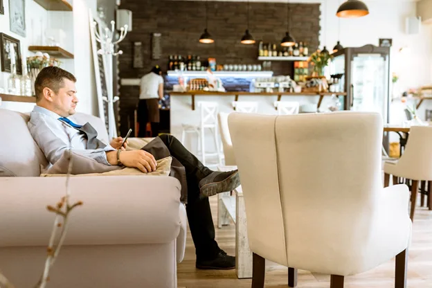 นักธุรกิจสามารถใช้เวลารอไฟลต์เพื่อตรวจงานหรือประชุมออนไลน์ได้อย่างสะดวก เพราะมี Wi-Fi ความเร็วสูงและโต๊ะทำงานที่เป็นส่วนตัว