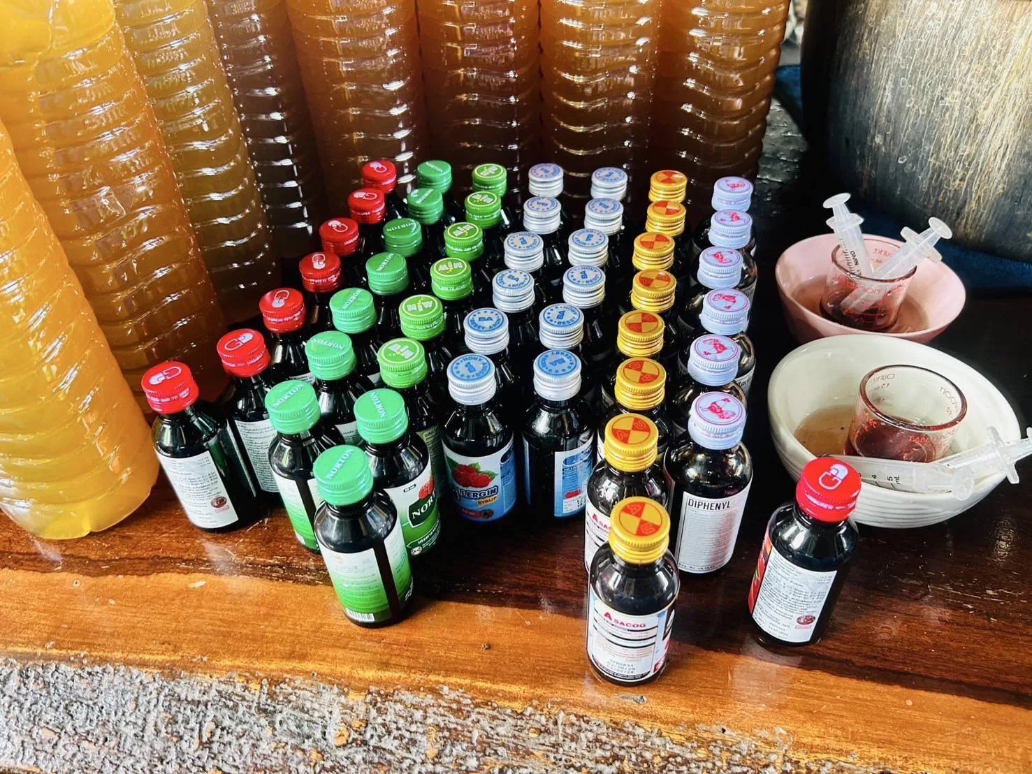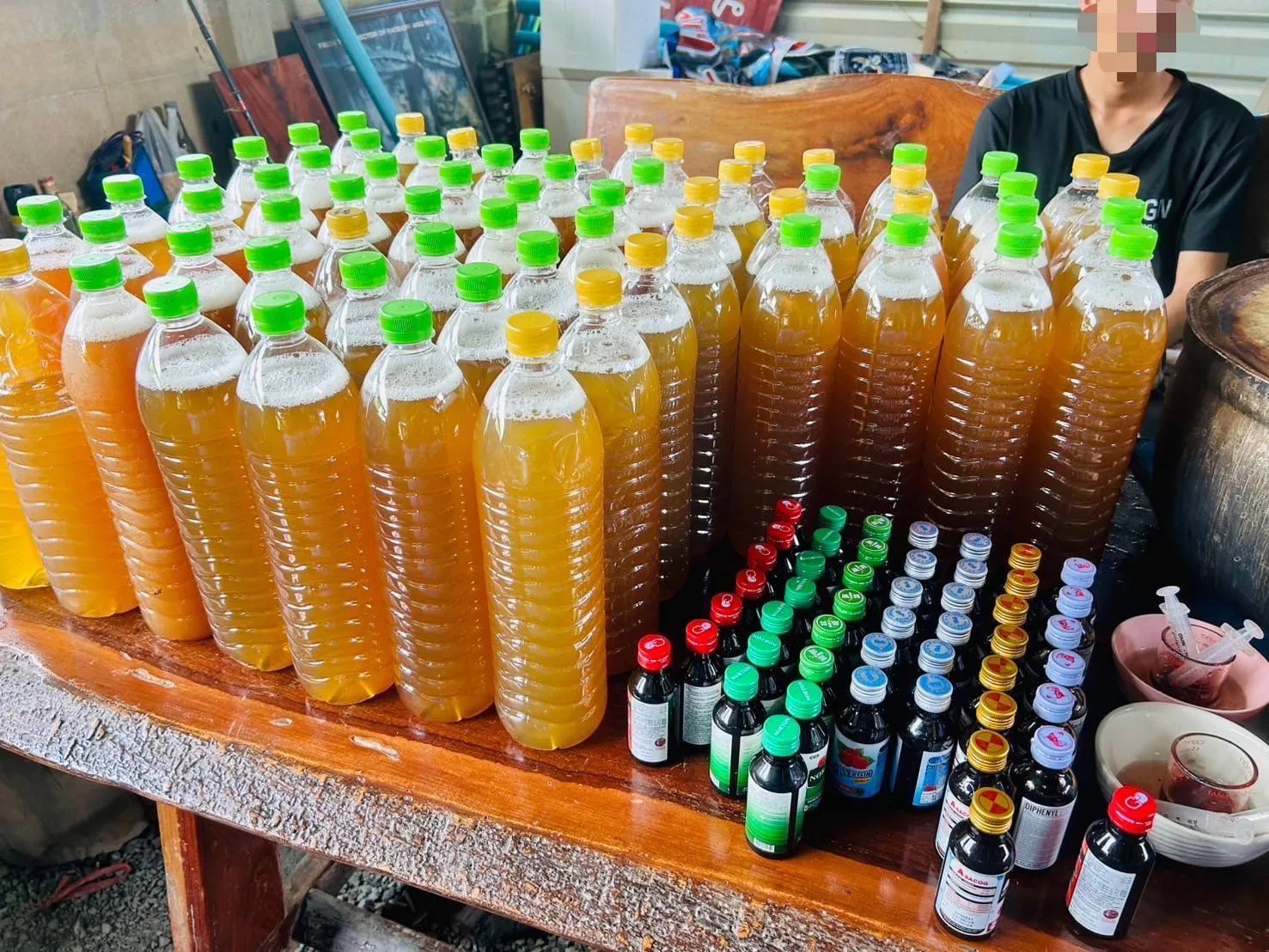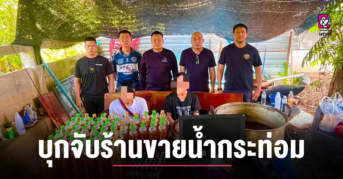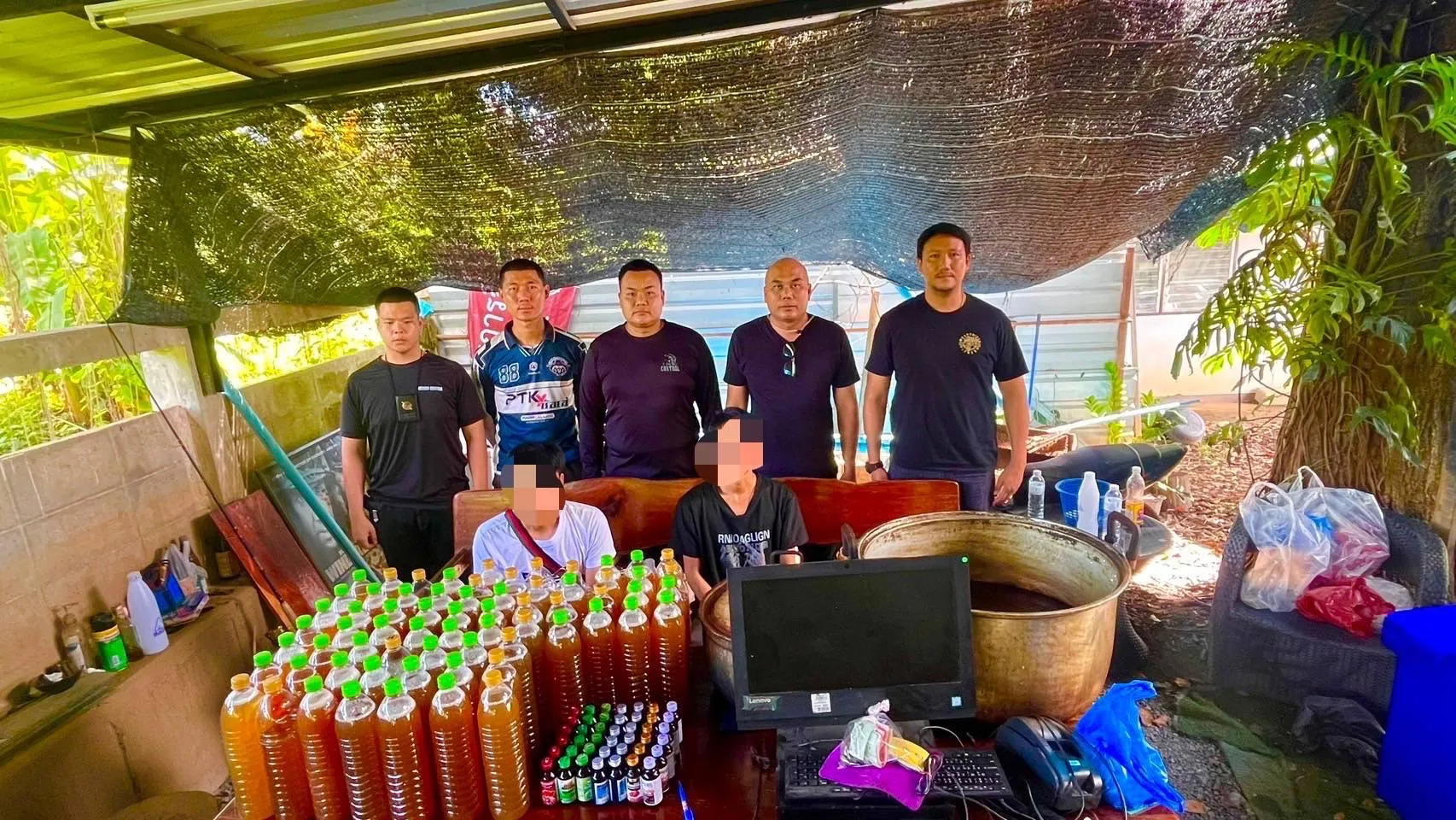 พร้อมด้วยของกลาง น้ำกระท่อมจำนวน 66 ขวด ปริมาตร 1.5 ลิตร หม้อต้มจำนวน 2 ใบ ยาแก้ไอ จำนวน 42 ขวด