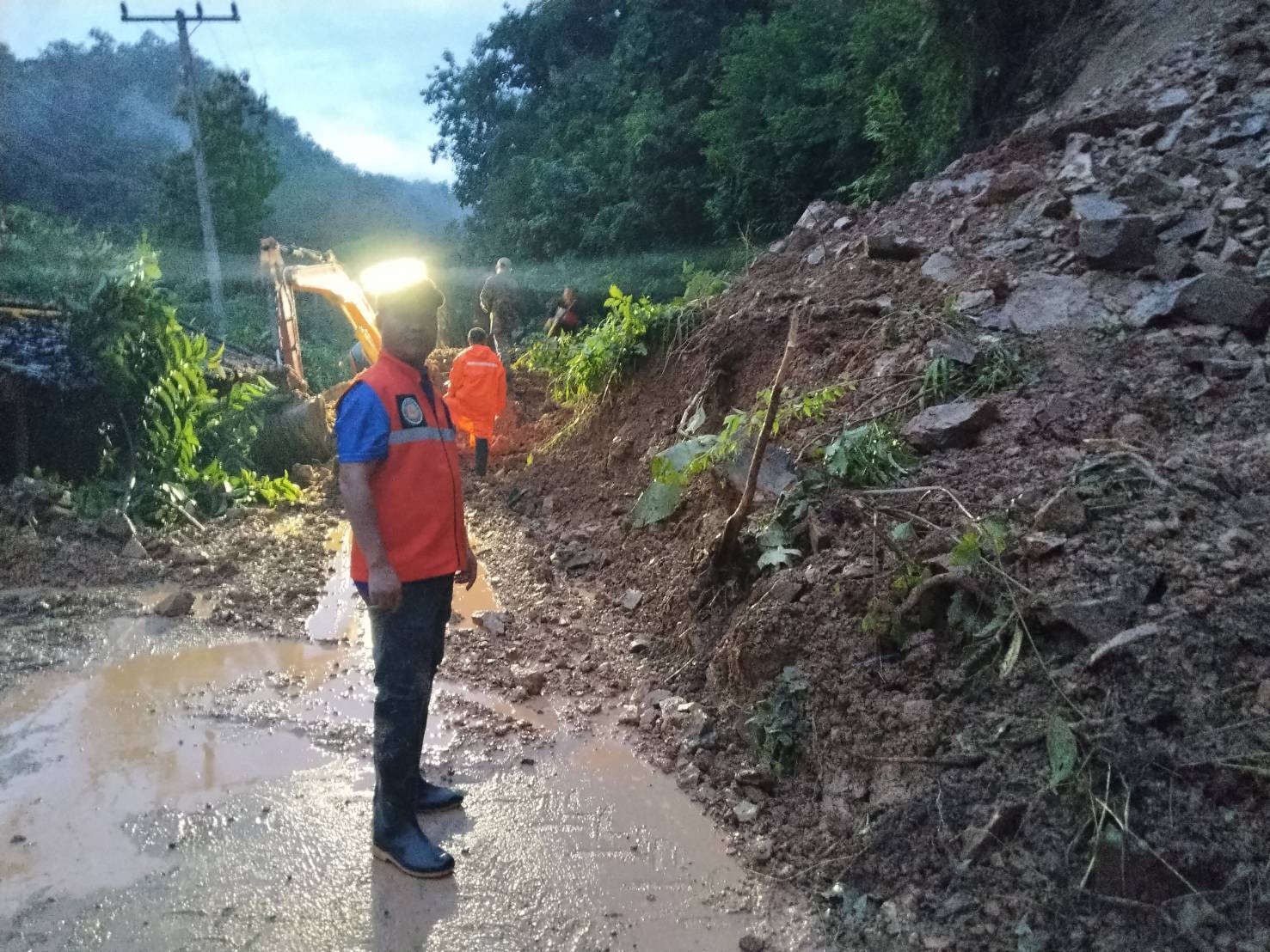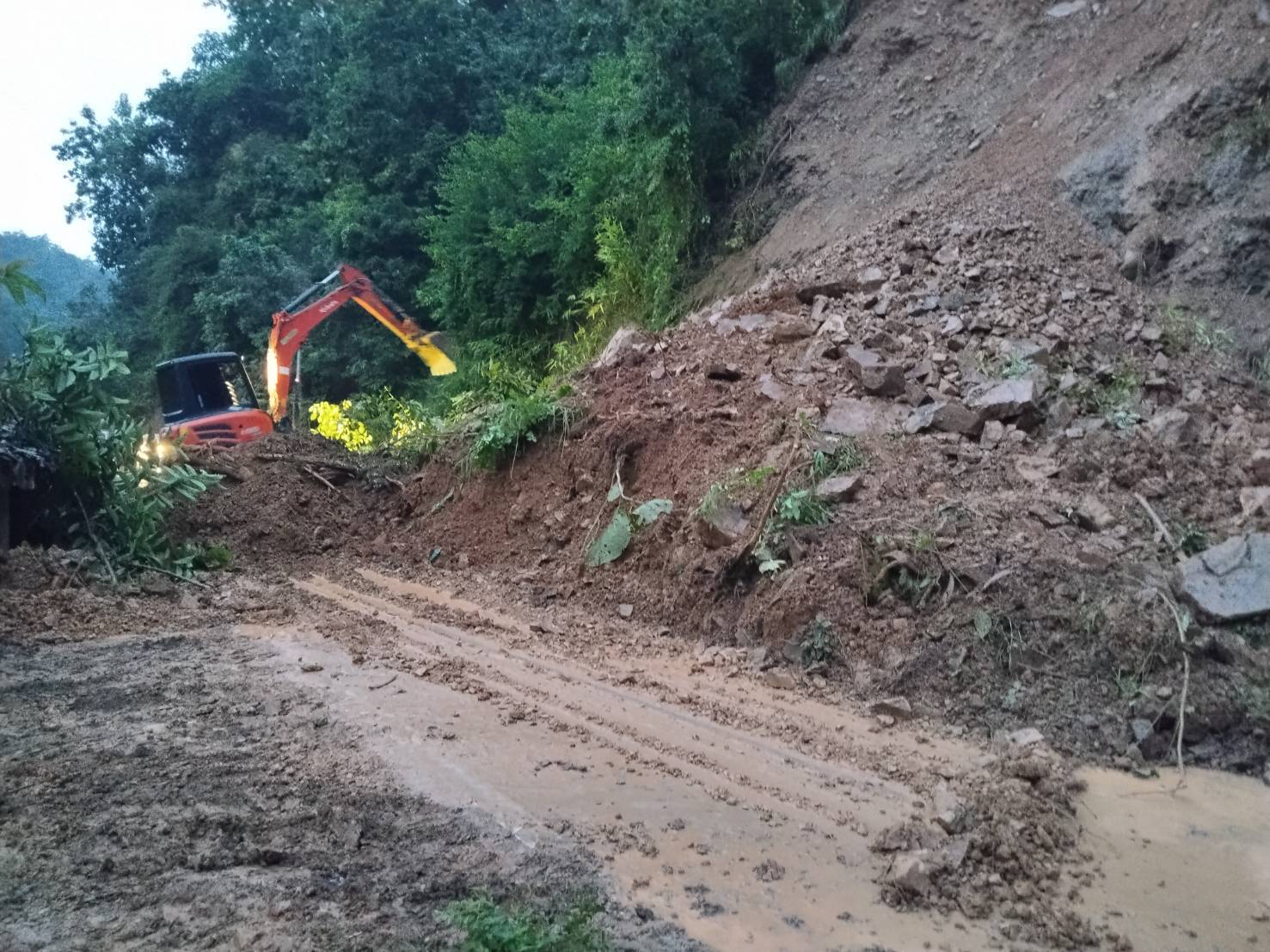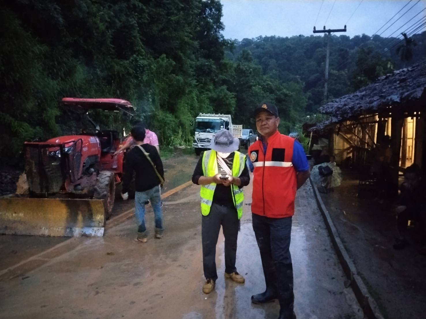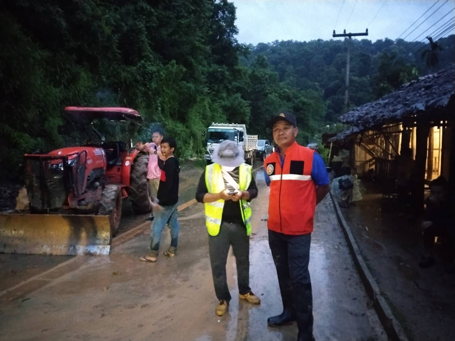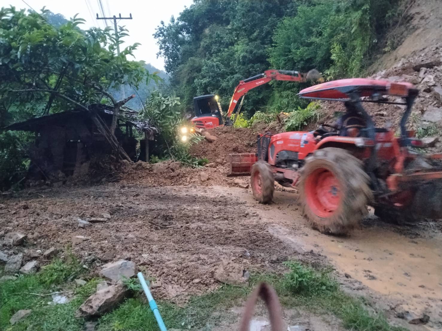 อบต.แม่สามแลบ และ หมวดทางหลวงแม่สะเรียง เร่งระดมกำลังคนและเครื่องจักรกลเปิดเส้นทางหลวง 1194 แม่สะเรียง – แม่สามแลบ หลังดินภูเขาสไลด์ลงปิดทับเส้นทาง