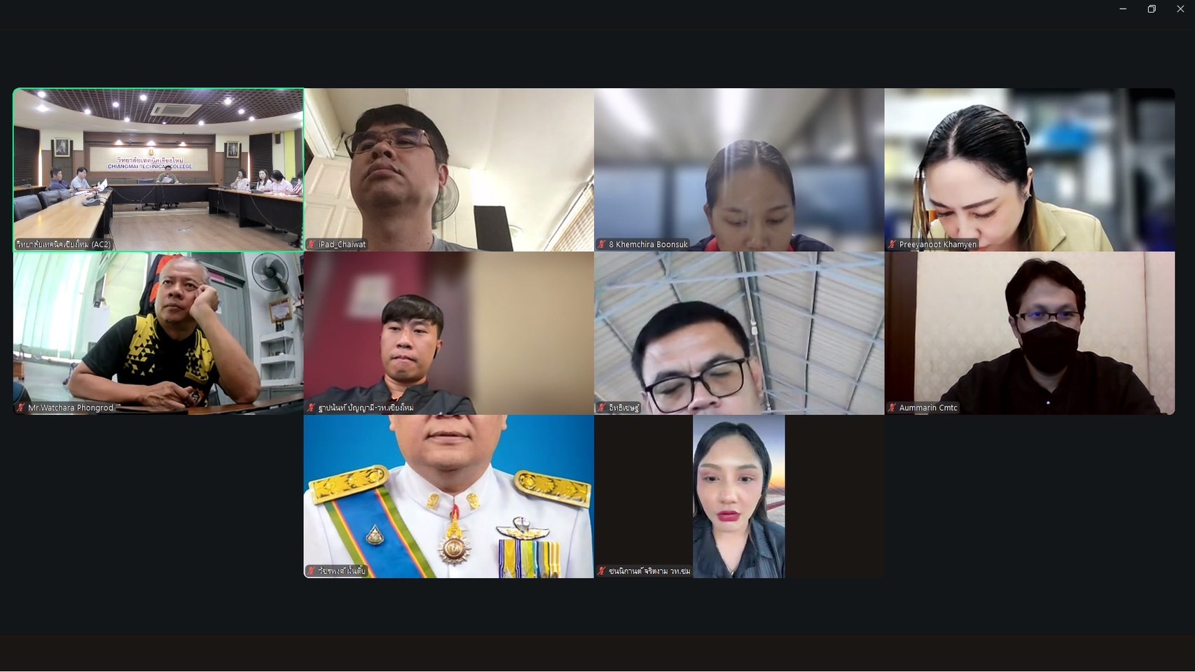 วันพฤหัสบดี ที่ 25 กันยายน พ.ศ.2568 ดร.วัชรพงศ์ ฝั้นติ๊บ ผู้อำนวยการวิทยาลัยเทคนิคเชียงใหม่ ปฏิบัติหน้าที่ผู้อำนวยการสำนักงานอาชีวศึกษาจังหวัดเชียงใหม่ และรักษาการในตำแหน่งที่ปรึกษาด้านนโยบายและแผน สำนักงานคณะกรรมการการอาชีวศึกษา พร้อมด้วยคณะผู้บริหาร และหัวหน้าแผนกวิชา หัวหน้างาน วิทยาลัยเทคนิคเชียงใหม่ เข้าร่วมการประชุมคณะกรรมการจัดทำระบบควบคุมภายในของสถานศึกษา ปีงบประมาณ 2568 เพื่อจัดทำการประเมินความเสี่ยงของแต่ละหน่วยงาน เพื่อรายงานผลการควบคุมภายในภาพรวมของสถานศึกษา(ตามแบบ ปค.4และแบบ ปค.5) ประจำปีงบประมาณ พ.ศ.2568 อีกทั้งเพื่อให้คณะกรรมการฯรับรองรายงานก่อนนำเสนอผู้บริหารสถานศึกษา และเพื่อให้การดำเนินงานเป็นไปอย่างเรียบร้อย มีประสิทธิภาพ บรรลุวัตถุประสงค์ของสถานศึกษาต่อไป ผ่านระบบออนไลน์ Zoom Meeting