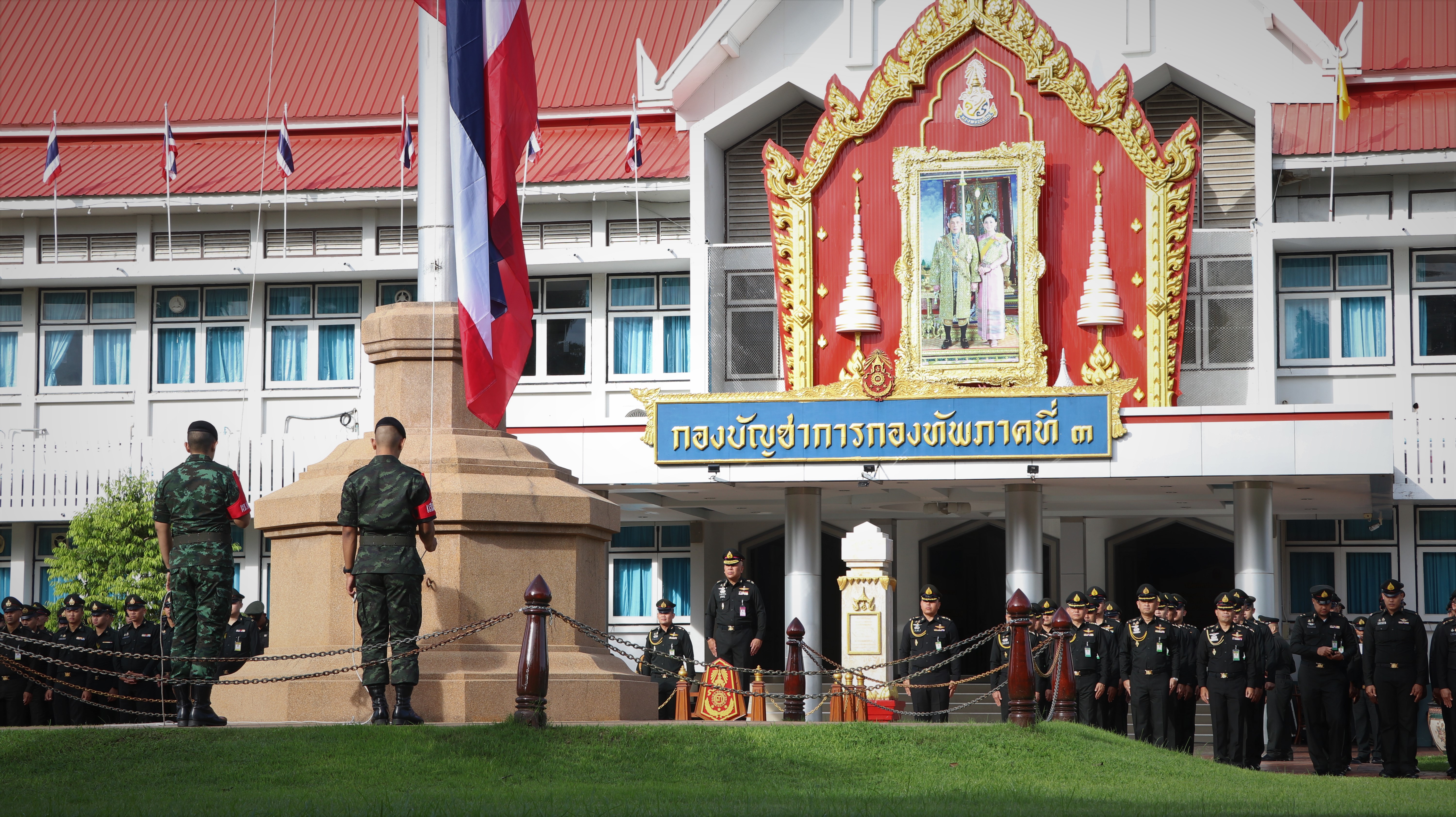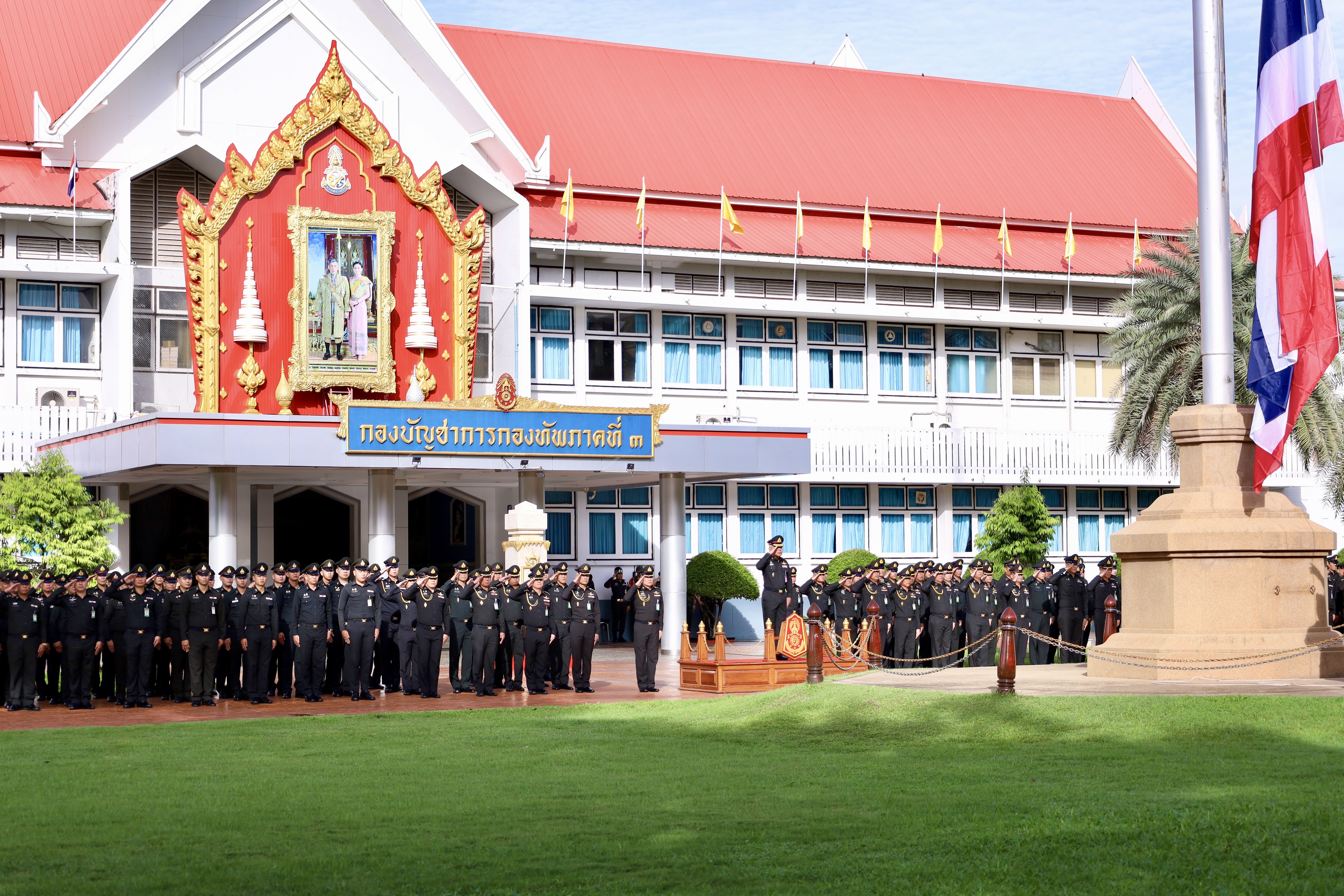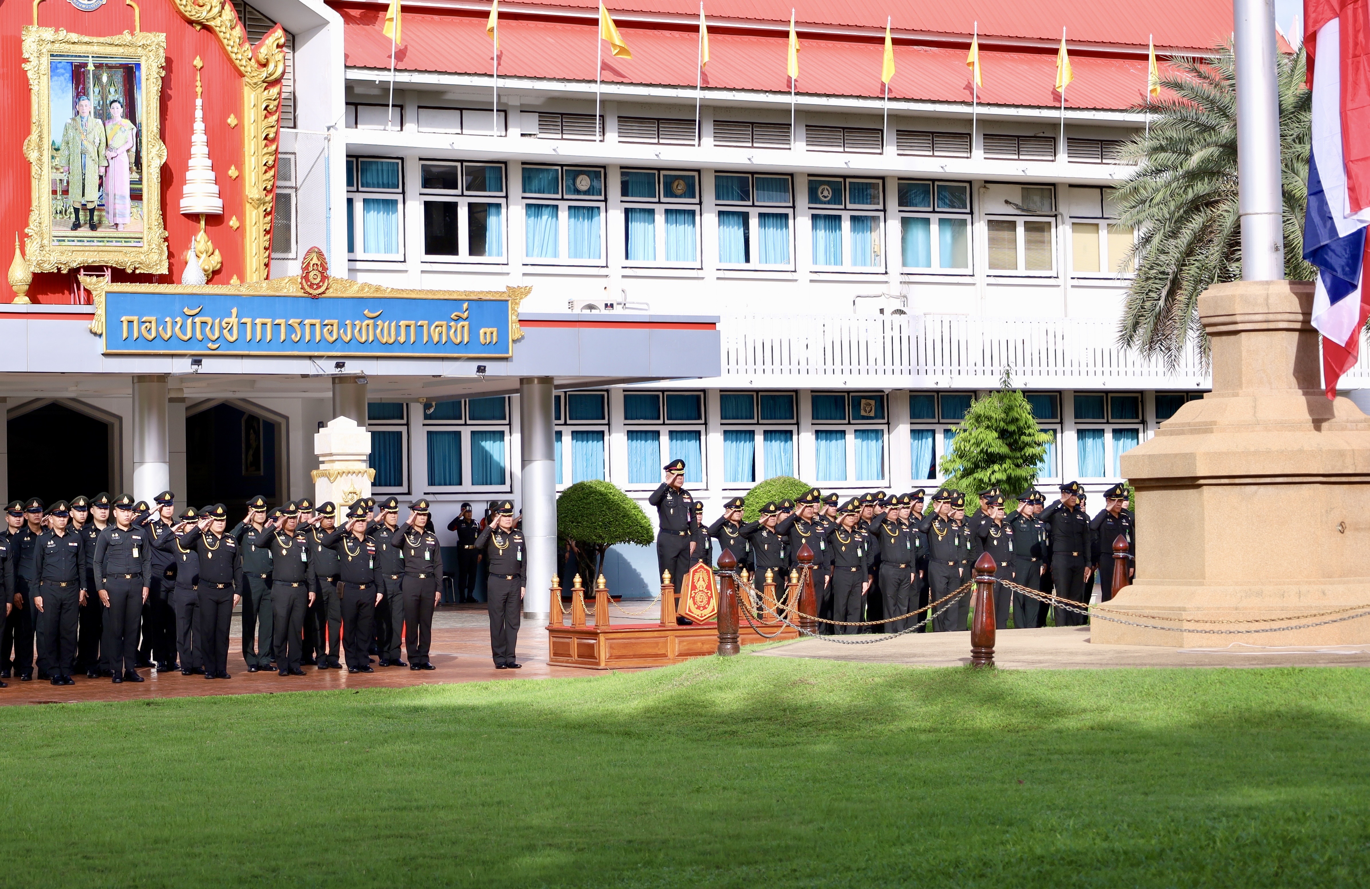 เมื่อวันที่ 26 ก.ย.68 เวลา 0800 พล.ท.กิตติพงษ์ แจ่มสุวรรณ มทภ.3 มอบหมายให้ พล.ต.ณรงค์ฤทธิ์ ปาณิกบุตร รอง มทภ.3 เป็นผู้แทน นำกำลังพล ร้องเพลงชาติ และรับทราบประวัติความเป็นมาของธงชาติไทย