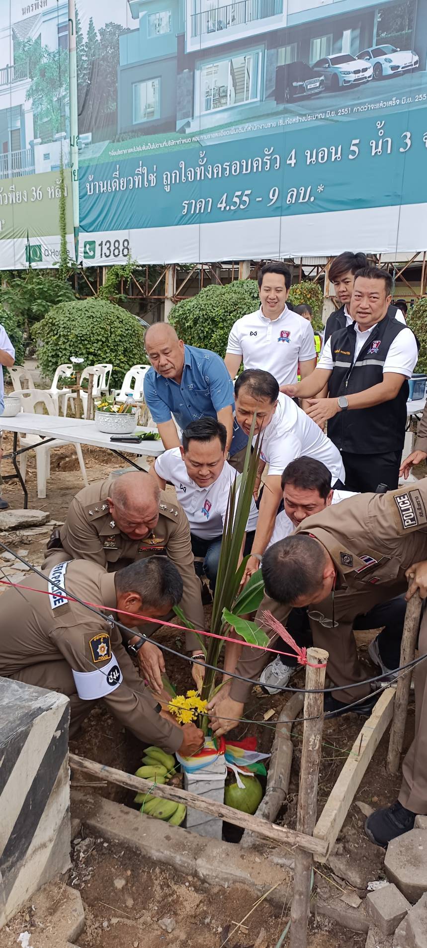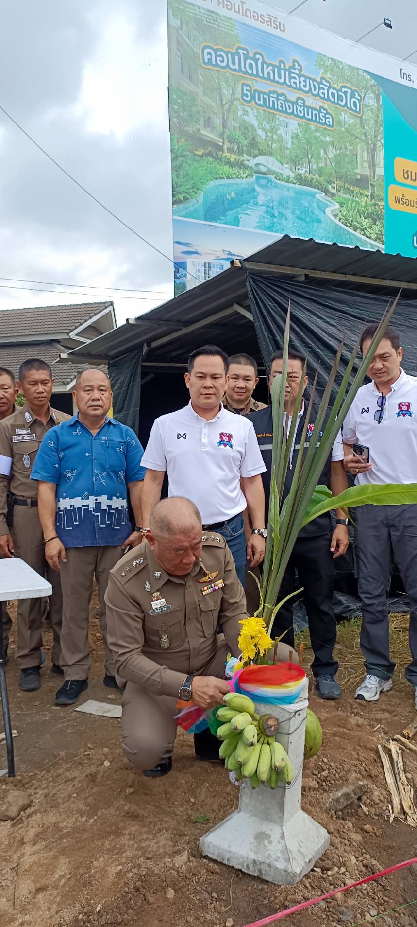 ลงเสาเอกวันนี้ก็มีนายวิทยา พงษ์ศิริ ประธานกกต.ตร.สภ.สันทรายพร้อมด้วยคณะกรรมการ พ.ต.อ.สัมพันธ์ ศิริมา ผกก.สภ.สันทรายพร้อมนายตำรวจงานจราจร สภ.สันทราย มาร่วมทำพิธีลงเวาเอกเป็นการเอากฤษณ์ เอาชัยในการสร้างป้อมตู้จราจร เพื่อทดแทนตู้เก่าที่ได้ชำรุดลงไป คาดว่าจะเสร็จภายในต้นเดือนตุลาคมนี้