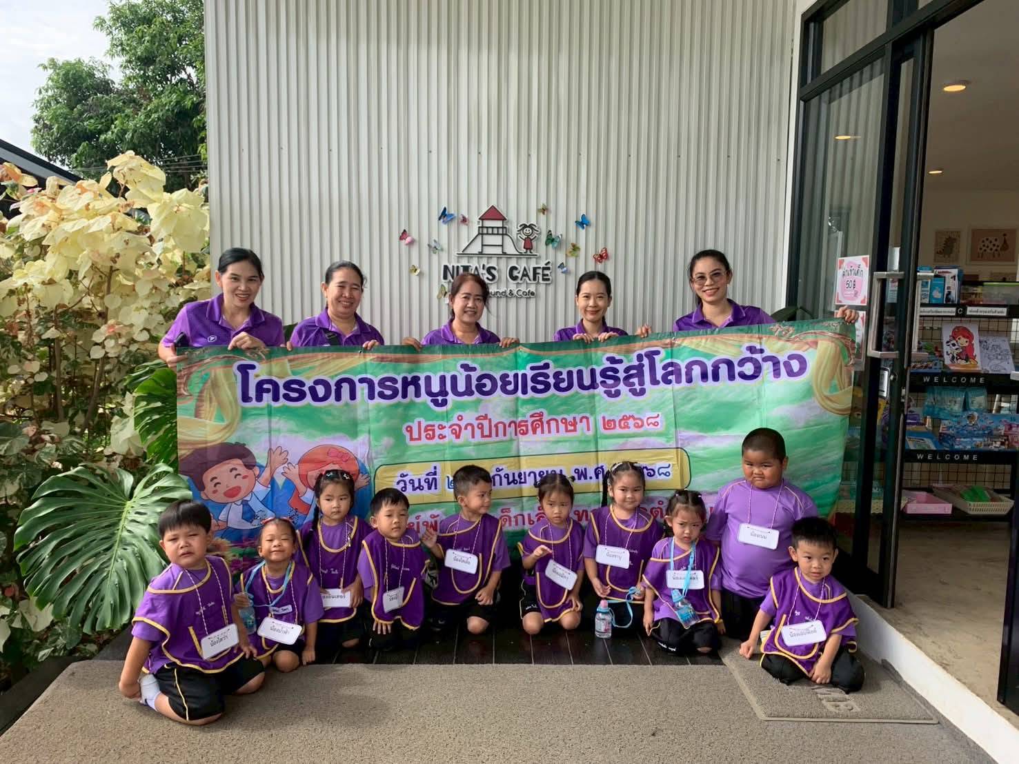 เมื่อวันที่ 25 กันยายน 2568 นางสร้อยทอง หล้าคำมี นายกเทศมนตรีตำบลแม่คำมี อ.เมือง จ.แพร่มอบหมายให้กองการศึกษาเทศบาลตำบลแม่คำมี นำโดย นางณิชนันทน์ ศรีใจ ผู้อำนวยการกองการศึกษาเทศบาลตำบลแม่คำมี พร้อมด้วยเจ้าหน้าที่กองการศึกษา ครู และ นักเรียนจากศูนย์พัฒนาเด็กเล็กเทศบาลตำบลแม่คำมี และ ศูนย์พัฒนาเด็กเล็กบ้านศรีภูมิ เข้าร่วมโครงการหนูน้อยเรียนรู้สู่โลกกว้าง ประจำปี งบประมาณ 2568 ณ ร้านNita’s Café Playground&Kids ตำบลแม่คำมี อำเภอเมืองแพร่ จังหวัดแพร่