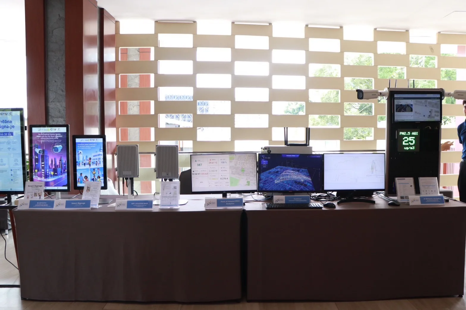 ผศ.ดร.ภราดร สุรีย์พงษ์ มหาวิทยาลัยเชียงใหม่ ได้กล่าวถึงความสำเร็จในการดำเนินการ โดยใน ปัจจุบันได้ติดตั้ง WiFi และ Bluetooth Sensor จำนวน 10 จุด บนถนนนิมมานฯ เพื่อเก็บข้อมูลความหนาแน่นของนักท่องเที่ยว รวมถึงร่วมมือกับเทศบาลนครเชียงใหม่ในการนำร่องติดตั้ง หน่วยประมวลผลกล้อง CCTV จำนวน 5 แห่ง เพื่อเพิ่มประสิทธิภาพด้านความปลอดภัย ขณะเดียวกันยังได้เริ่มต้น ทดสอบระบบ AI สำหรับการให้คำแนะนำร้านค้า ผ่าน LINE Official Account เพื่อต่อยอดการใช้ประโยชน์จากข้อมูลสู่ภาคเศรษฐกิจจริง