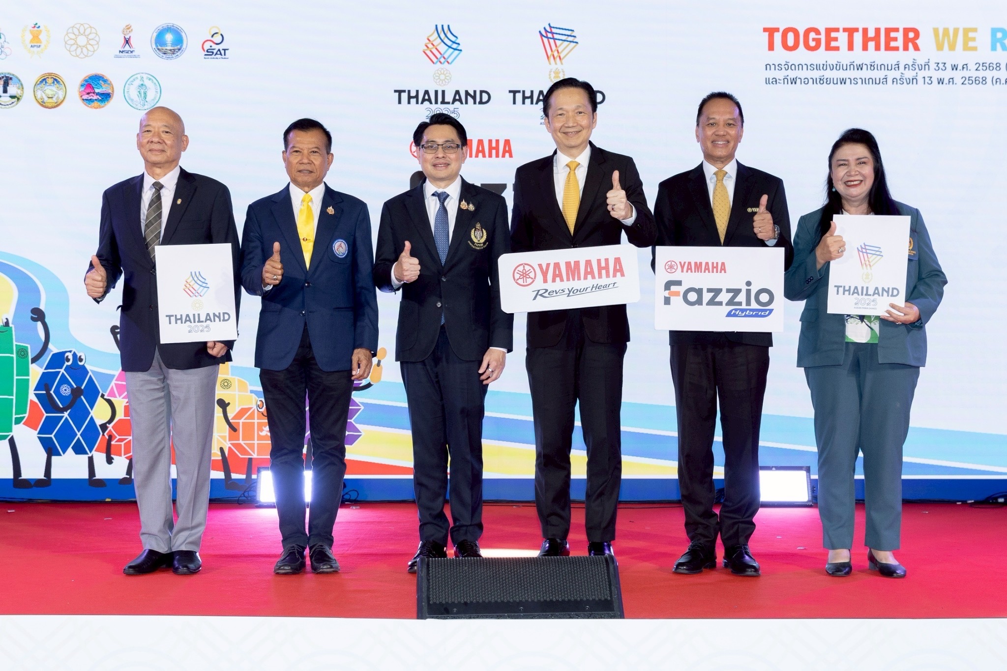 นายพงศธร เอื้อมงคลชัย ประธานกรรมการบริหาร นายภาณุพล กิตติคำรณ ผู้จัดการใหญ่ด้านการค้า นายอุกฤษณ์ ภาควิวรรธ รองผู้จัดการใหญ่ด้านวางแผนการค้า และการตลาด บริษัท ไทยยามาฮ่ามอเตอร์ จำกัด ถ่ายภาพร่วมกับ ดร.ก้องศักด ยอดมณี ผู้ว่าการการกีฬาแห่งประเทศไทย ในงานแถลงข่าว เปิดตัวผู้สนับสนุนหลักอย่างเป็นทางการ กีฬาซีเกมส์ ครั้งที่ 33 และอาเซียนพาราเกมส์ ครั้งที่ 13 โดยมี ยามาฮ่า ฟาซซิโอ้ ไฮบริด สนุกไม่ซ้ำใคร สไตล์…ฟาซซิโอ้ ร่วมเป็นผู้สนับสนุนการแข่งขันกีฬา ซีเกมส์ ครั้งที่ 33 และอาเซียนพาราเกมส์ ครั้งที่ 13 อย่างเป็นทางการ ที่ประเทศไทยเป็นเจ้าภาพ โดยจะจัดการแข่งขึ้นใน 3 จังหวัดได้แก่ กรุงเทพมหานคร จ.ชลบุรี จ.สงขลา และ จ.นครราชสีมา