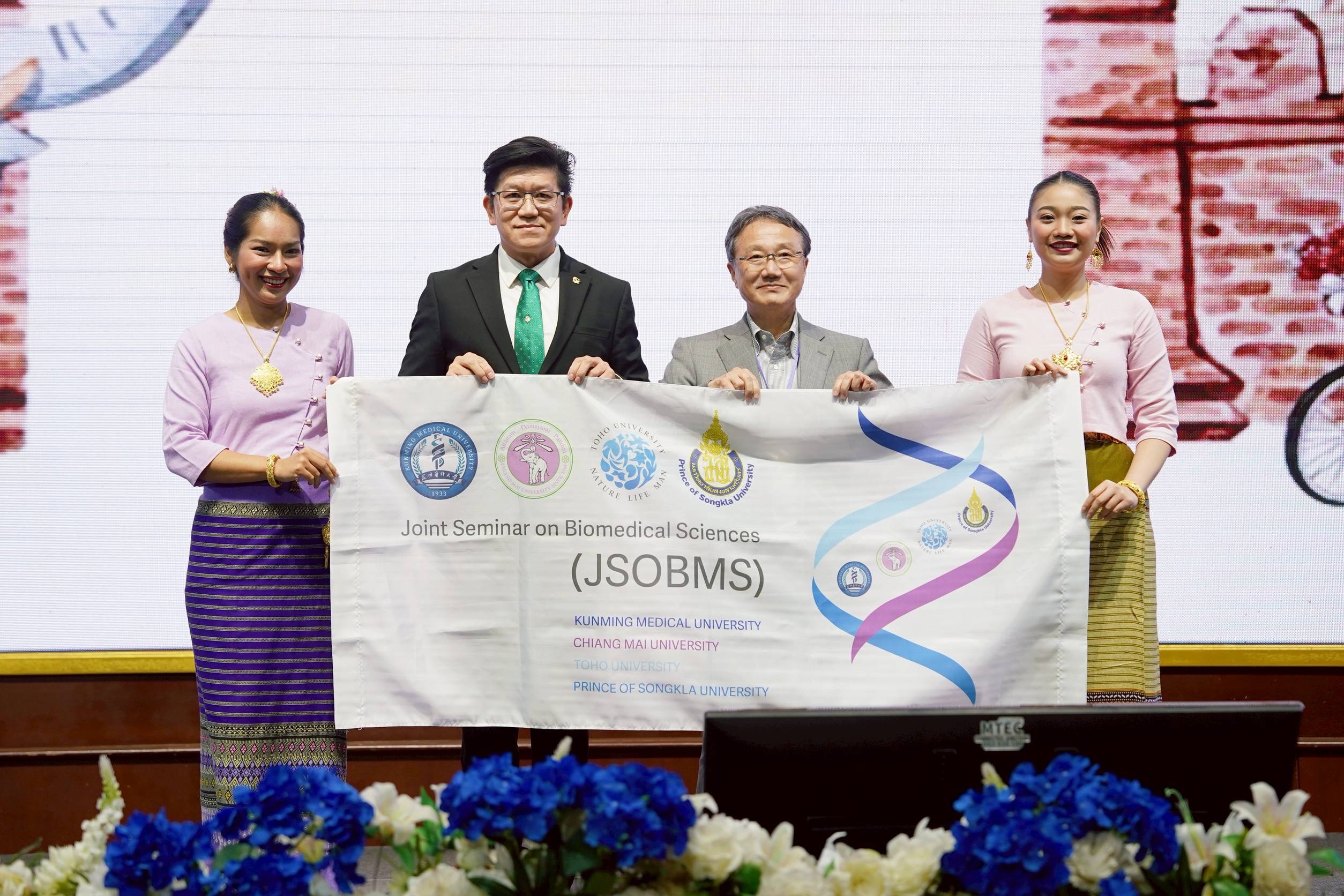 พร้อมกันนั้นได้ส่งมอบธง การประชุมวิชาการ Joint Seminar on Biomedical Science (JSOBMS) ครั้งที่ 14 ให้แก่ Toho University ซึ่งดำเนินการจัดประชุมฯ ครั้งต่อไปที่ประเทศญี่ปุ่นในปี 2027 ต่อไป