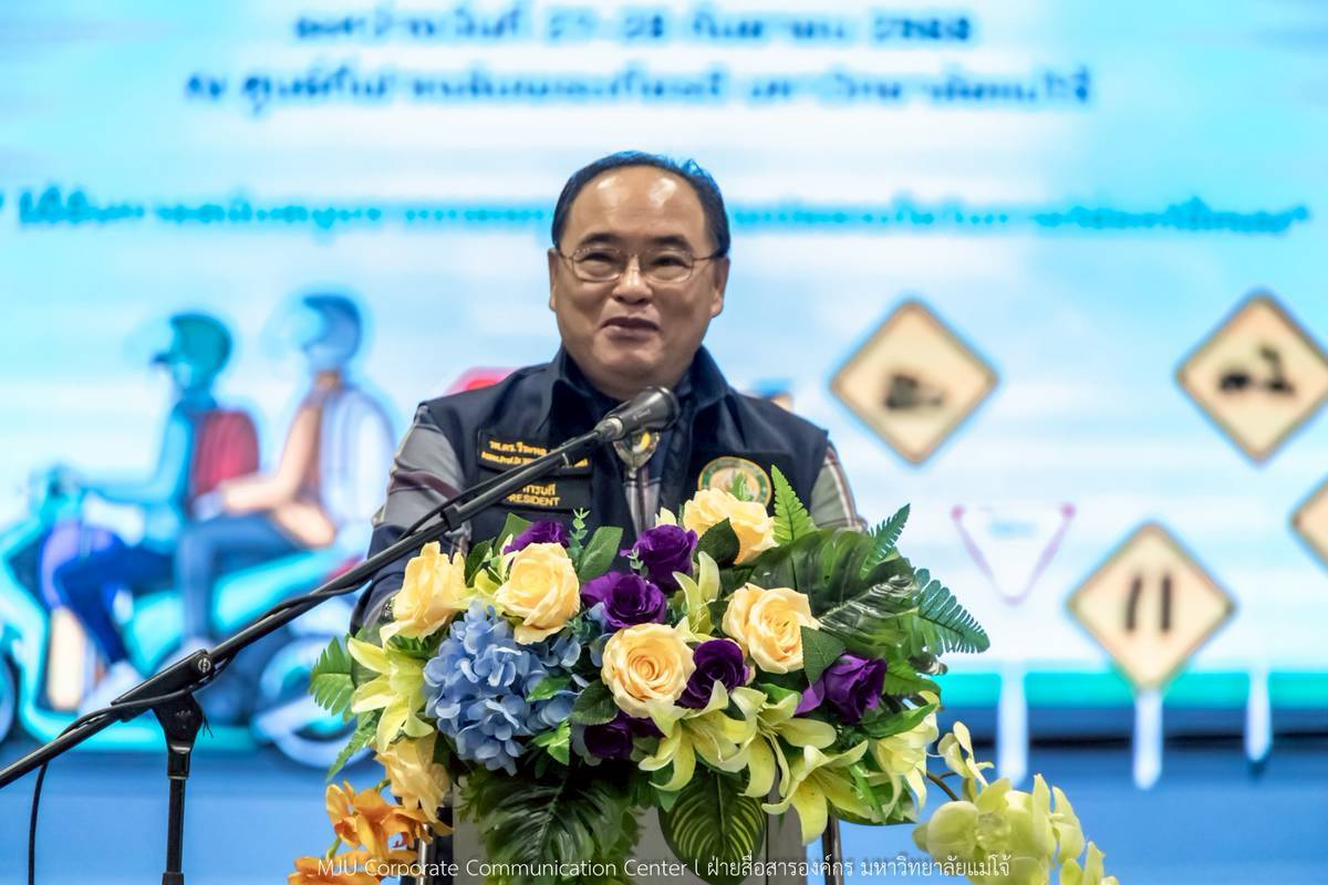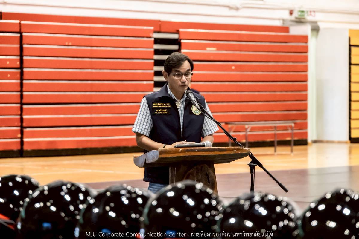 วันที่ 27-28 กันยายน 2568 กองพัฒนานักศึกษา และกองกายภาพและสิ่งแวดล้อม มหาวิทยาลัยแม่โจ้ ร่วมกับ สำนักงานขนส่งจังหวัดเชียงใหม่ จัดโครงการเสริมพลังมาตรการองค์กรเพื่อปลูกฝังวินัยการขับขี่รถจักรยานยนต์ปลอดภัยในมหาวิทยาลัยแม่โจ้ โดยได้รับเกียรติจาก รองศาสตราจารย์ ดร.วีระพล ทองมา อธิการบดีมหาวิทยาลัยแม่โจ้ เป็นประธานเปิดโครงการ และมี ผู้ช่วยศาสตราจารย์ ดร.ประภากร ธาราฉาย รองอธิการบดี กล่าวรายงาน โดยมีนักศึกษาสนใจเข้าร่วมโครงการจำนวน 2 รุ่น ๆ ละ 500 คน ณ ศูนย์กีฬาเฉลิมพระเกียรติ มหาวิทยาลัยแม่โจ้