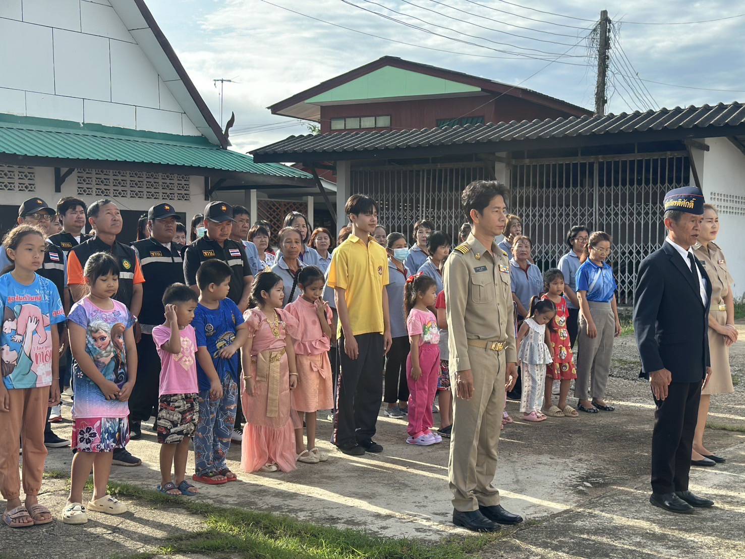 ในเช้าวันเดียวกันนี้ ที่รร.บ้านดอนแท่น(เดิม)เวลา08.00น. นางฉันทนา ศรีเพชร ผู้ใหญ่บ้านหมู่ที่10 ต.ดอนมูลอ.สูงเม่น จ.แพร่ นายพงษ์ดนัย สวนดอก น.ส.กัลยากาวิน ผู้ช่วยผู้ใหญ่บ้าน และข้าราชการ อสม. ประชาชนหมู่ที่10 ร่วมร้องเพลงชาติไทย เชิญธงชาติไทยขึ้นสู่ยอดเสา เนื่องในวันสำคัญของชาติ”วันพระราชทานธงชาติไทย”ซึ่งตรงกับวันที่28กันยายน 2568