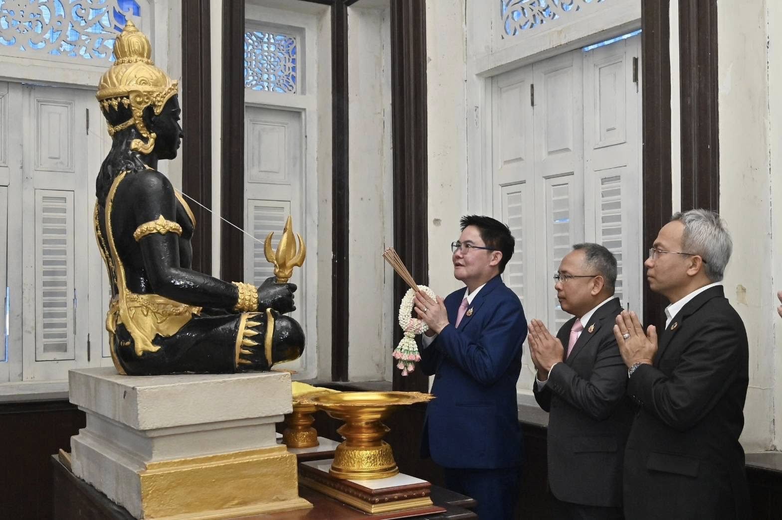 เมื่อเวลา 09.49 น. วันที่ 26 กันยายน 2568 นายอัครา พรหมเผ่า รัฐมนตรีว่าการกระทรวงการพัฒนาสังคมและความมั่นคงของมนุษย์ (รมว.พม.) สักการะสิ่งศักดิ์สิทธิ์ประจำกระทรวงการพัฒนาสังคมและความมั่นคงของมนุษย์ ได้แก่ องค์พระประชาบดี ศาลพระภูมิเจ้าที่ และศาลกรมหลวงสิงหวิกรมเกรียงไกร เพื่อความเป็นสิริมงคล โดยมี นายอนุกูล ปีดแก้ว ปลัดกระทรวงการพัฒนาสังคมและความมั่นคงของมนุษย์ (ปลัด พม.) พร้อมด้วยคณะผู้บริหาร ข้าราชการ และเจ้าหน้าที่กระทรวง พม. ให้การต้อนรับ ณ กระทรวงการพัฒนาสังคมและความมั่นคงของมนุษย์ สะพานขาว กรุงเทพฯ