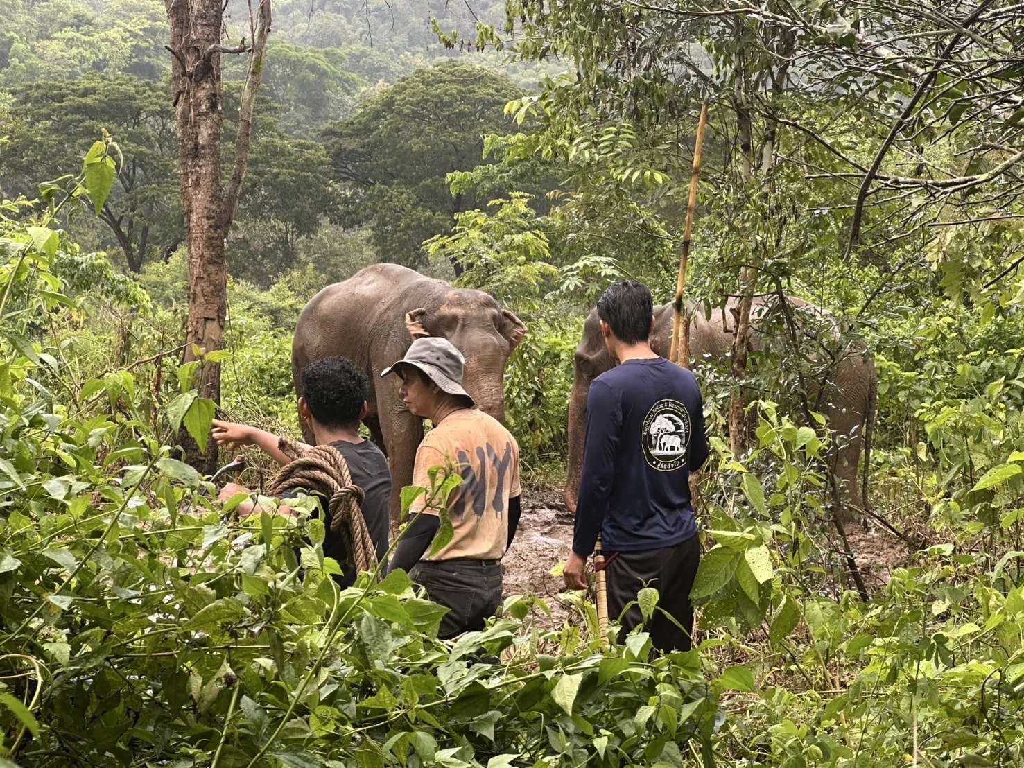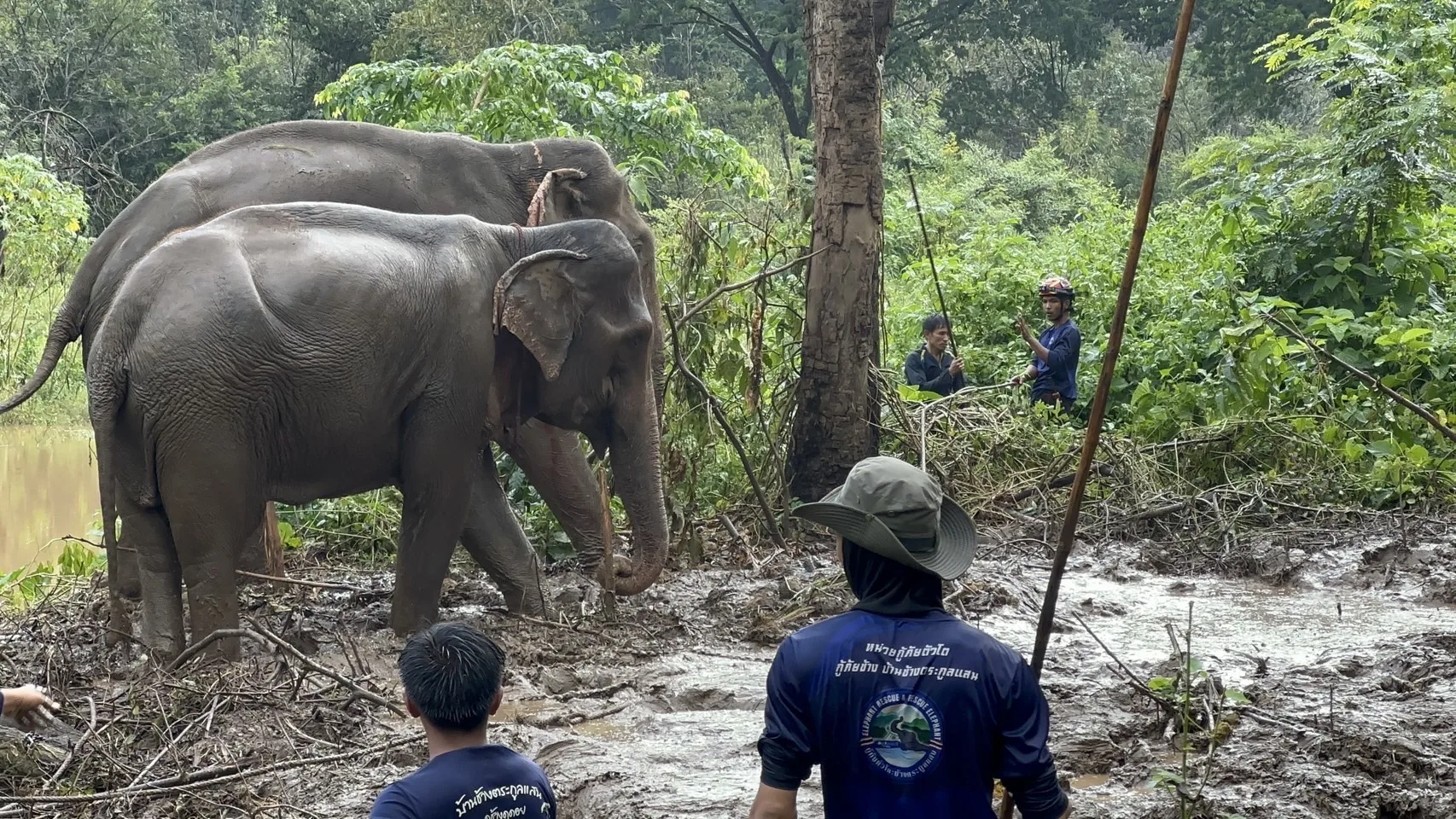 ภายหลังเกิดเหตุ ทีมกู้ภัย “ตัวโต” ภายใต้การสนับสนุนของท่านพระครูอ๊อดวัดเจดีย์หลวงเชียงใหม่ พร้อมด้วยทีมช่วยเหลือมนุษย์และสัตว์ HART และควาญช้างประจำปาง ได้เข้าร่วมปฏิบัติการควบคุมสถานการณ์ โดยใช้วิธีกล่อมช้างและนำช้างเพศเมียเข้าล่อเพื่อให้ช้างสงบลง จากนั้นจึงสามารถเข้าประชิดและผูกเชือกที่บริเวณขา ก่อนเคลื่อนย้ายไปผูกยังจุดที่มั่นคงและปลอดภัยได้สำเร็จ