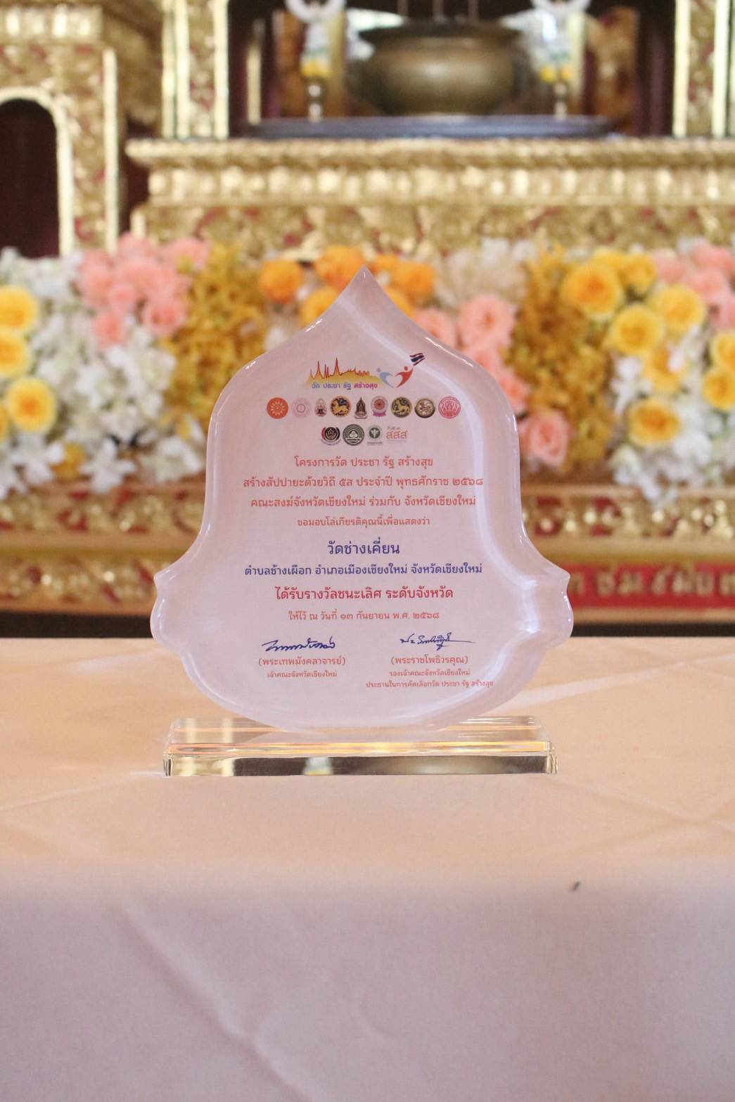 วันเสาร์ที่ 27 กันยายน 2568 พระเทพปริยัติ ที่ปรึกษาเจ้าคณะภาค 7 เจ้าอาวาสวัดเจ็ดยอด พระอารามหลวง เมตตาเป็นประธานมอบโล่เกียรติคุณ โครงการวัด ประชา รัฐ สร้างสุข สร้างสัปปายะด้วยวิถี 5 ส ประจำปี พุทธศักราช 2568 ซึ่งคณะสงฆ์จังหวัดเชียงใหม่ ร่วมกับจังหวัดเชียงใหม่ มอบโล่รางวัลวัดต้นแบบ สร้างมาตรฐานดีเด่น ระดับจังหวัด ประจำปี 2568 แก่วัดช่างเคี่ยน ตำบลช้างเผือก อำเภอเมืองเชียงใหม่ มีพระครูสมุห์จตุทิพย์ ฉนฺทโก เจ้าคณะตำบลช้างเผือก-ป่าตัน เจ้าอาวาสวัดช่างเคี่ยน รับมอบ ณ พระวิหารหลวง วัดสวนดอก พระอารามหลวง ตำบลสุเทพ อำเภอเมืองเชียงใหม่ จังหวัดเชียงใหม่.