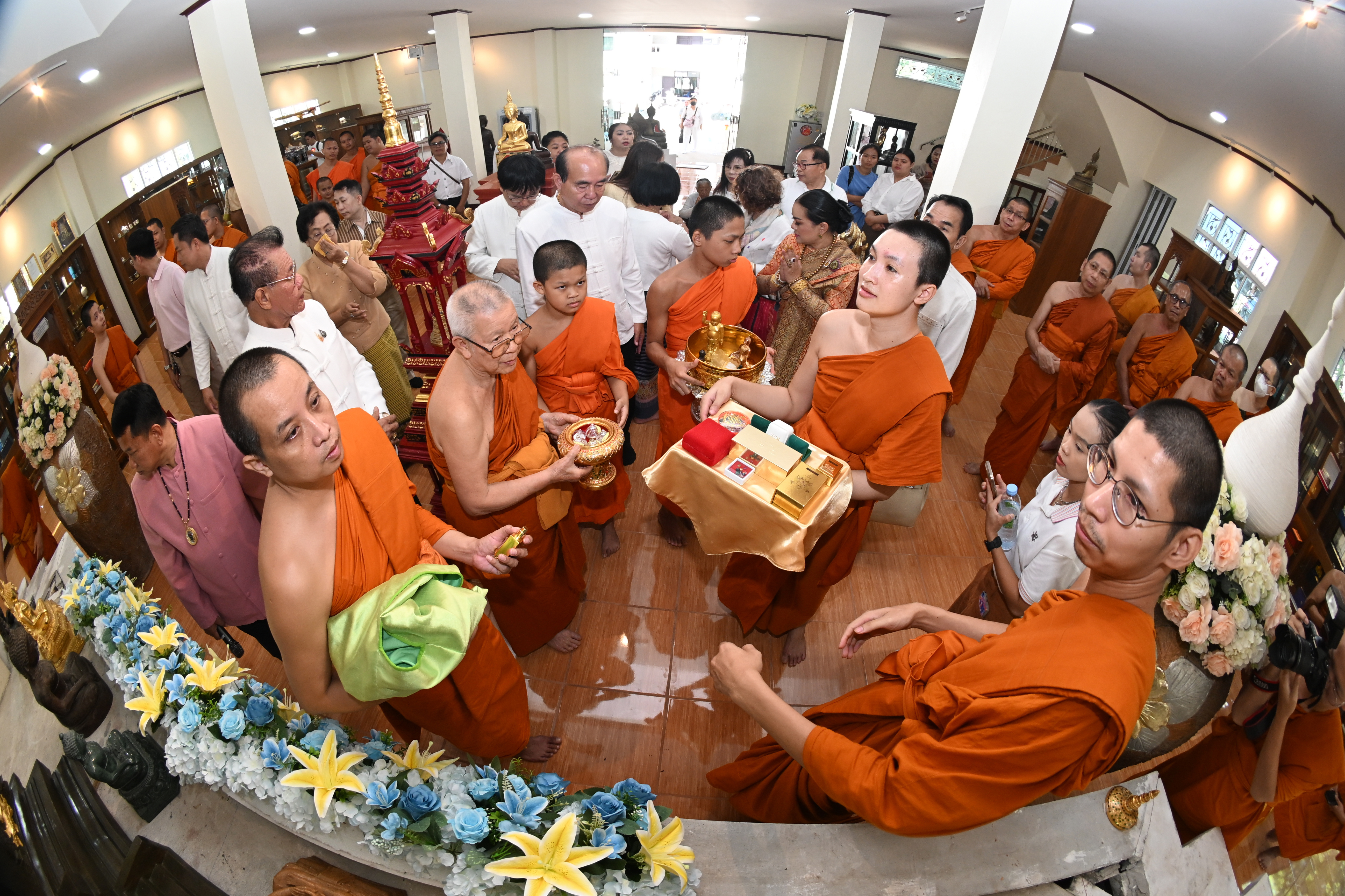 เวลา 08.30 น. พิธีทาบุญทักษิณานุปทานอุทิศบุพพการีชน ทั้ง ฝ่ายบรรพชิต และฆราวาส ณ ศาลาอุดาพันธ์ จันทรวิโรจน์ ประธานสงฆ์ จุดธูป-เทียนบูชาพระรัตนตรัย ไหว้พระสาธุชนสมาทานศีล พระสงฆ์ 10 รูป สวดมาติกา-ถวายพรพระ คณะศรัทธา ประชาชนร่วมตั้งจิตอธิษฐาน แผ่เมตตา เป็นเสร็จพิธี