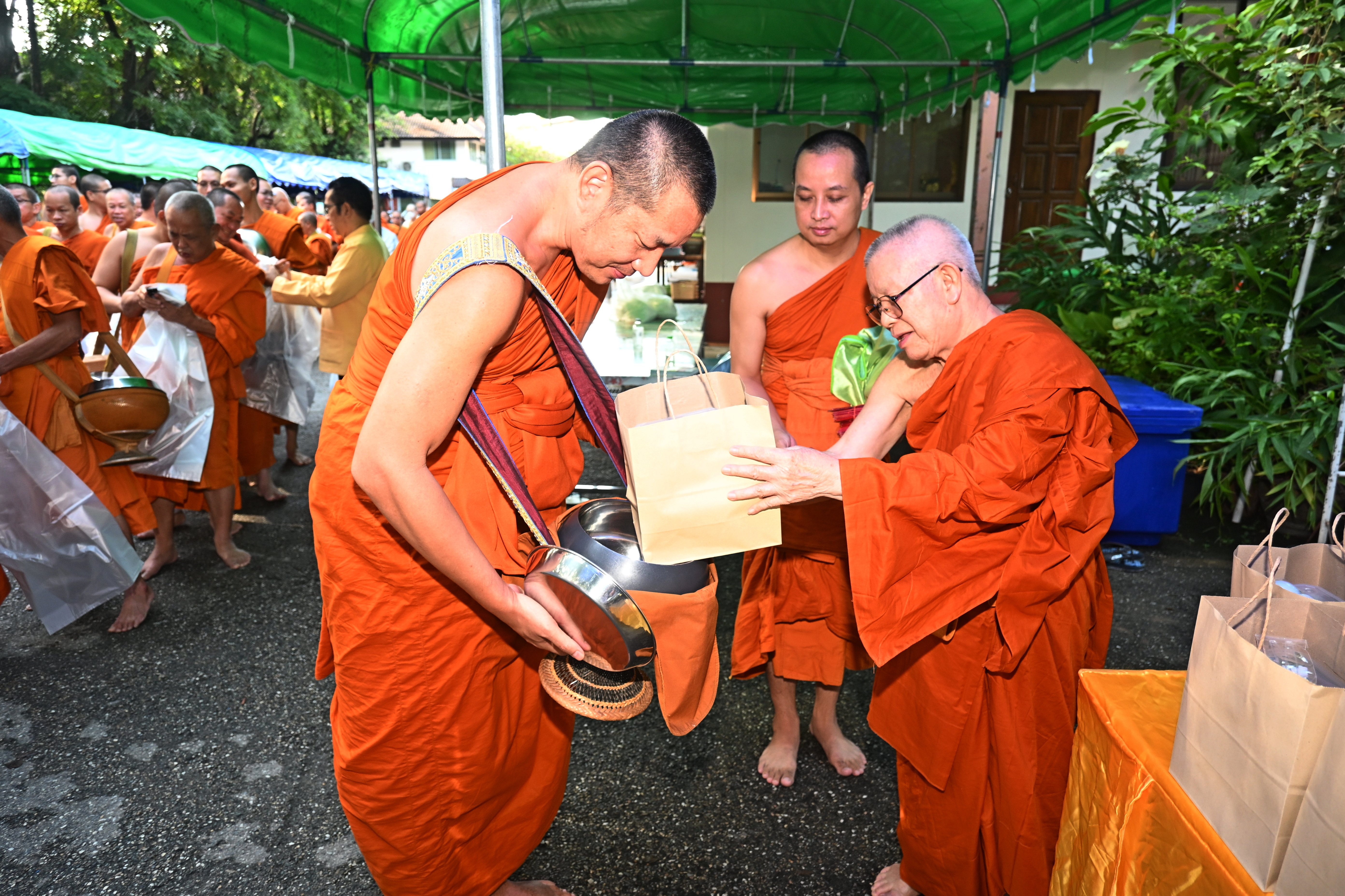 เวลา 06.00 น. ถวายภัตตาหารเช้า ข้าวต้ม แด่พระภิกษุ-สามเณร และศรัทธาสาธุชนผู้มาร่วมทาบุญตักบาตร