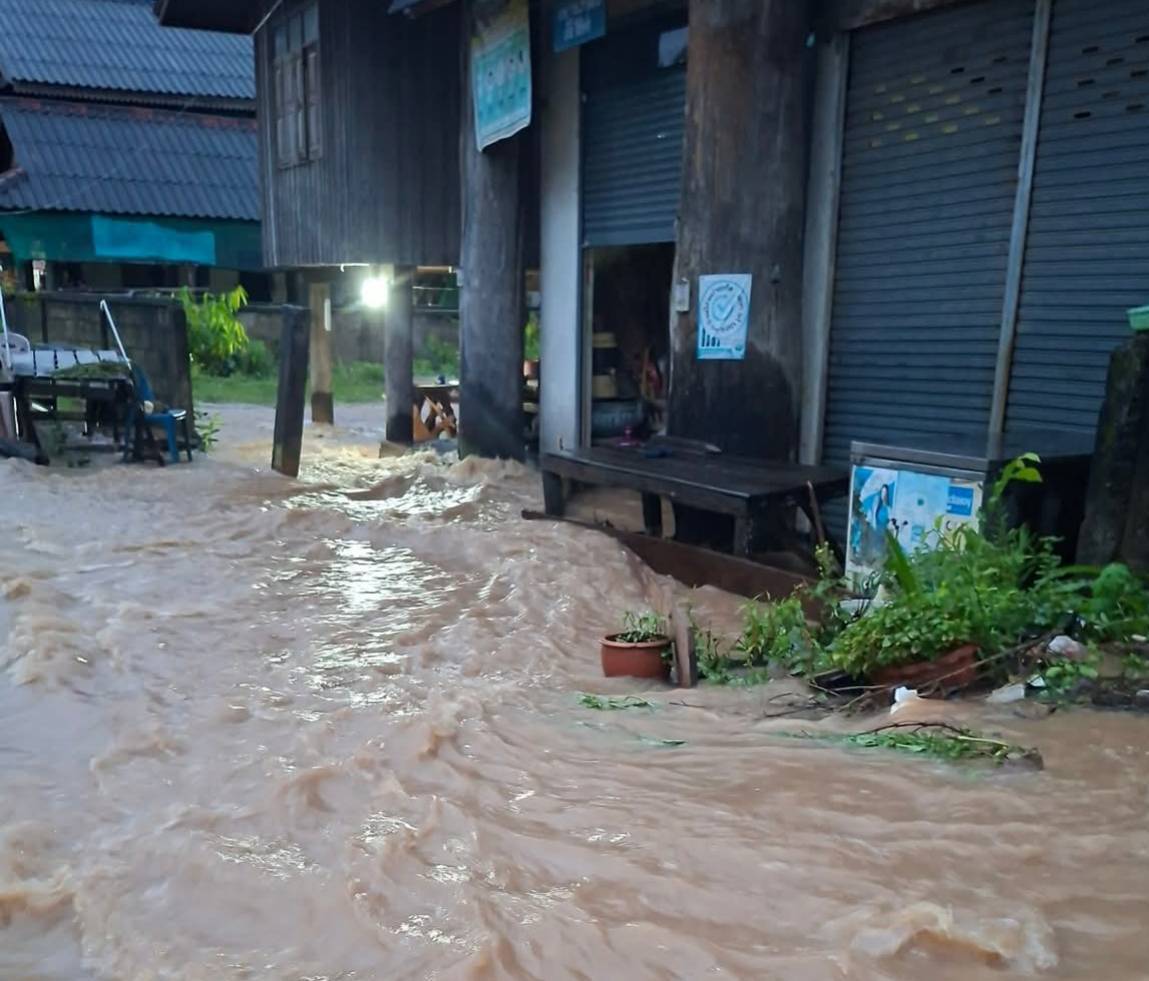 ขณะเดียวกัน พื้นที่สูงอย่างบ้านผาตั้งซึ่งปกติไม่ค่อยได้รับผลกระทบครั้งนี้กลับมีน้ำเอ่อล้นเข้าท่วมเช่นกันชาวบ้านต่างเร่งอพยพเพื่อความปลอดภัย