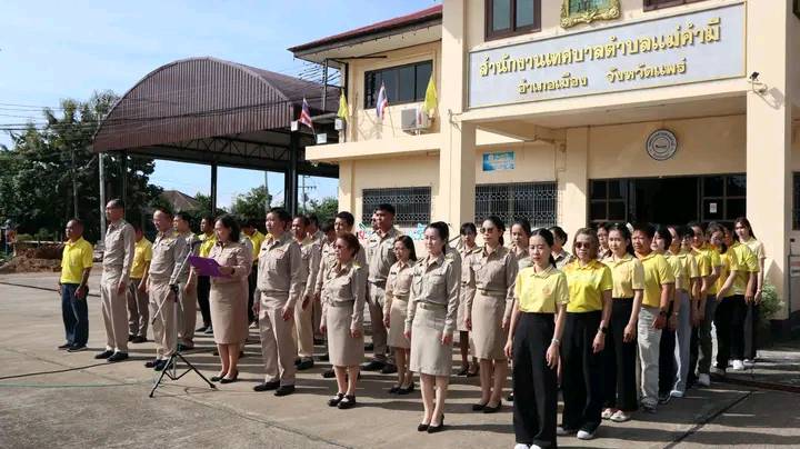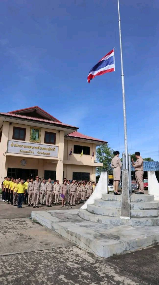 นายกทต.แม่คำมี นำจัดกิจกรรมเคารพธงชาติและร้องเพลงชาติไทย เนื่องในวันพระราชทานธงชาติไทย (Thai Nation Flag Day)