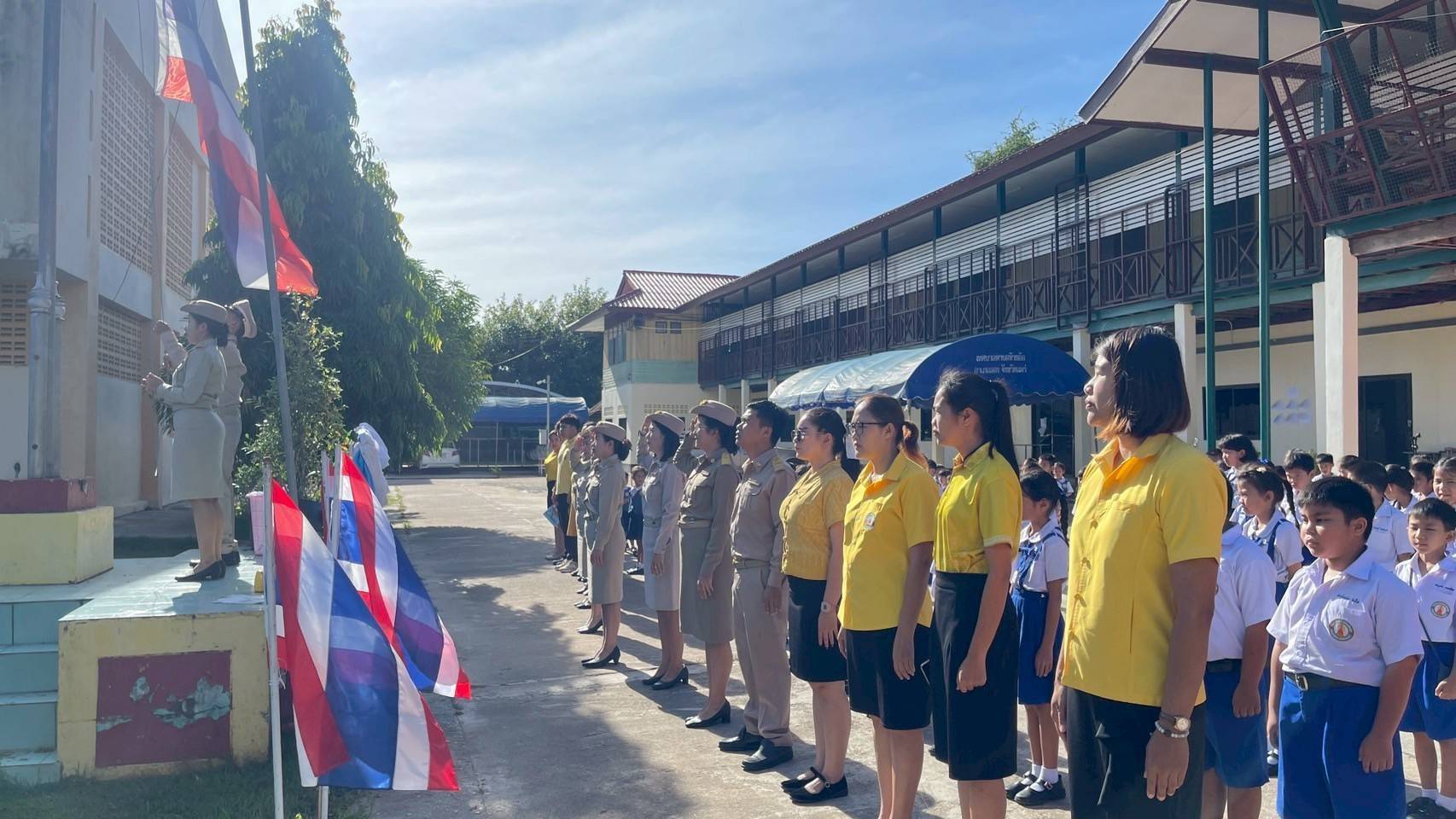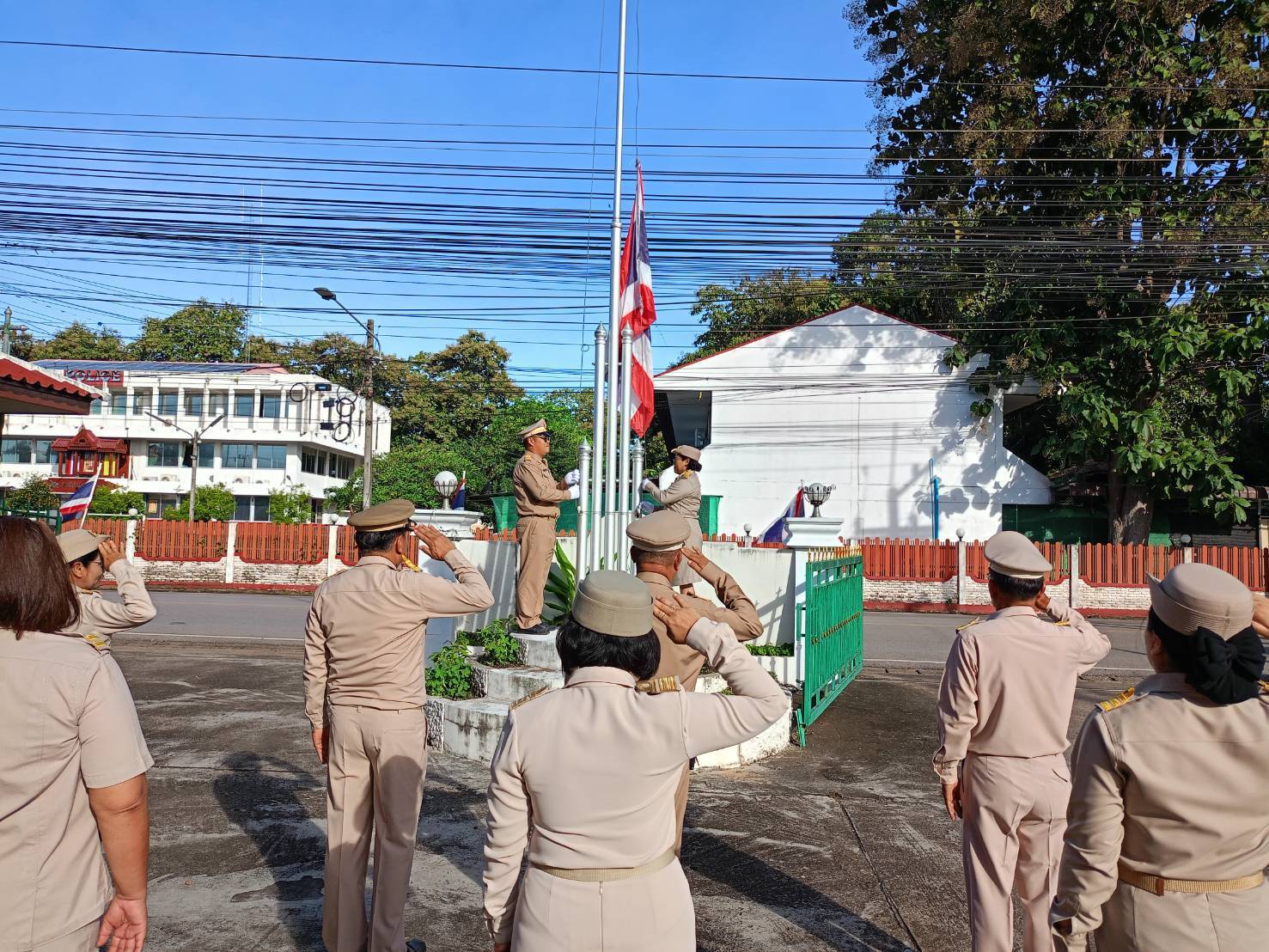 นายกทต.ห้วยอ้อ นำคณะผู้บริหาร พนักงานเและโรงเรียนเทศบาลบ้านห้วยอ้อ แสดงความจงรักภักดีต่อสถาบันชาติ ในวันธงชาติไทย