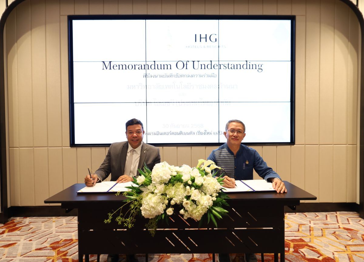 พิธีลงนามจัดขึ้น ณ โรงแรมอินเตอร์คอนติเนนตัล เชียงใหม่ เดอะ แม่ปิง โดยมี ผศ.สมเกียรติ วงษ์พานิช รองอธิการบดี มทร.ล้านนา เป็นผู้ลงนามในนามของมหาวิทยาลัย และ Mr. Saudi Khaneng หัวหน้าฝ่ายทรัพยากรบุคคล ประจำประเทศไทยและมัลดีฟส์ (HR, Country Lead – Thailand & The Maldives) เป็นผู้แทนลงนามในนามของบริษัท ไอเอชจีฯ ในโอกาสนี้ รศ.กัญฐณา ดิษฐ์แก้ว คณบดีคณะบริหารธุรกิจและศิลปศาสตร์ พร้อมด้วยคณะผู้บริหารจากทั้งสององค์กร ร่วมเป็นสักขีพยานในพิธีลงนามความร่วมมือ